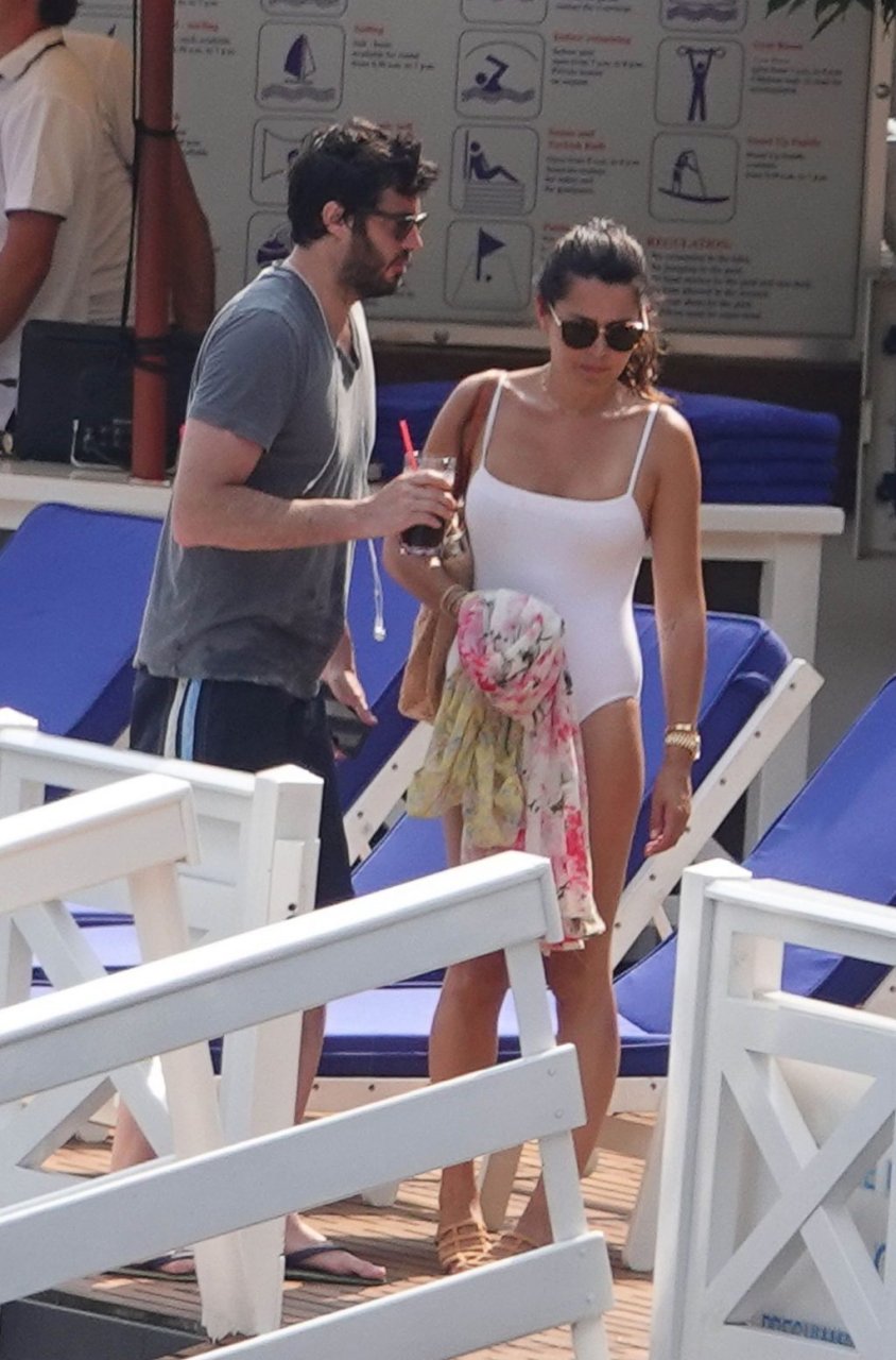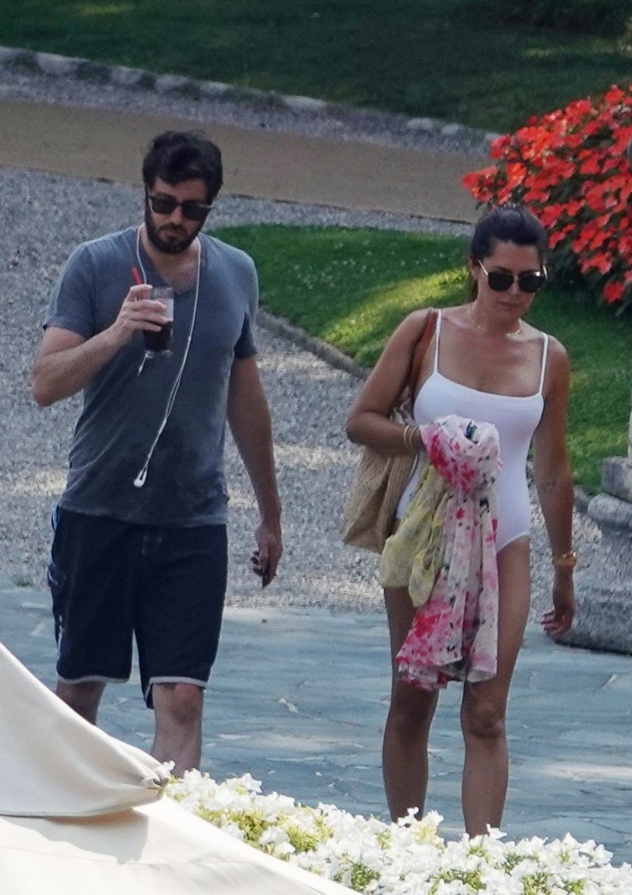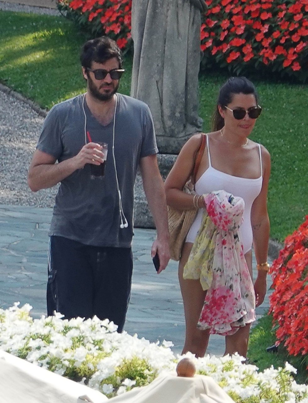 Gary Lineker’s ex Danielle Bux y su novio Nate Greenwald disfrutan de un día relajándose en el Hotel Villa D’Este en el Lago de Como, 03/08/2018. Danielle Maria Bux es una modelo y actriz galesa (Acuario). Edad: 39.