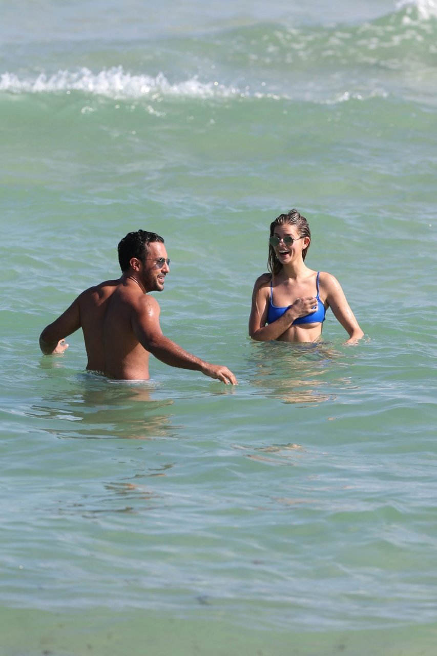 Model Danielle Knudson muestra su impresionante figura con un bikini azul en Miami Beach después de no poder desfilar en el show de Victoria’s Secret, 09/11/2018.