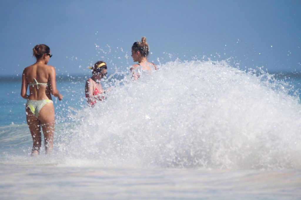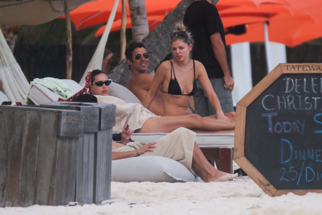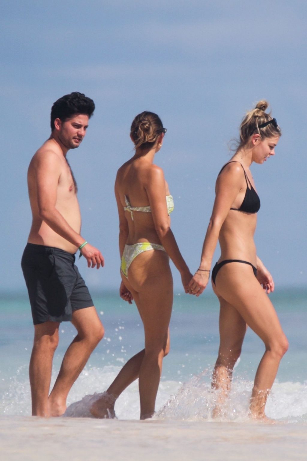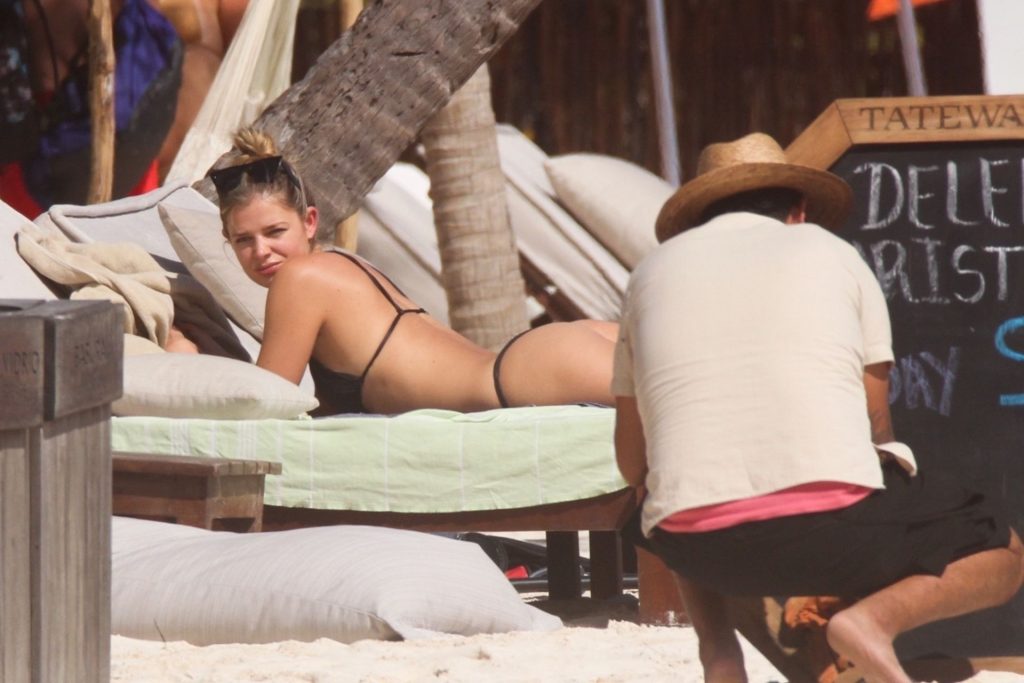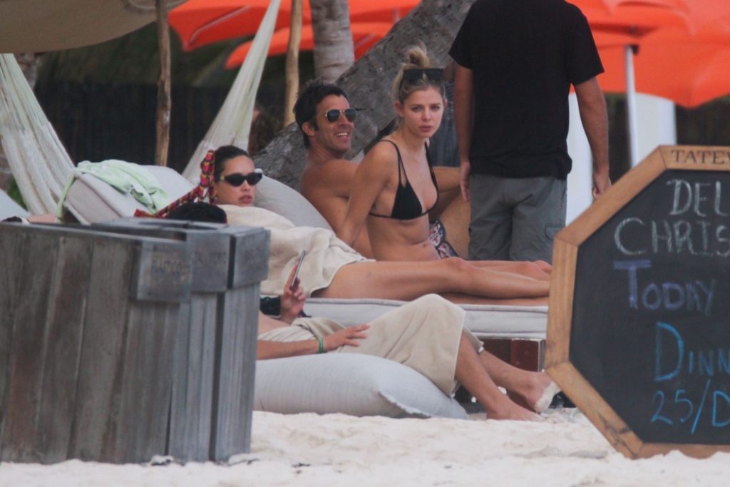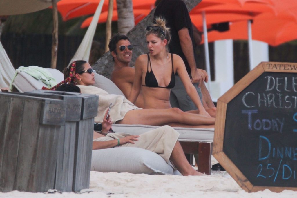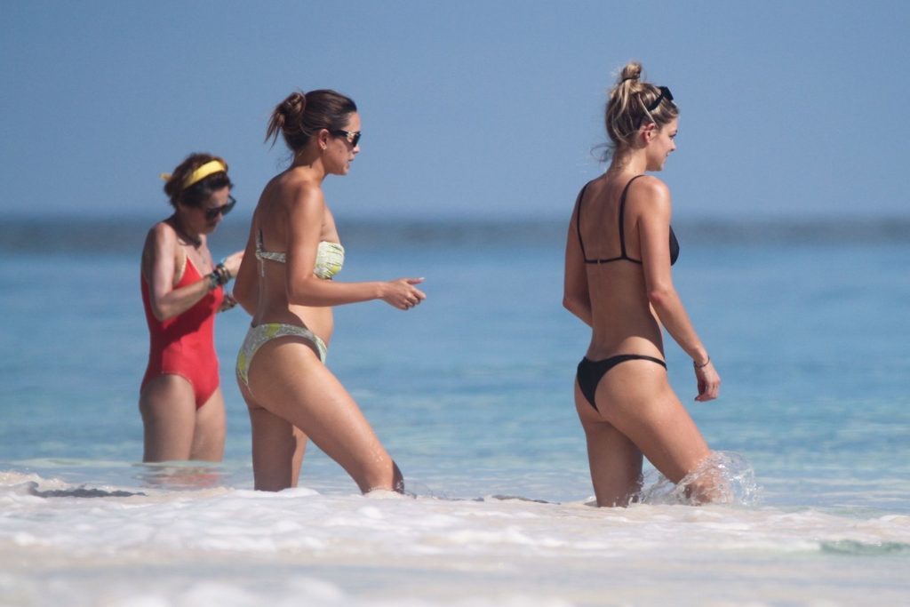 Danielle Knudson deslumbra con un bikini tanga negro para celebrar una Navidad tropical en Tulum, 25/12/2019. La modelo canadiense y novia del tenista canadiense Milos Raonic se lanzó a las olas con amigos para refrescarse bajo el sol caliente.