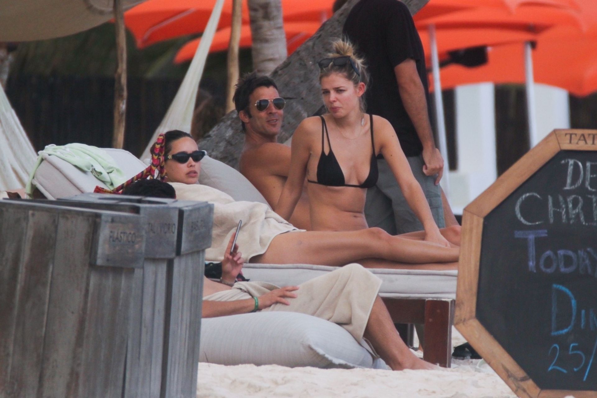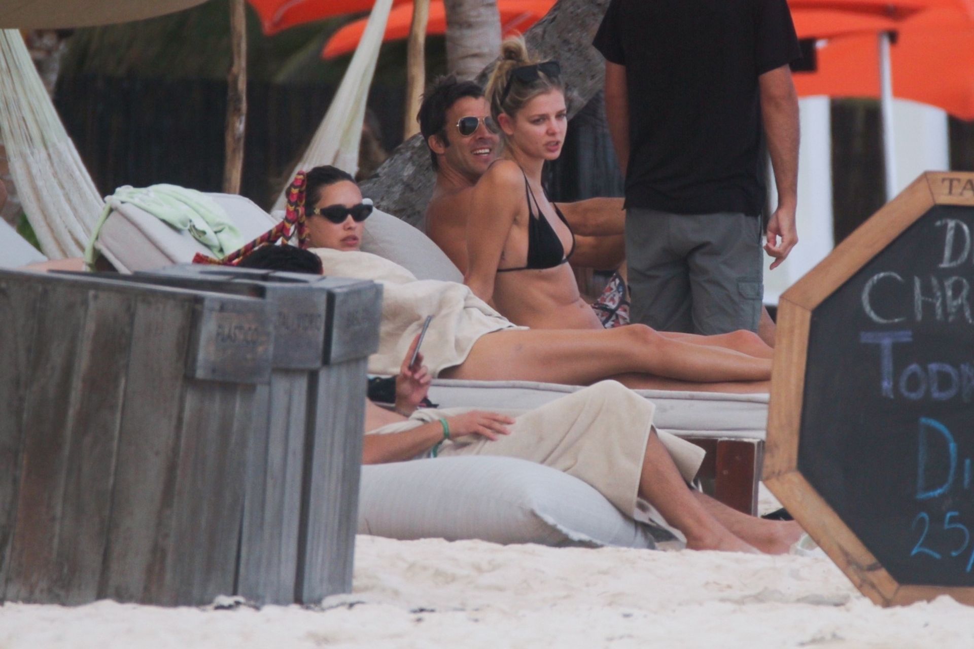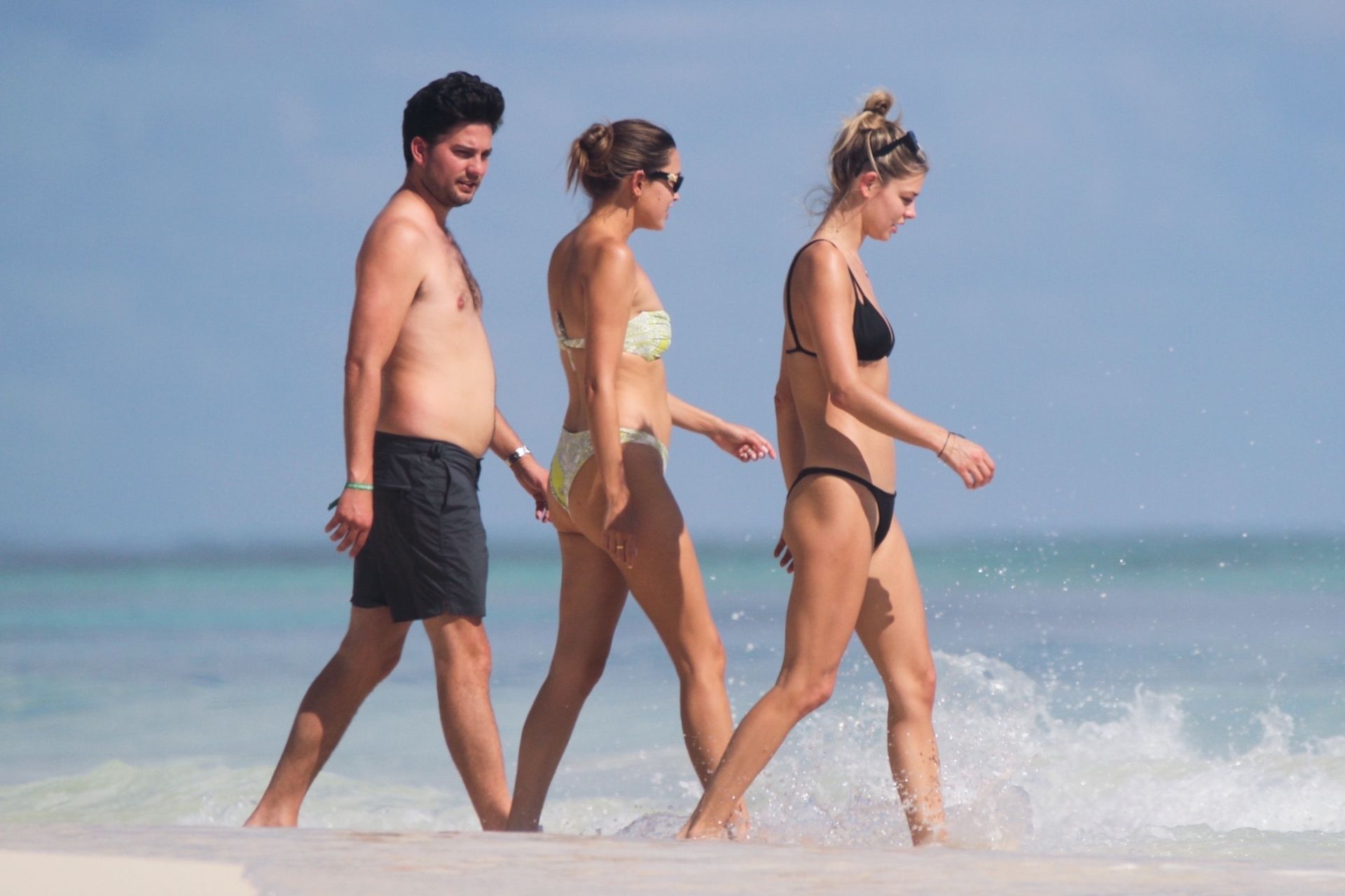 Danielle Knudson deslumbra con un bikini tanga negro para celebrar una Navidad tropical en Tulum, 25/12/2019. La modelo canadiense y novia del tenista canadiense Milos Raonic se lanzó a las olas con amigos para refrescarse bajo el sol caliente.