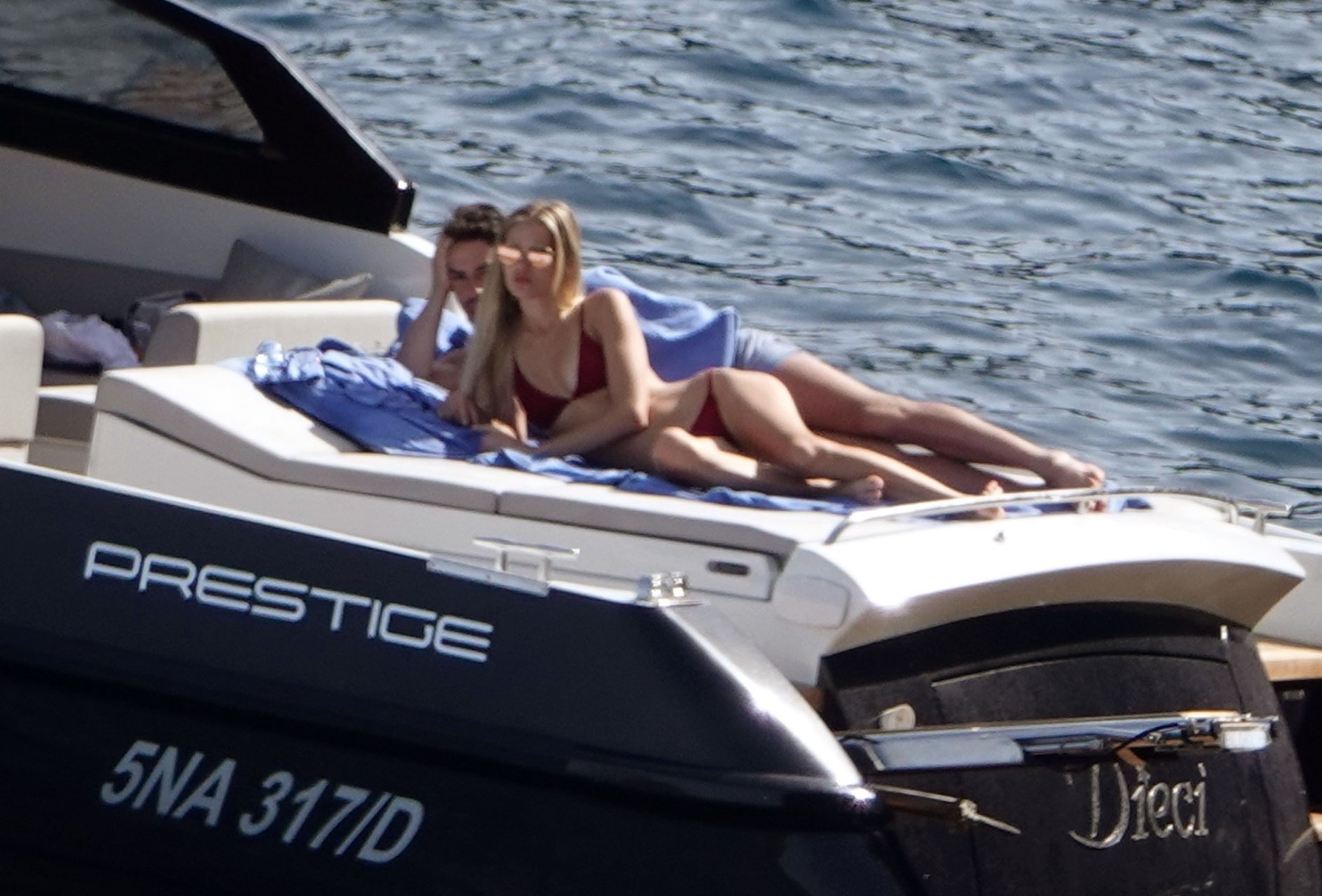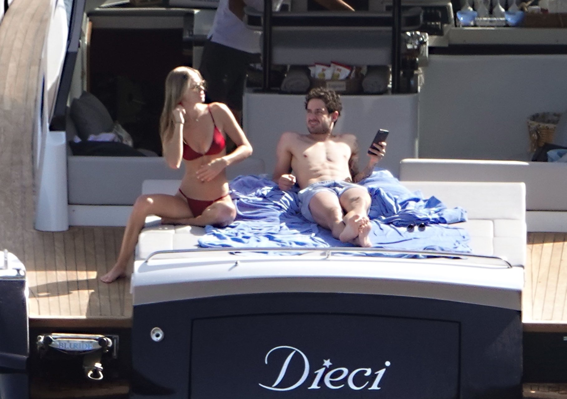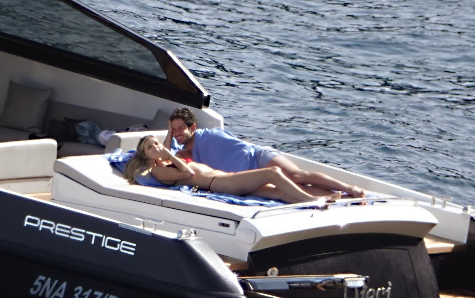 El exfutbolista del AC Milan y de la selección brasileña Alexandre Pato, que actualmente juega para el equipo de la Superliga china Tianjin Quanjian, fue visto con su nueva novia y modelo Danielle Knudson, 06/11/2018. La pareja enamorada disfrutó de un romántico paseo en barco durante sus vacaciones en la Costa Amalfitana de Italia.