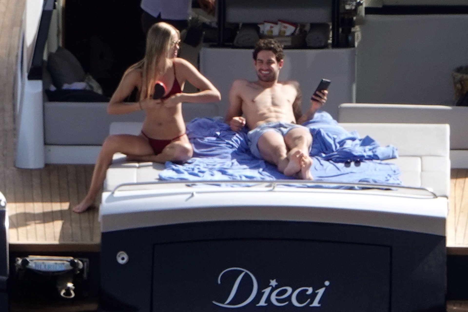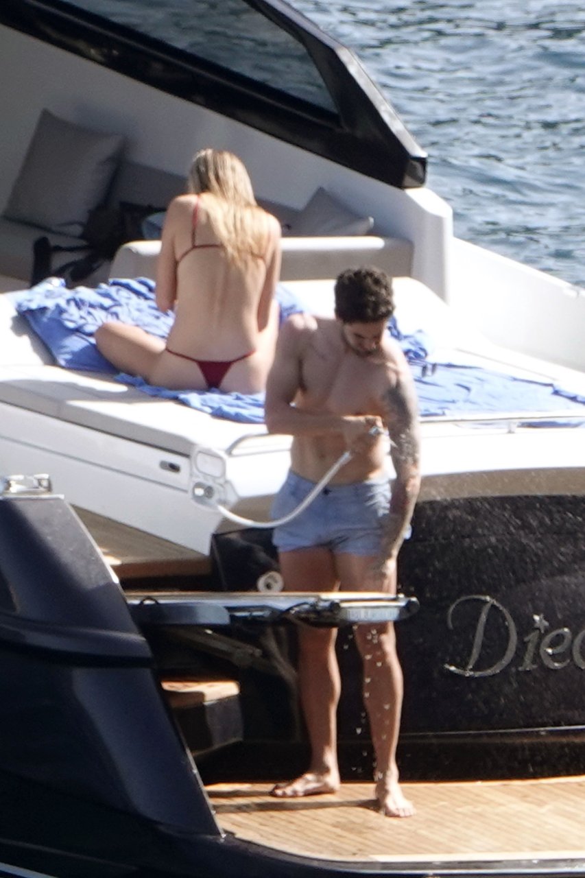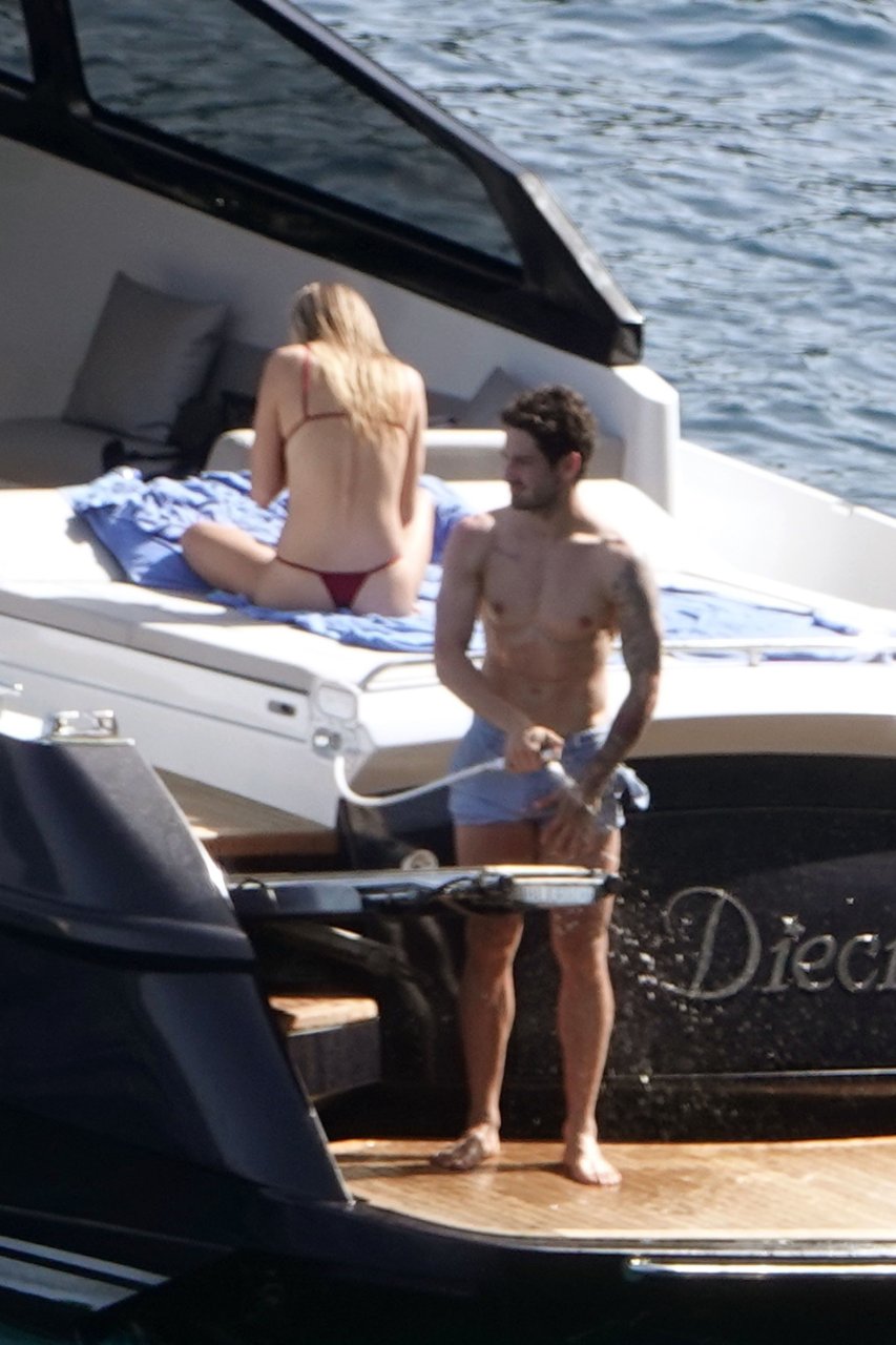 El exfutbolista del AC Milan y de la selección brasileña Alexandre Pato, que actualmente juega para el equipo de la Superliga china Tianjin Quanjian, fue visto con su nueva novia y modelo Danielle Knudson, 06/11/2018. La pareja enamorada disfrutó de un romántico paseo en barco durante sus vacaciones en la Costa Amalfitana de Italia.