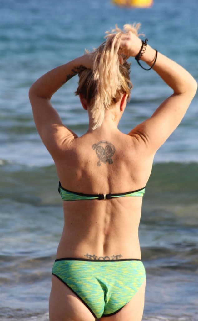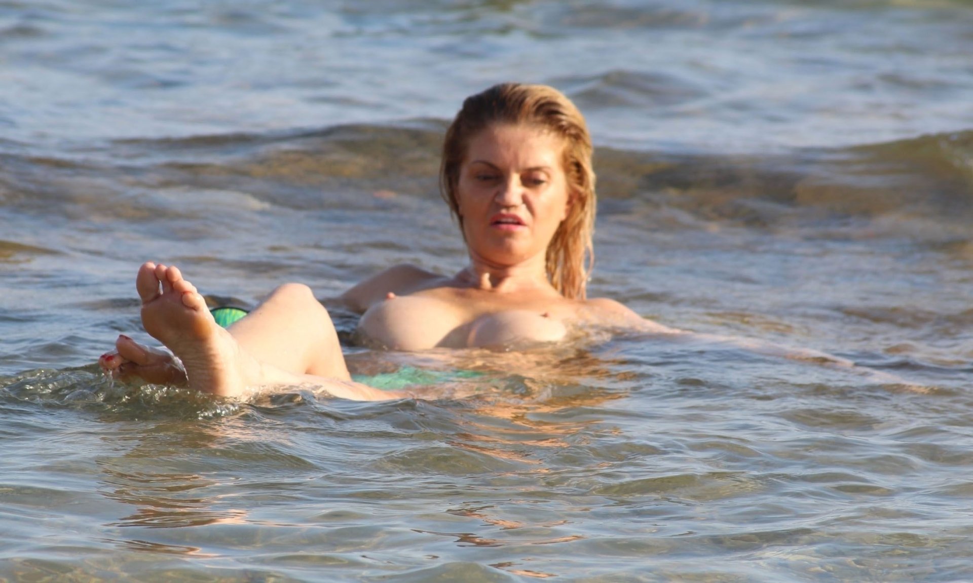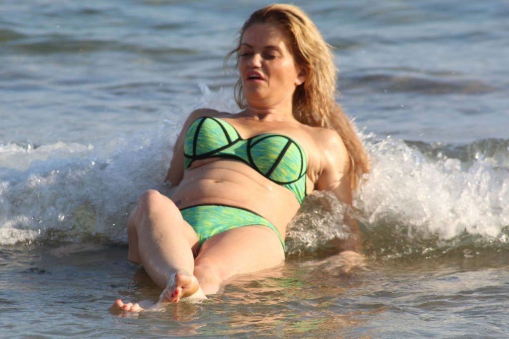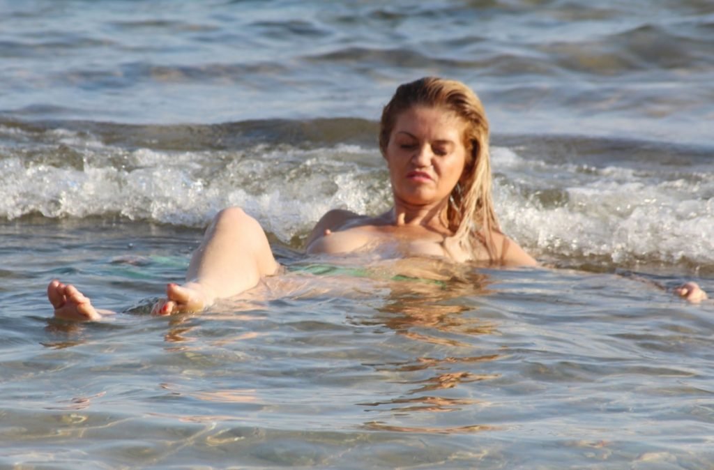 Danniella Westbrook parece estar pasando un gran momento mientras chapotea desnuda en el mar en España, 28/07/2017. Danniella Westbrook es una actriz británica (EastEnders (TV) – como Sam Mitchell) y presentadora de televisión. Edad: 43