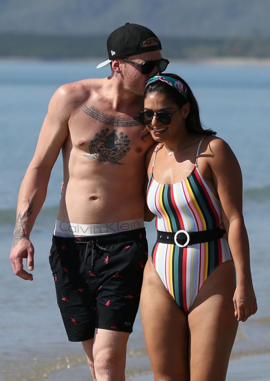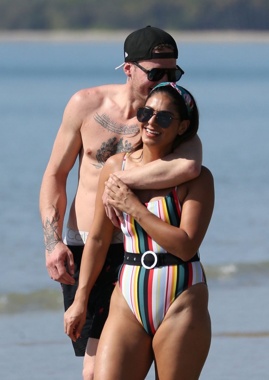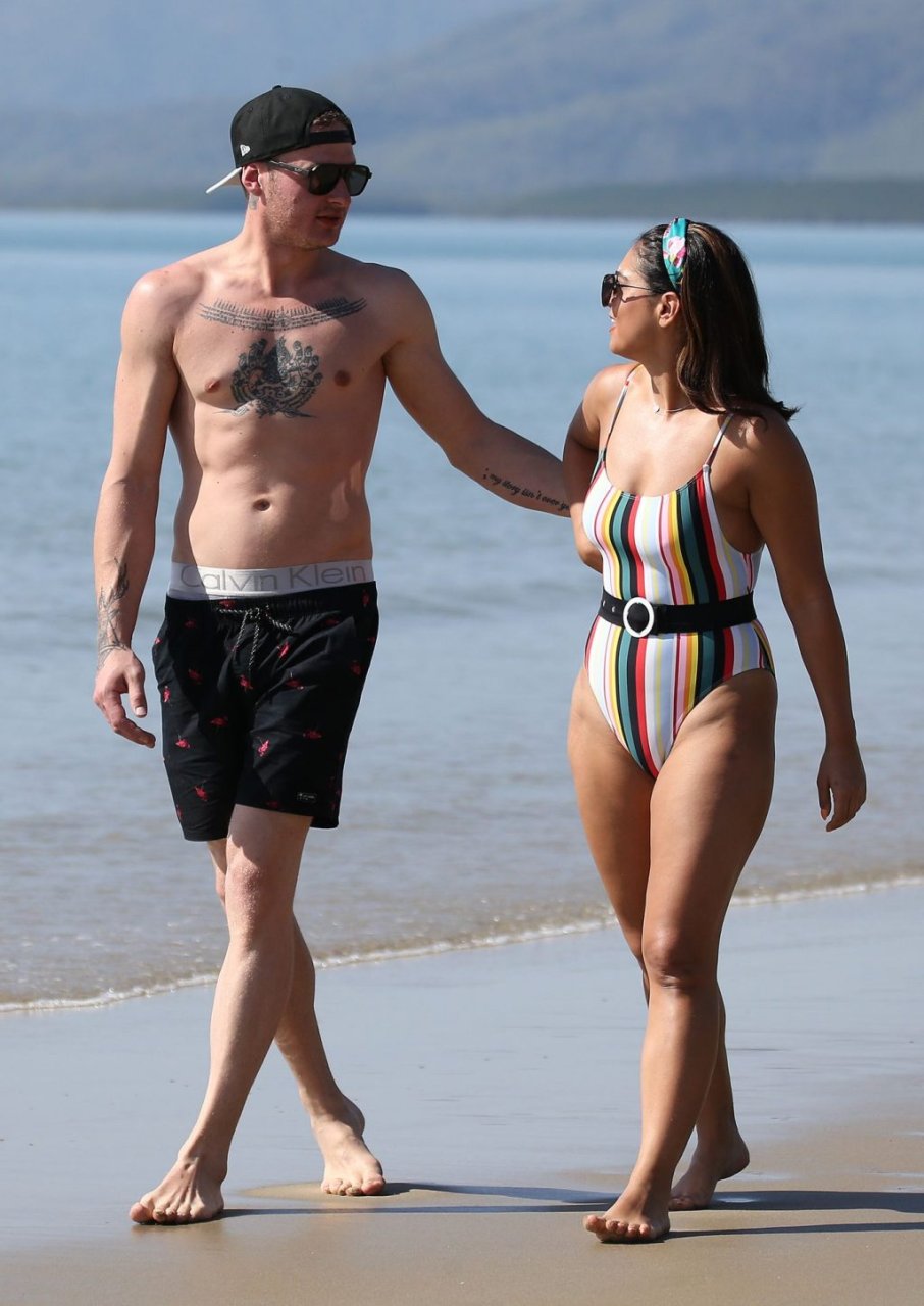 La concursante de la serie de televisión The Bachelor 7, la Princesa Persa Danush Deravi, muestra su cuerpo de playa mientras pasa las vacaciones con su novio Hamish Relf, un fontanero comercial que conoció en una fiesta de Navidad en diciembre antes de que comenzara el programa The Bachelor. Los dos reavivaron su romance cuando ella fue rechazada por el soltero Matt Agnew después del primer episodio. Mientras estaban en el tropical norte lejano de Queensland, la pareja disfrutó de un tour por la Gran Barrera de Coral y una excursión al Bosque Lluvioso Daintree en Queensland, Australia, 09/08/2019.