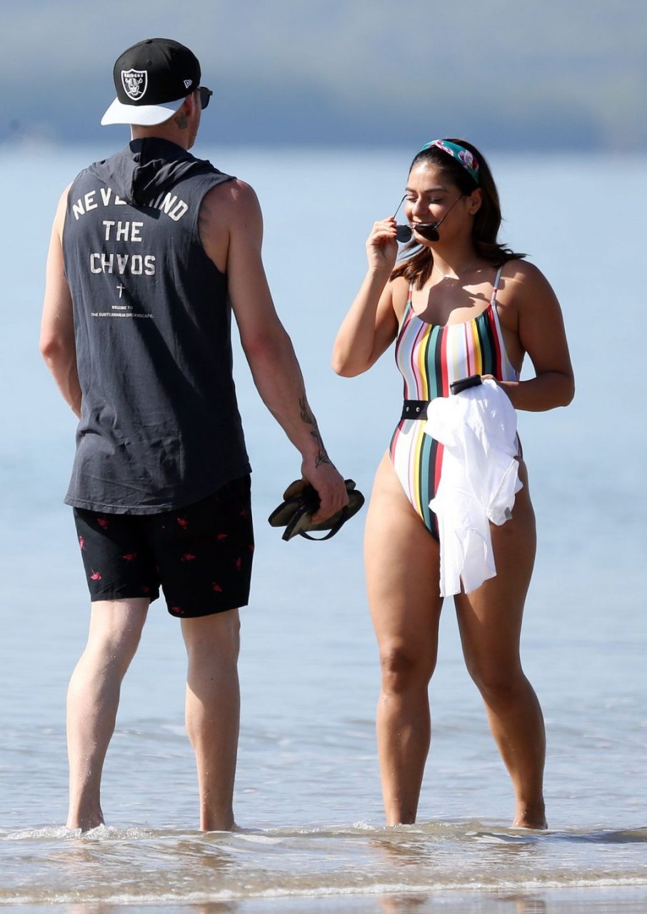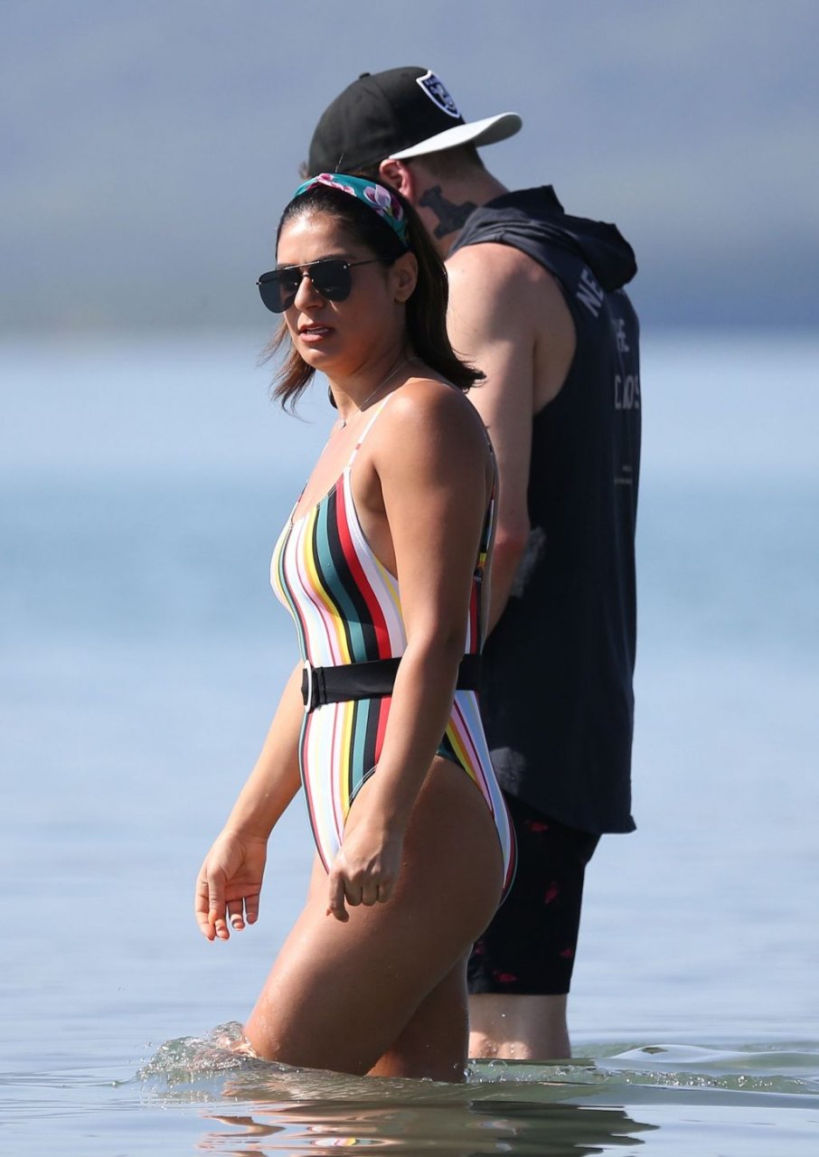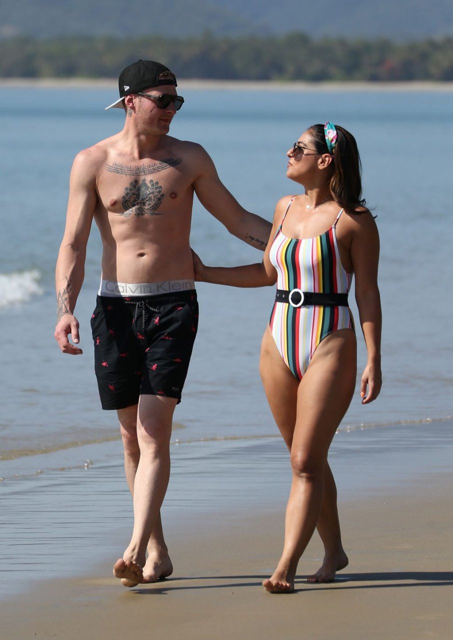 La concursante de la serie de televisión The Bachelor 7, la Princesa Persa Danush Deravi, muestra su cuerpo de playa mientras pasa las vacaciones con su novio Hamish Relf, un fontanero comercial que conoció en una fiesta de Navidad en diciembre antes de que comenzara el programa The Bachelor. Los dos reavivaron su romance cuando ella fue rechazada por el soltero Matt Agnew después del primer episodio. Mientras estaban en el tropical norte lejano de Queensland, la pareja disfrutó de un tour por la Gran Barrera de Coral y una excursión al Bosque Lluvioso Daintree en Queensland, Australia, 09/08/2019.