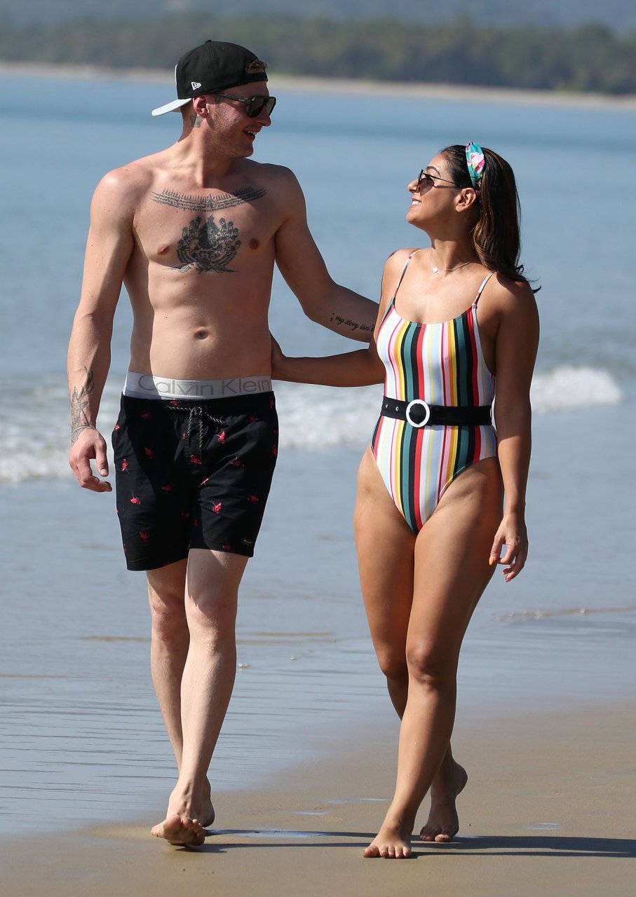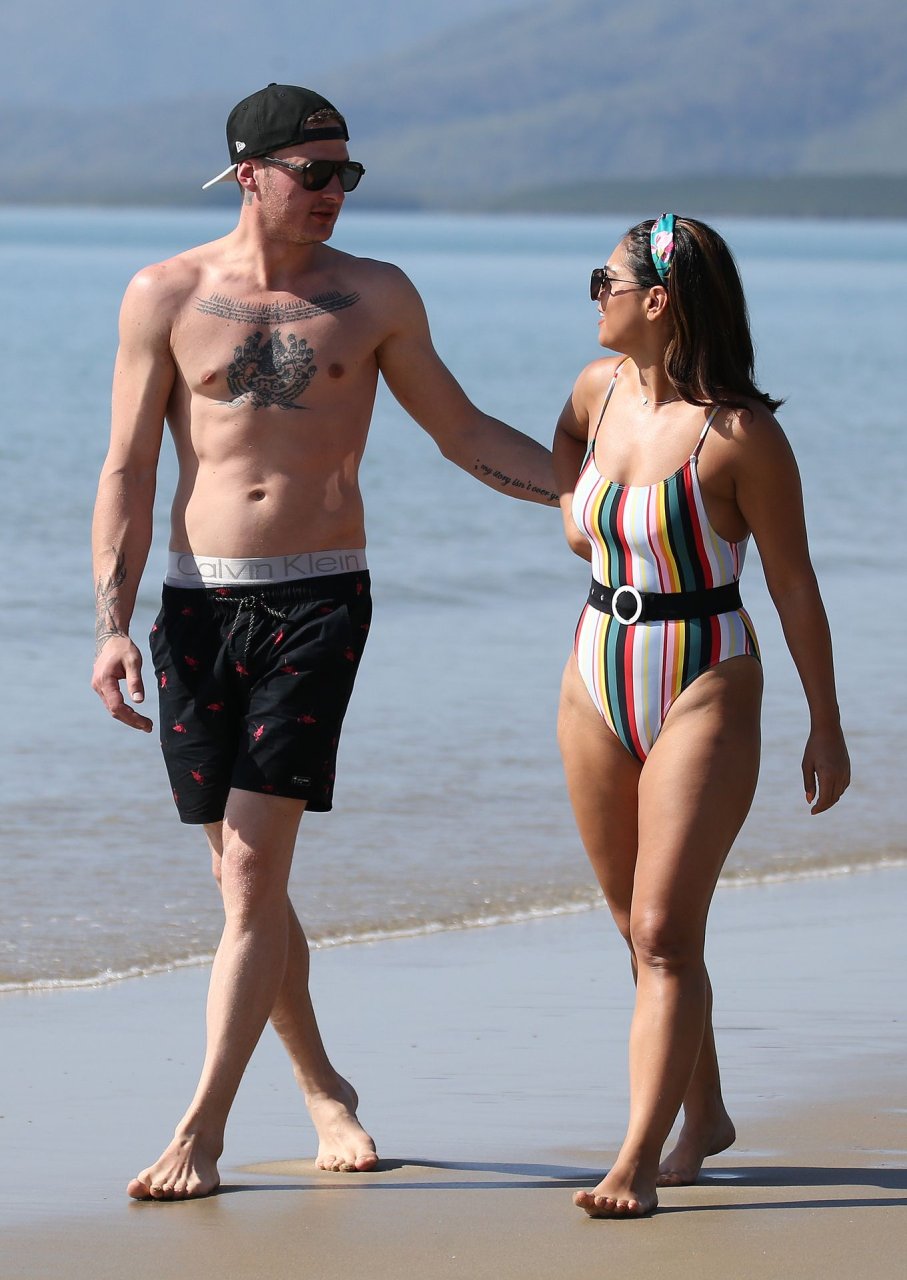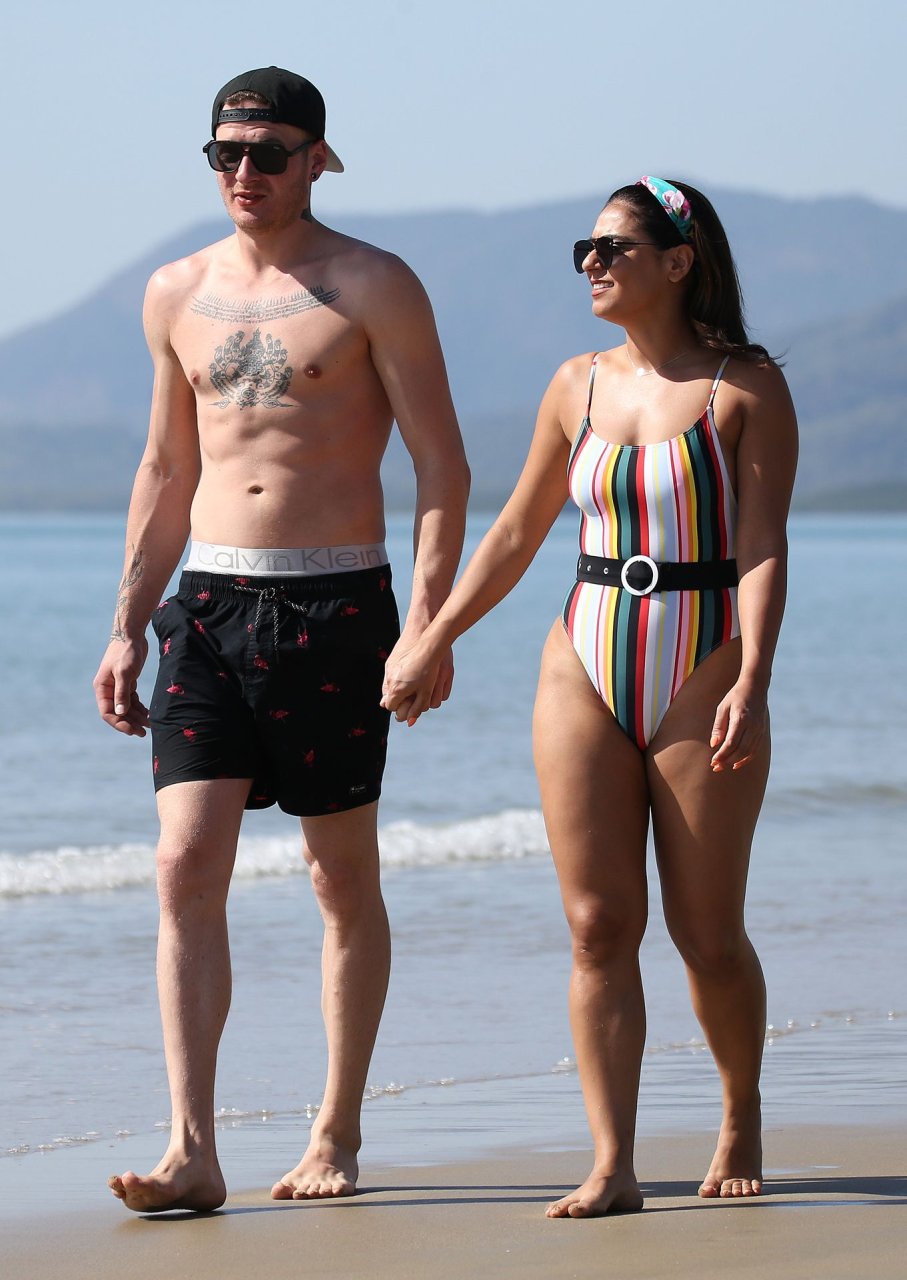 La concursante de la serie de televisión The Bachelor 7, la Princesa Persa Danush Deravi, muestra su cuerpo de playa mientras pasa las vacaciones con su novio Hamish Relf, un fontanero comercial que conoció en una fiesta de Navidad en diciembre antes de que comenzara el programa The Bachelor. Los dos reavivaron su romance cuando ella fue rechazada por el soltero Matt Agnew después del primer episodio. Mientras estaban en el tropical norte lejano de Queensland, la pareja disfrutó de un tour por la Gran Barrera de Coral y una excursión al Bosque Lluvioso Daintree en Queensland, Australia, 09/08/2019.