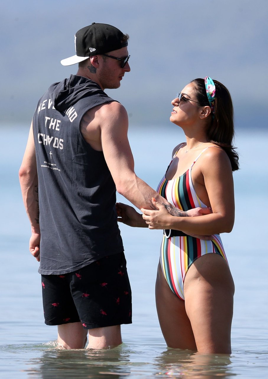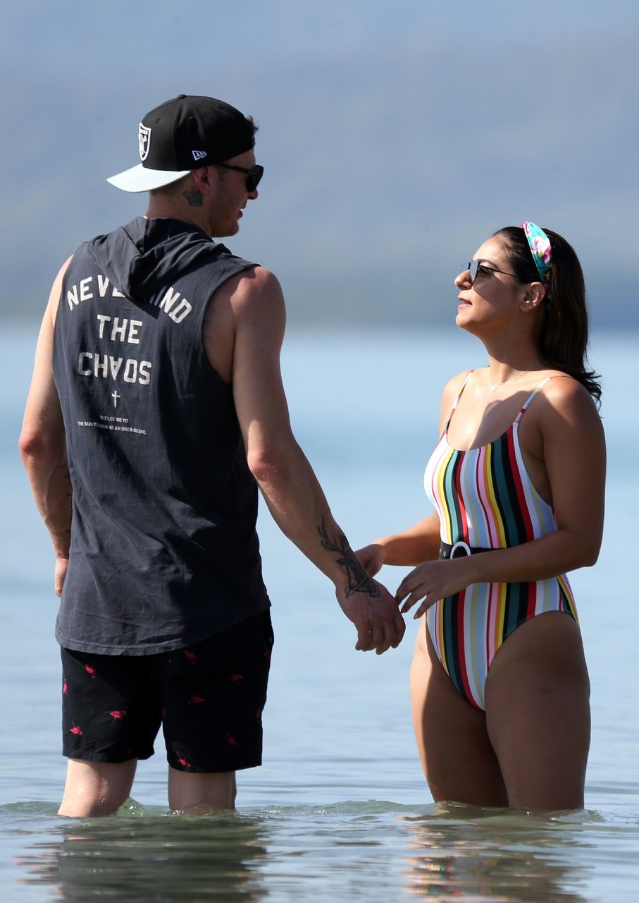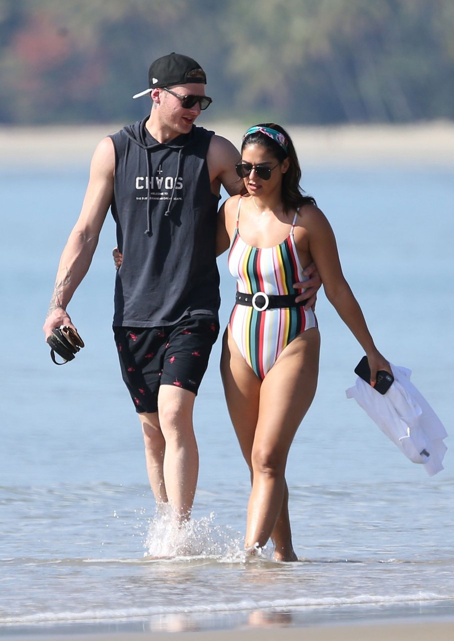 La concursante de la serie de televisión The Bachelor 7, la Princesa Persa Danush Deravi, muestra su cuerpo de playa mientras pasa las vacaciones con su novio Hamish Relf, un fontanero comercial que conoció en una fiesta de Navidad en diciembre antes de que comenzara el programa The Bachelor. Los dos reavivaron su romance cuando ella fue rechazada por el soltero Matt Agnew después del primer episodio. Mientras estaban en el tropical norte lejano de Queensland, la pareja disfrutó de un tour por la Gran Barrera de Coral y una excursión al Bosque Lluvioso Daintree en Queensland, Australia, 09/08/2019.