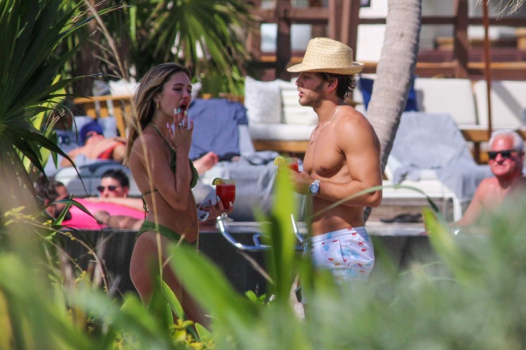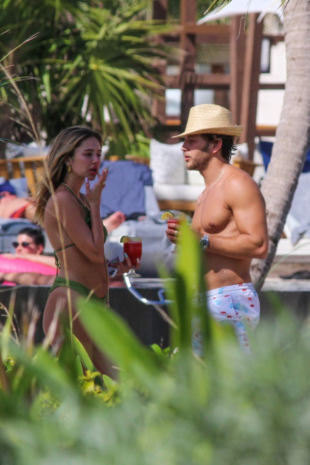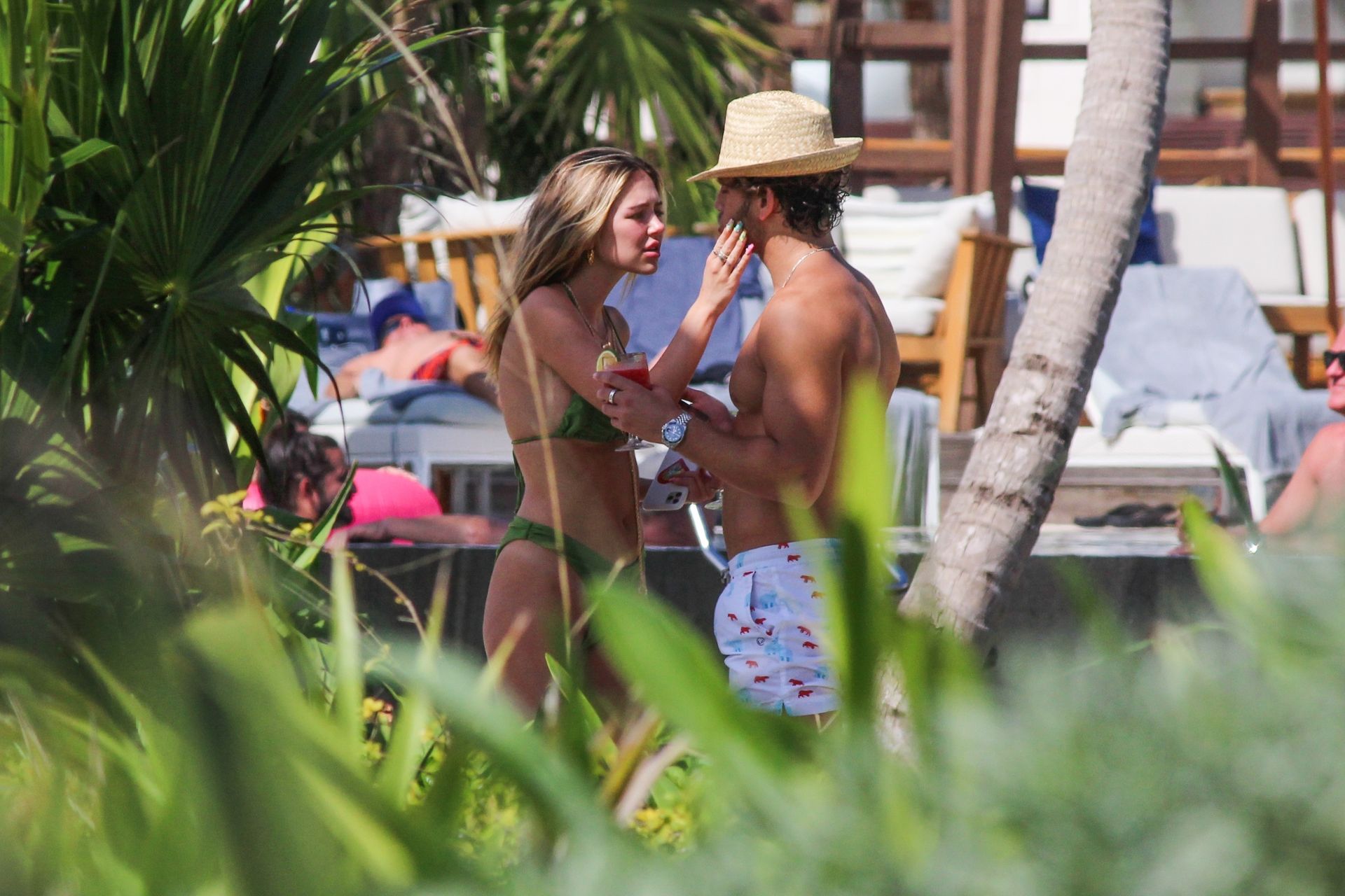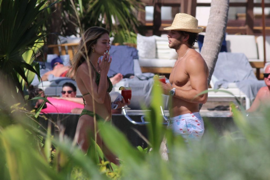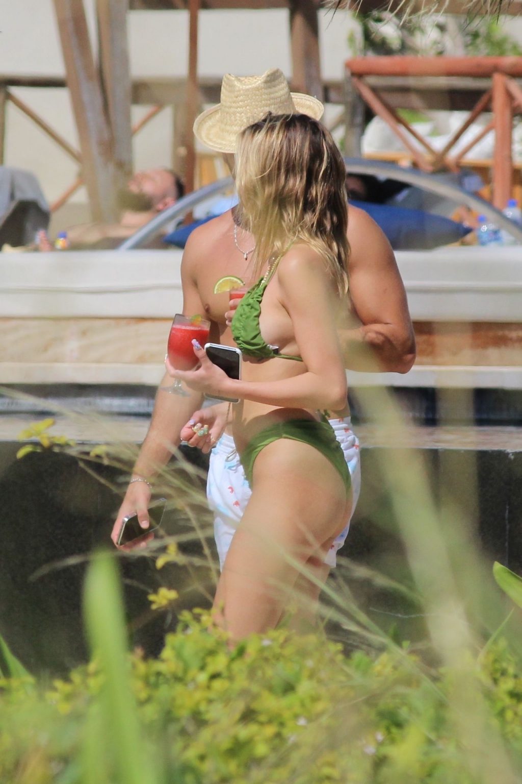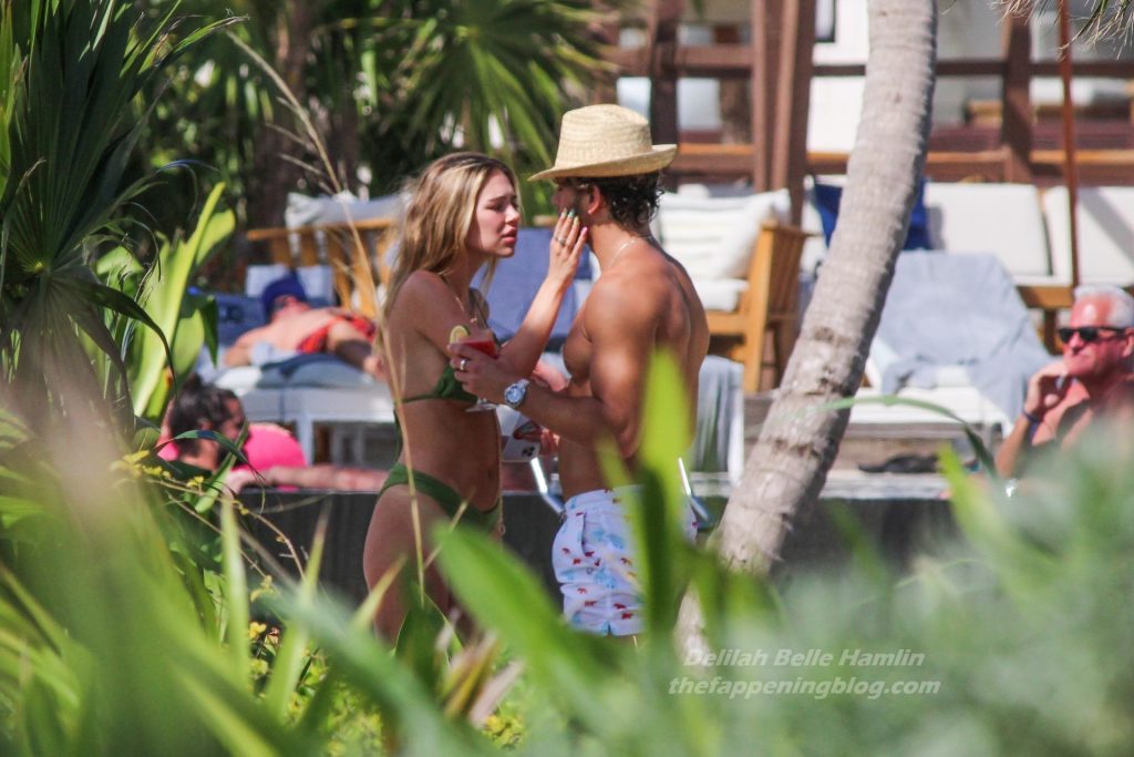 Delilah Belle Hamlin presume su figura tonificada con un bikini verde oliva con volantes de PrettyLittleThing mientras disfruta de una escapada romántica en Tulum con su novio, 24/11/2020.