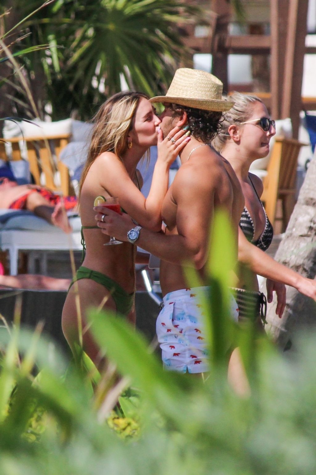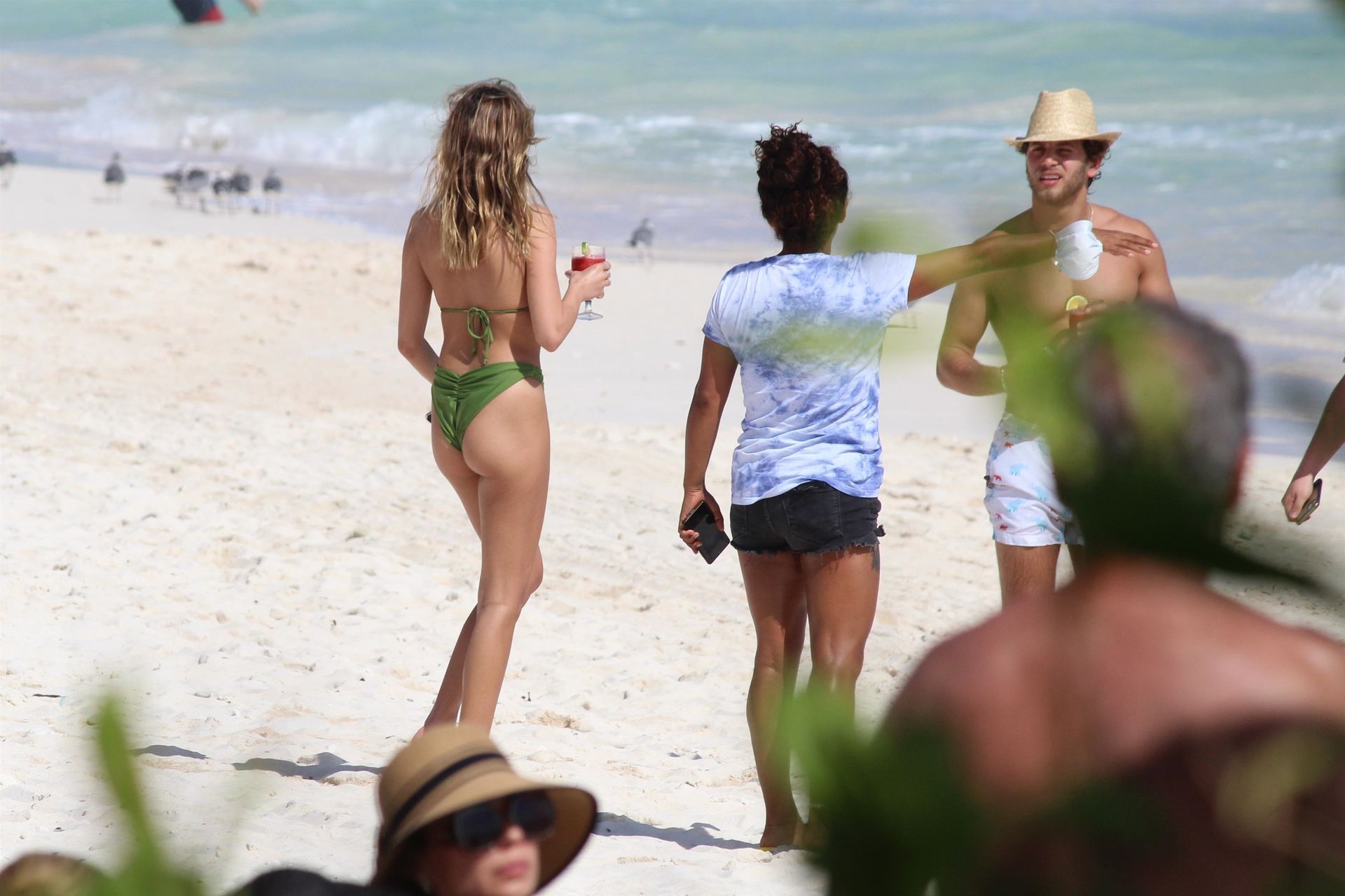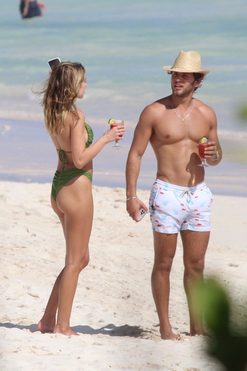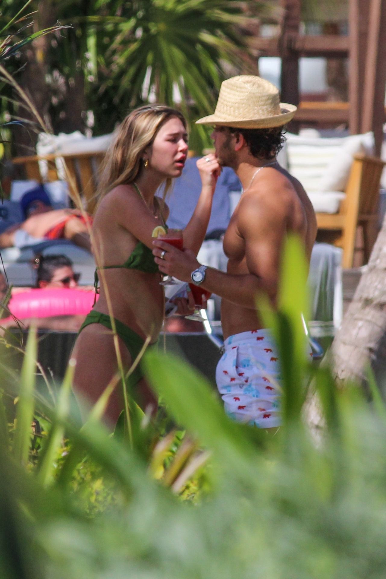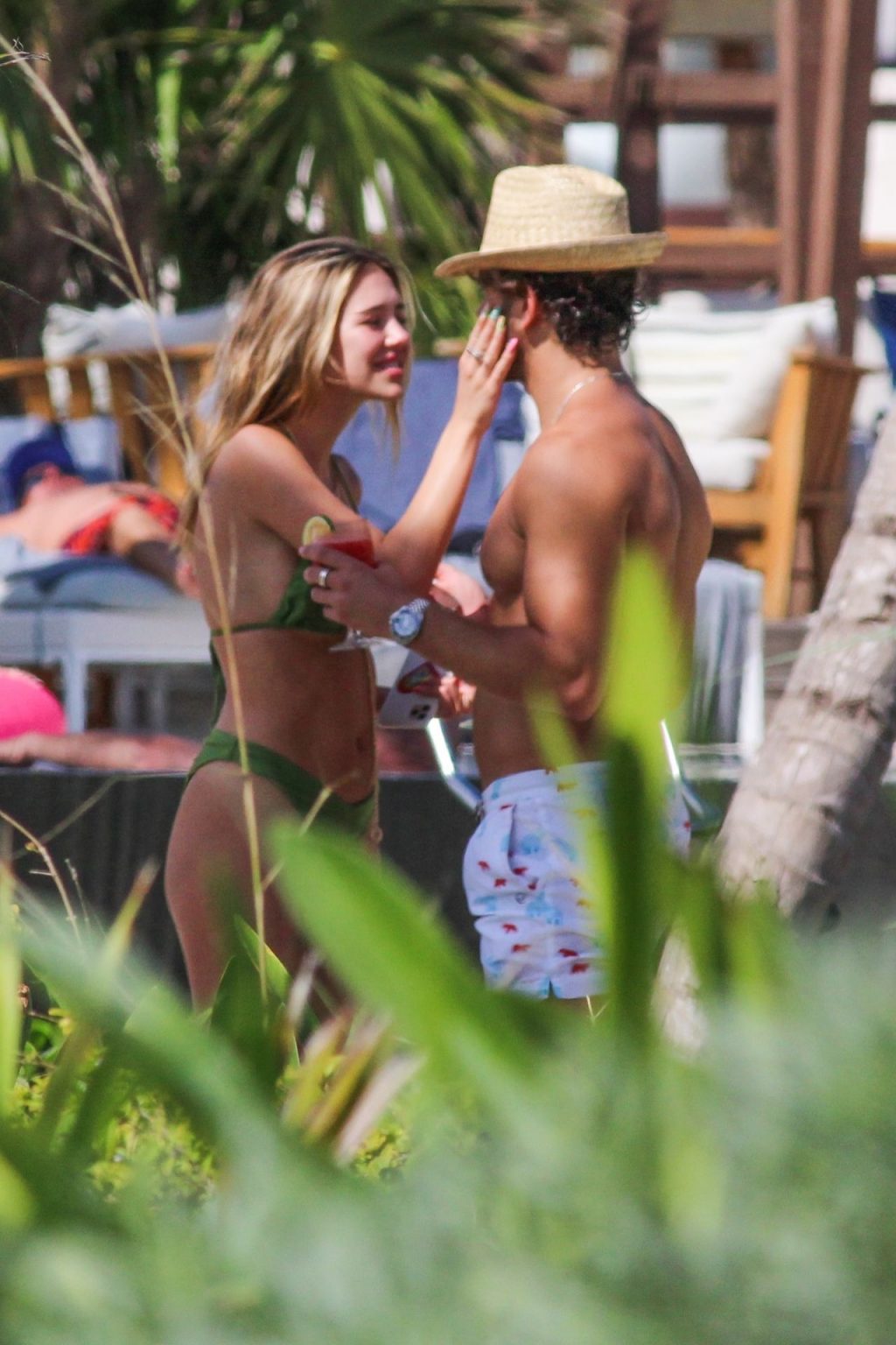 Delilah Belle Hamlin presume su figura tonificada con un bikini verde oliva con volantes de PrettyLittleThing mientras disfruta de una escapada romántica en Tulum con su novio, 24/11/2020.