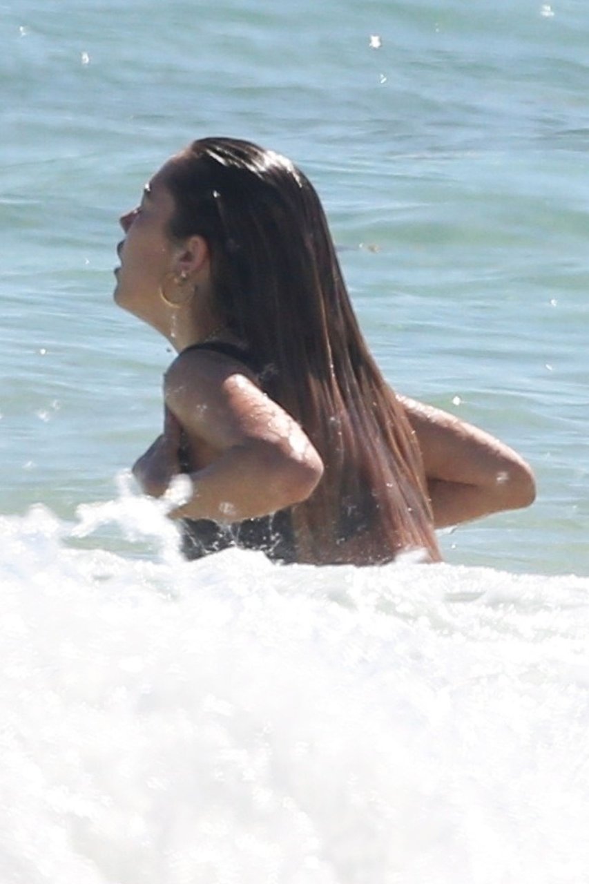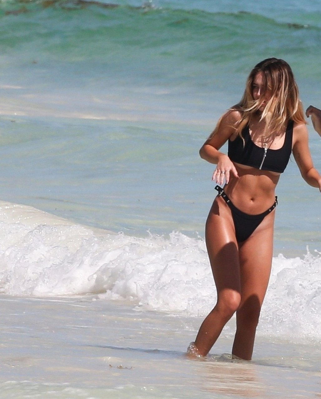 Delilah Belle Hamlin (20) disfruta otro día en la playa con su amiga, la sensación de YouTube de 17 años Suede Brooks – Tulum, México, 13/01/2019. La pareja disfrutó de un baño en las cálidas aguas, y Delilah se pone traviesa mientras muestra un poco de underboob en su bikini negro.