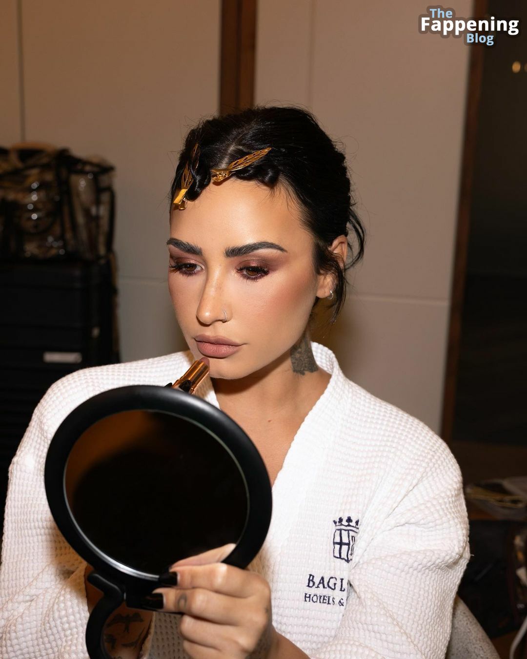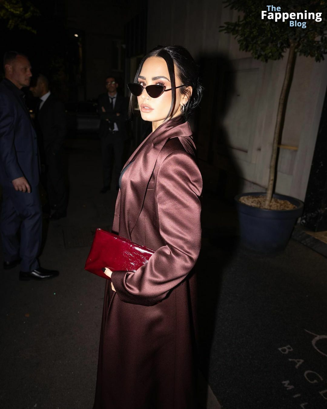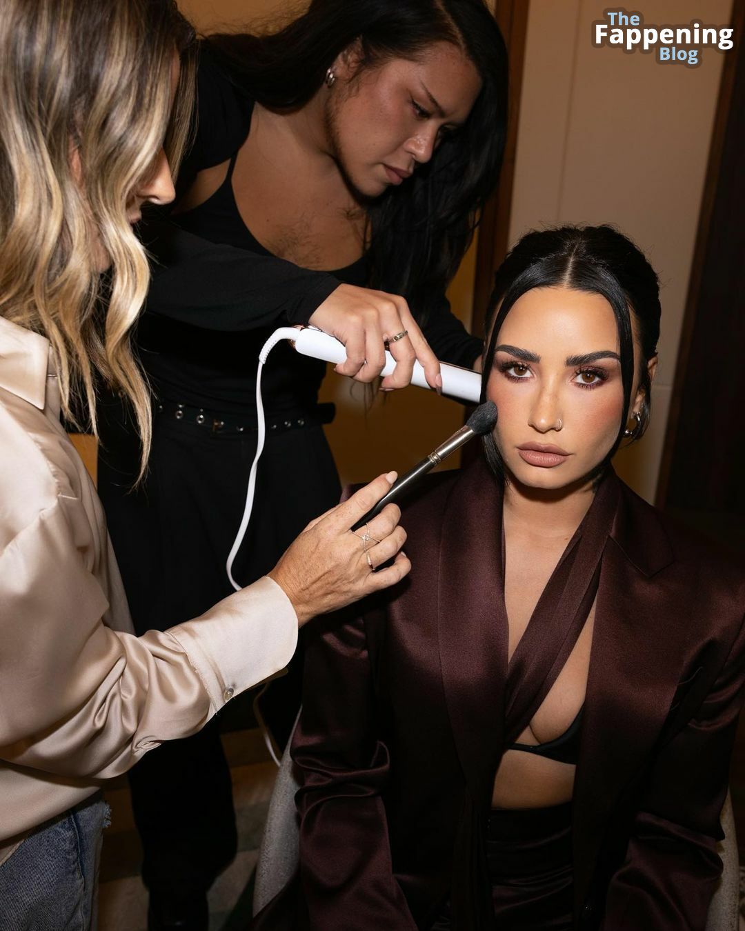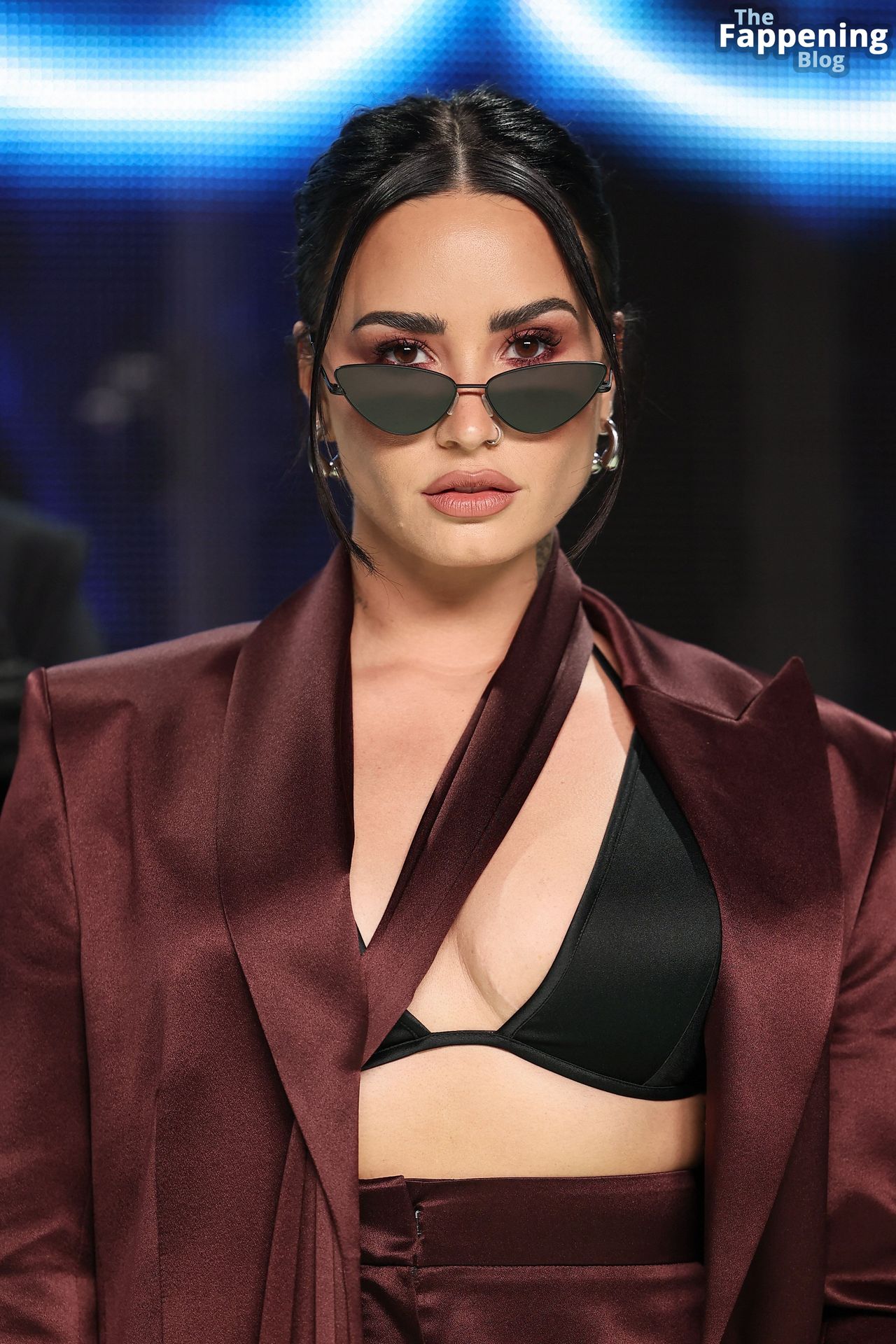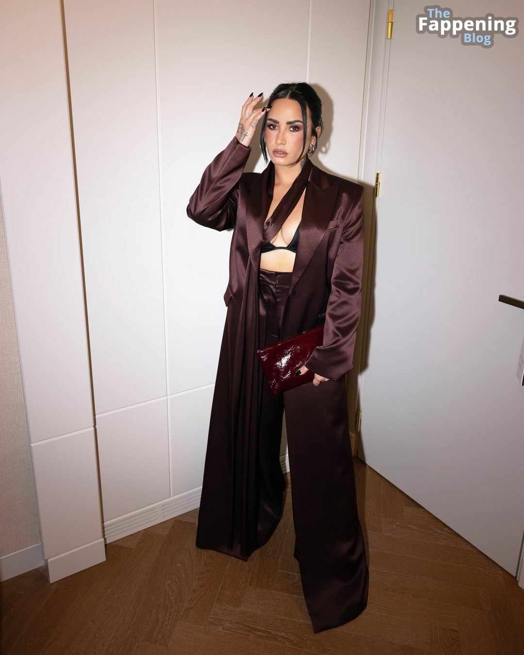 Demi Lovato luce un escote impresionante, mostrando sus naturales pechos en un sexy sostén negro y chaqueta abierta mientras sale.