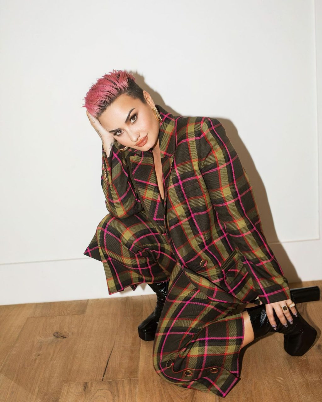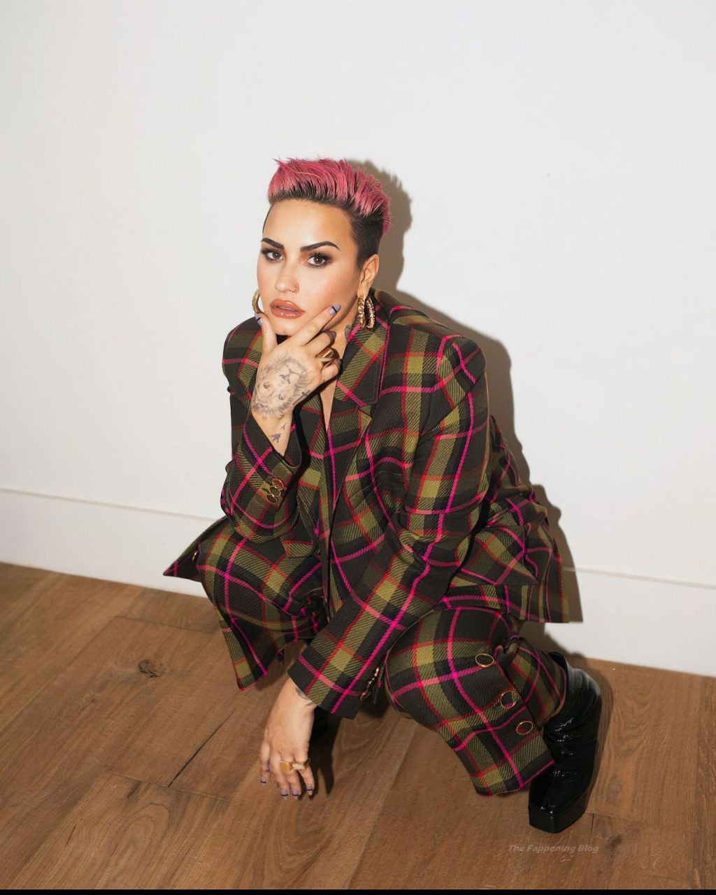 Demi Lovato posa en una nueva sesión de fotos de Angelo Kritikos (febrero de 2021). La cantante luce sexy mientras expone su pecho con un pezón perforado, vistiendo un top negro sin sostén.