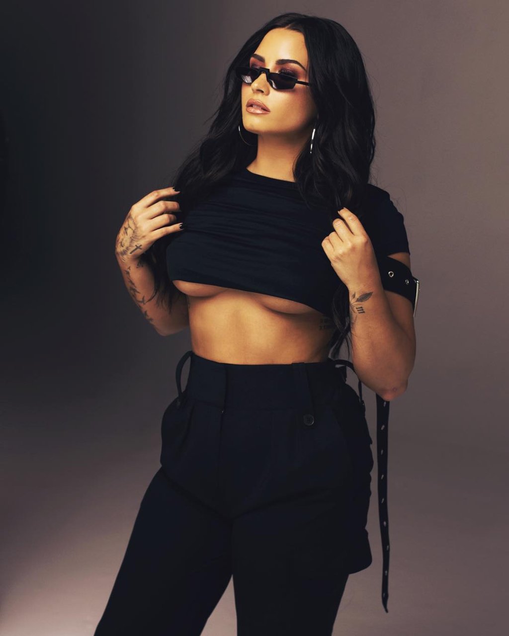 Demi Lovato compartió algunas fotos sexys de una sesión fotográfica de Angelo Kritikos – Instagram, 28/03/2018. La cantante y actriz de 25 años se levantó la camiseta y nos mostró sus pequeños pechos.