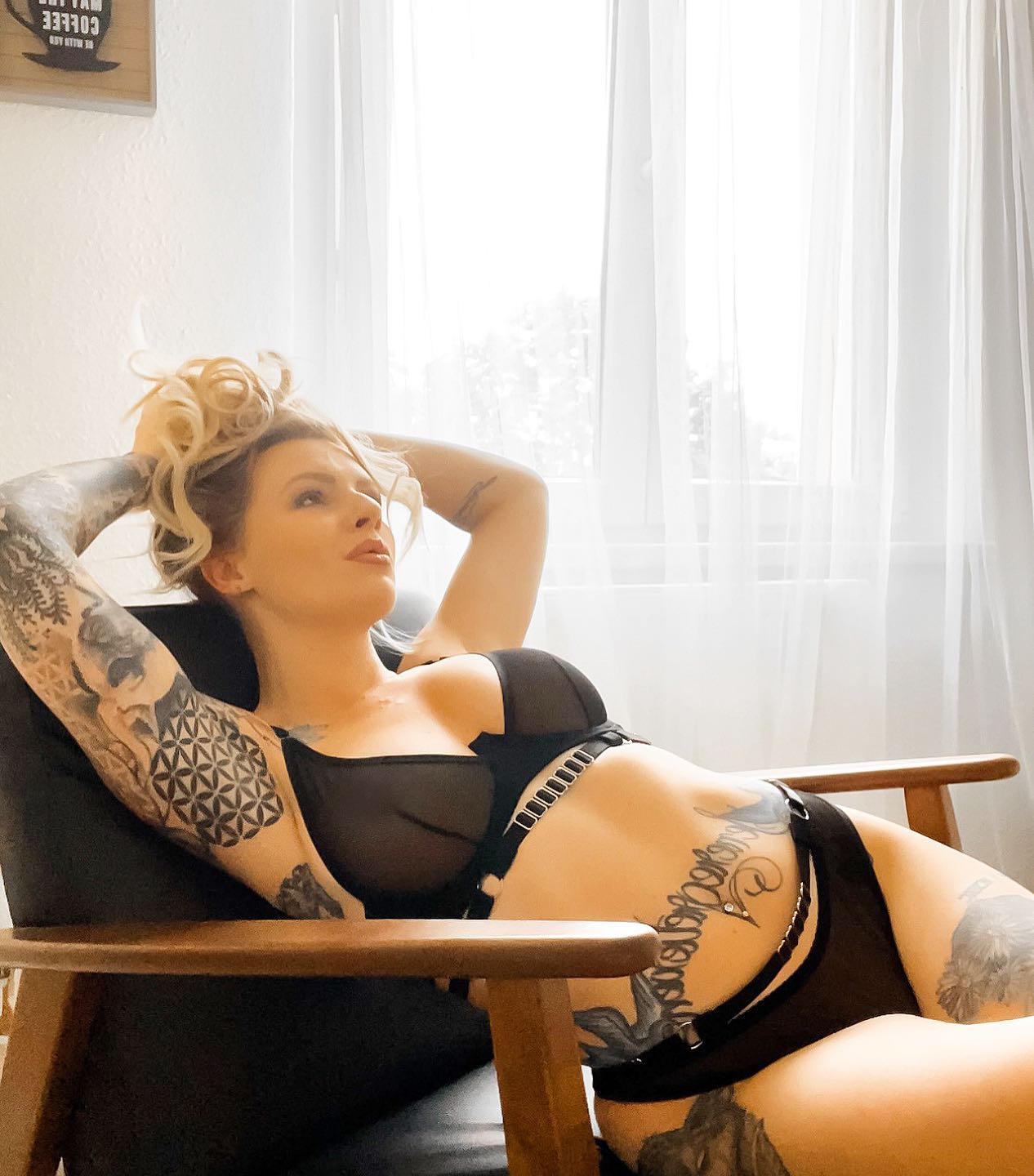 Mira las fotos ligeramente desnudas y calientes de Denise Duck en las redes sociales, mostrando su cuerpo tatuado.