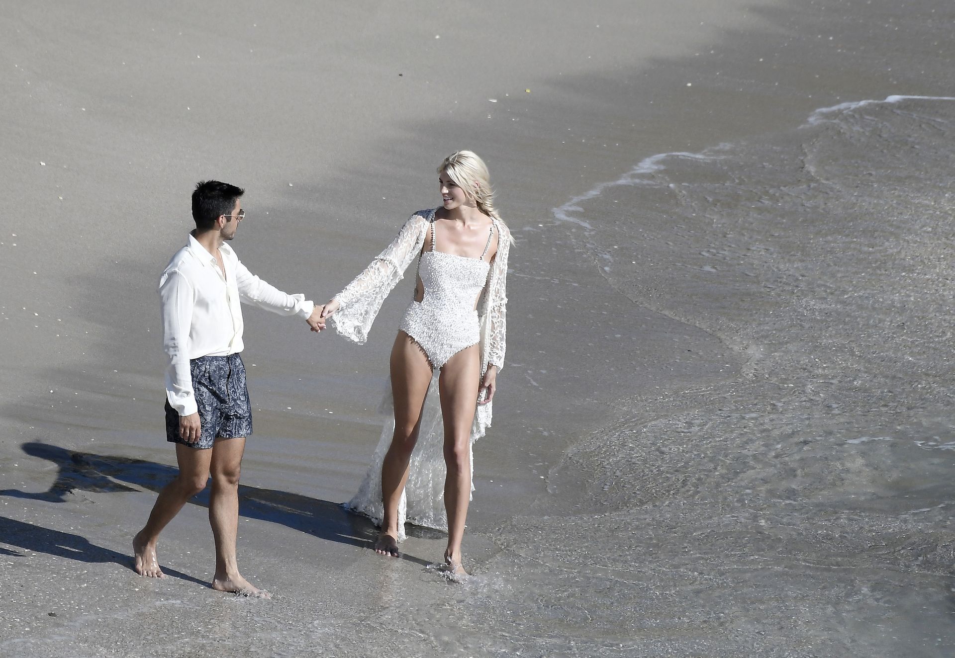 La supermodelo de Victoria’s Secret Devon Windsor y su prometido Johnny Dex Barbara se casan en la playa en St Barts, 15/11/2019. El ángel de Victoria’s Secret, de 25 años, luciendo un impresionante traje de baño nupcial, y su novio de toda la vida Johnny Dex Barbara, se casan frente a su familia y amigos en una increíble ceremonia de fiesta de lujo en la playa bajo el sol caribeño y las aguas cristalinas de St Barts.