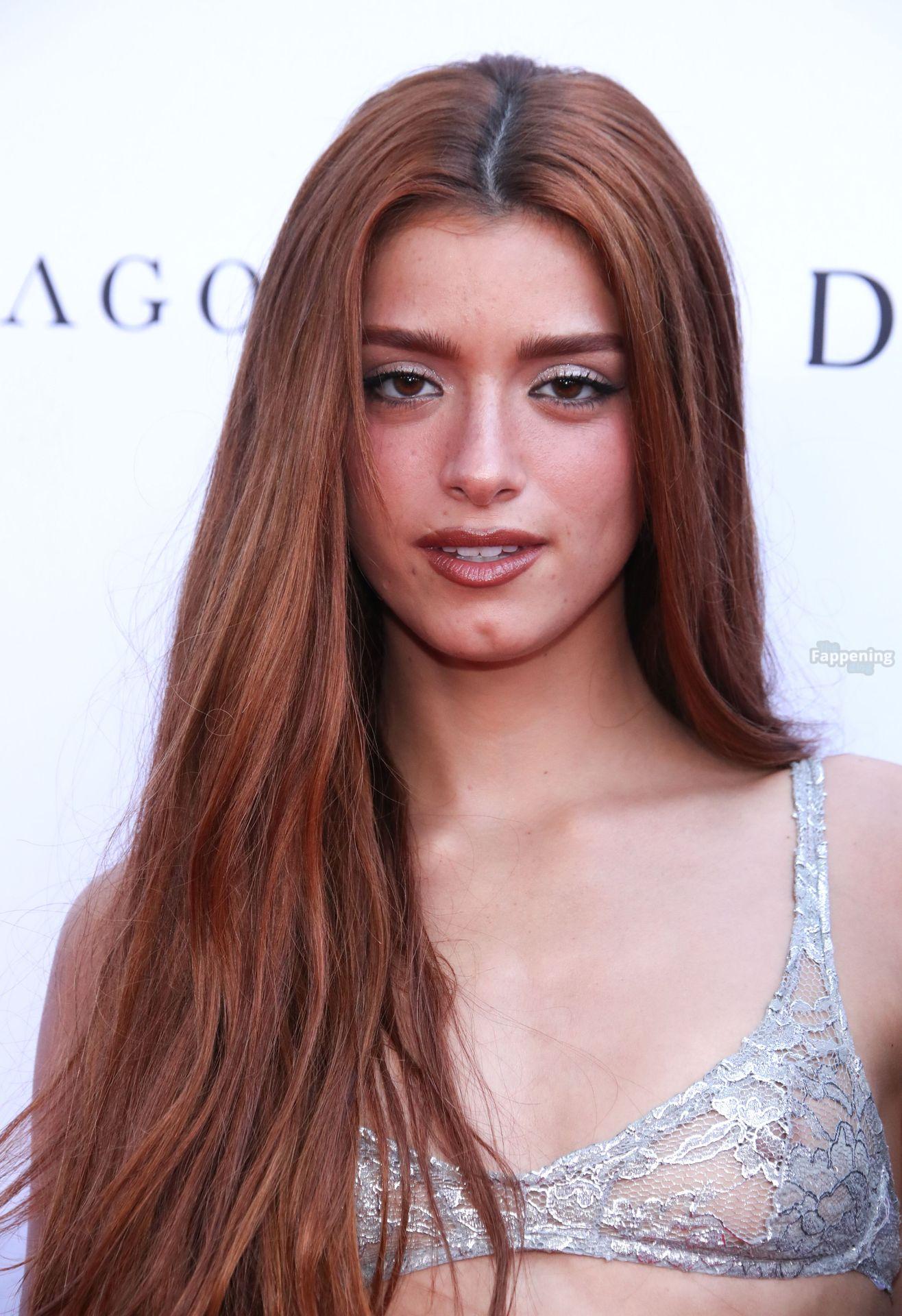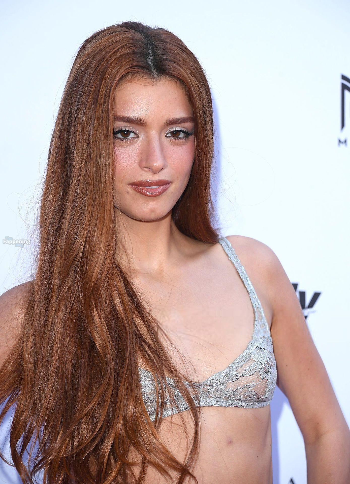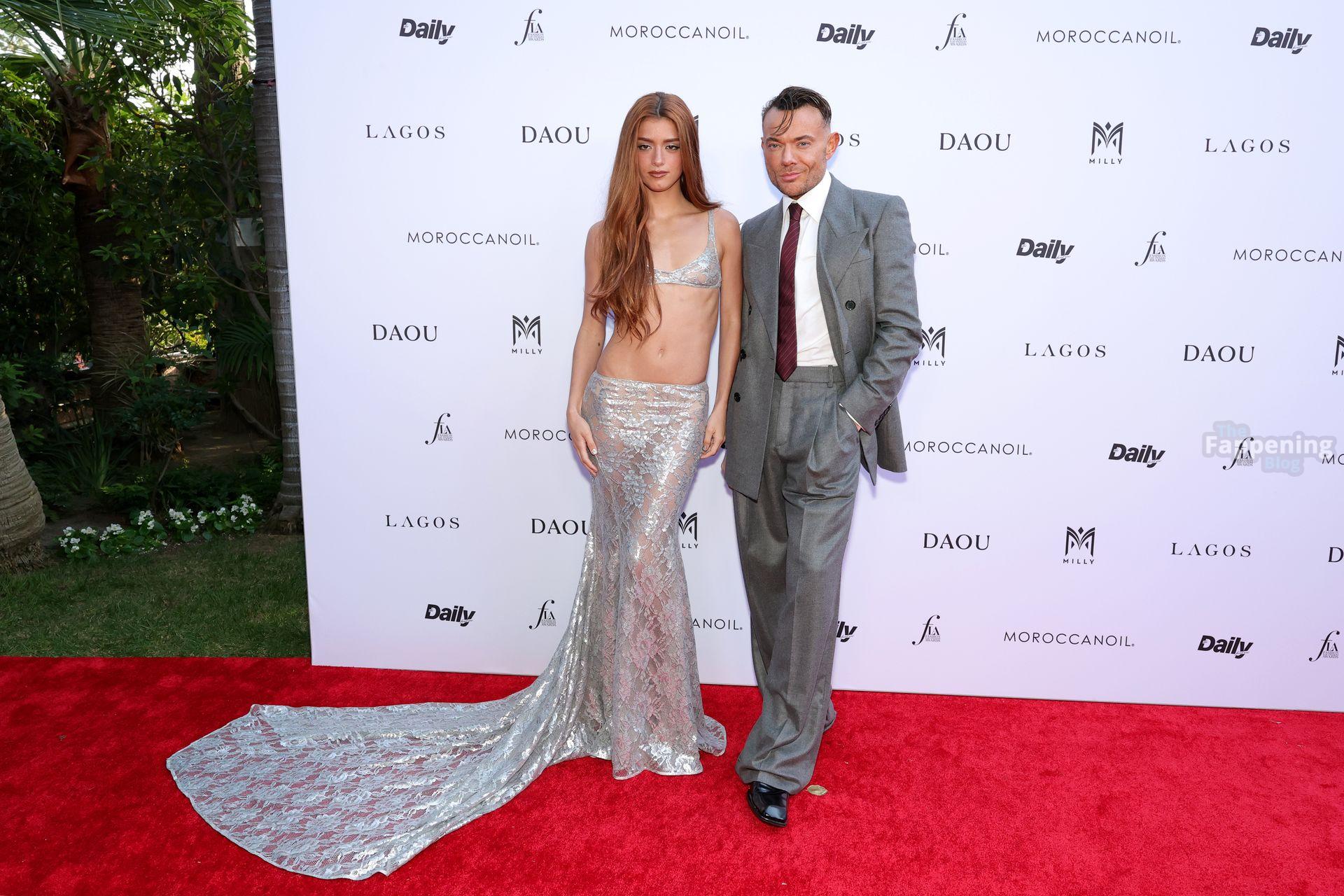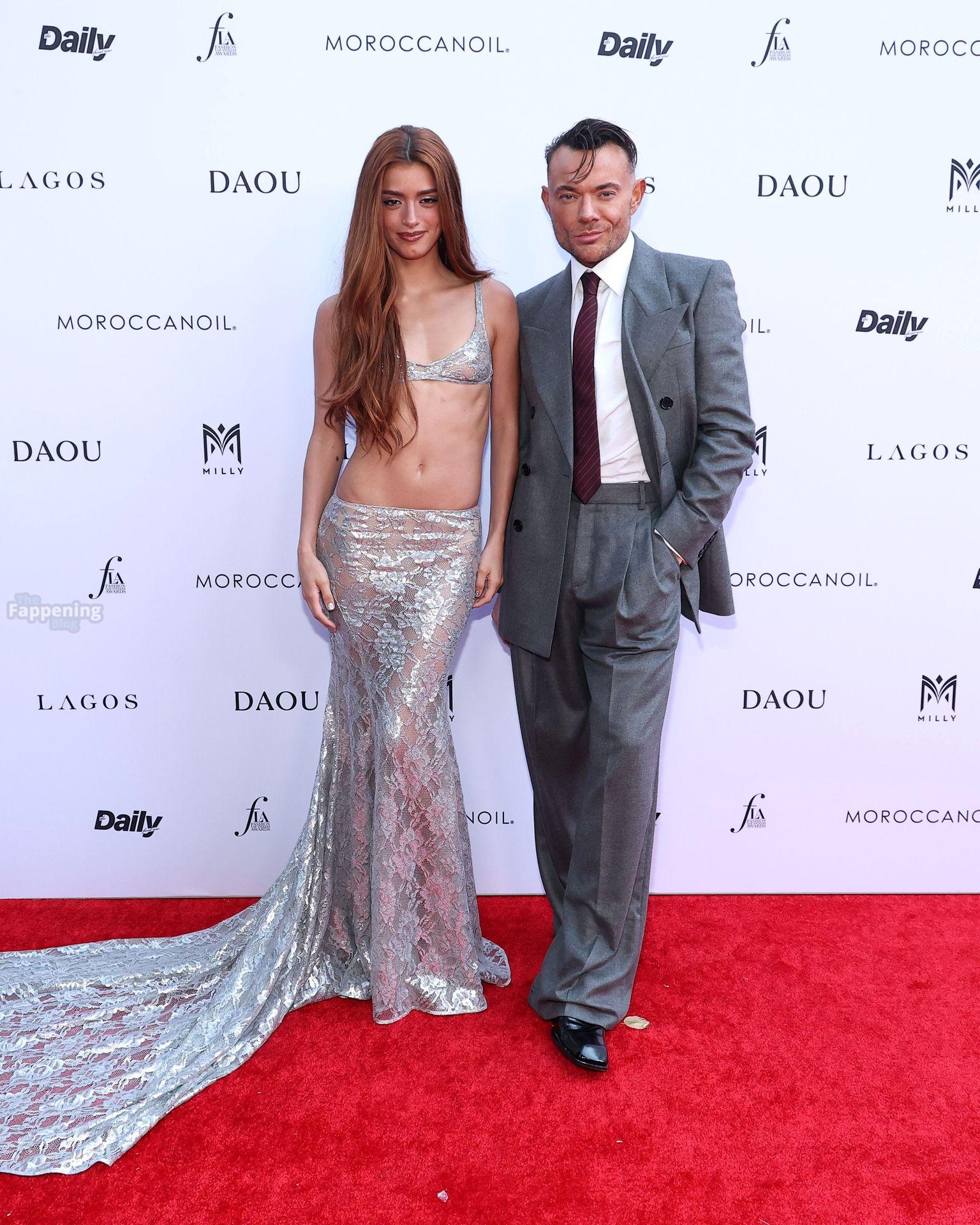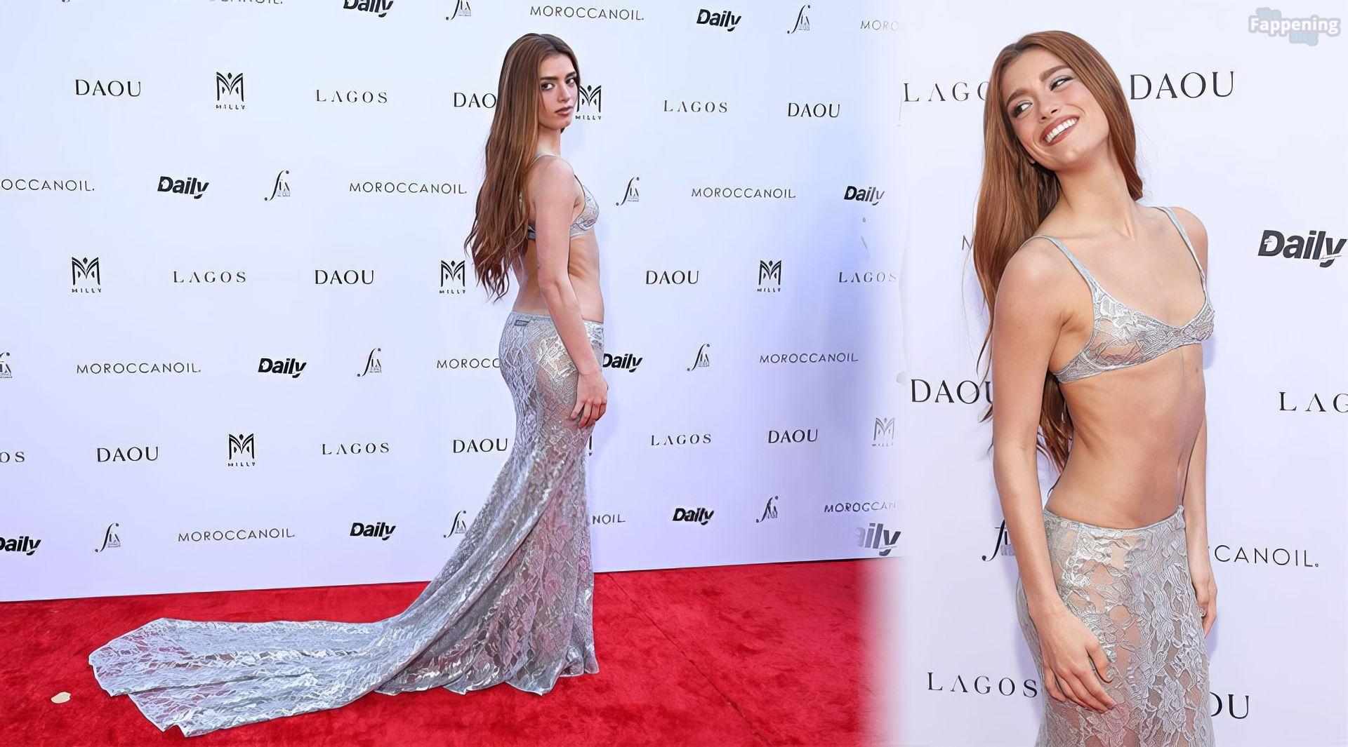 Dixie D’Amelio fue fotografiada en la alfombra roja de la Novena Entrega Anual de los Fashion Los Angeles Awards de The Daily Front Row en el Hotel Beverly Hills, luciendo un sujetador plateado transparente que dejaba ver sus pechos y pezones.