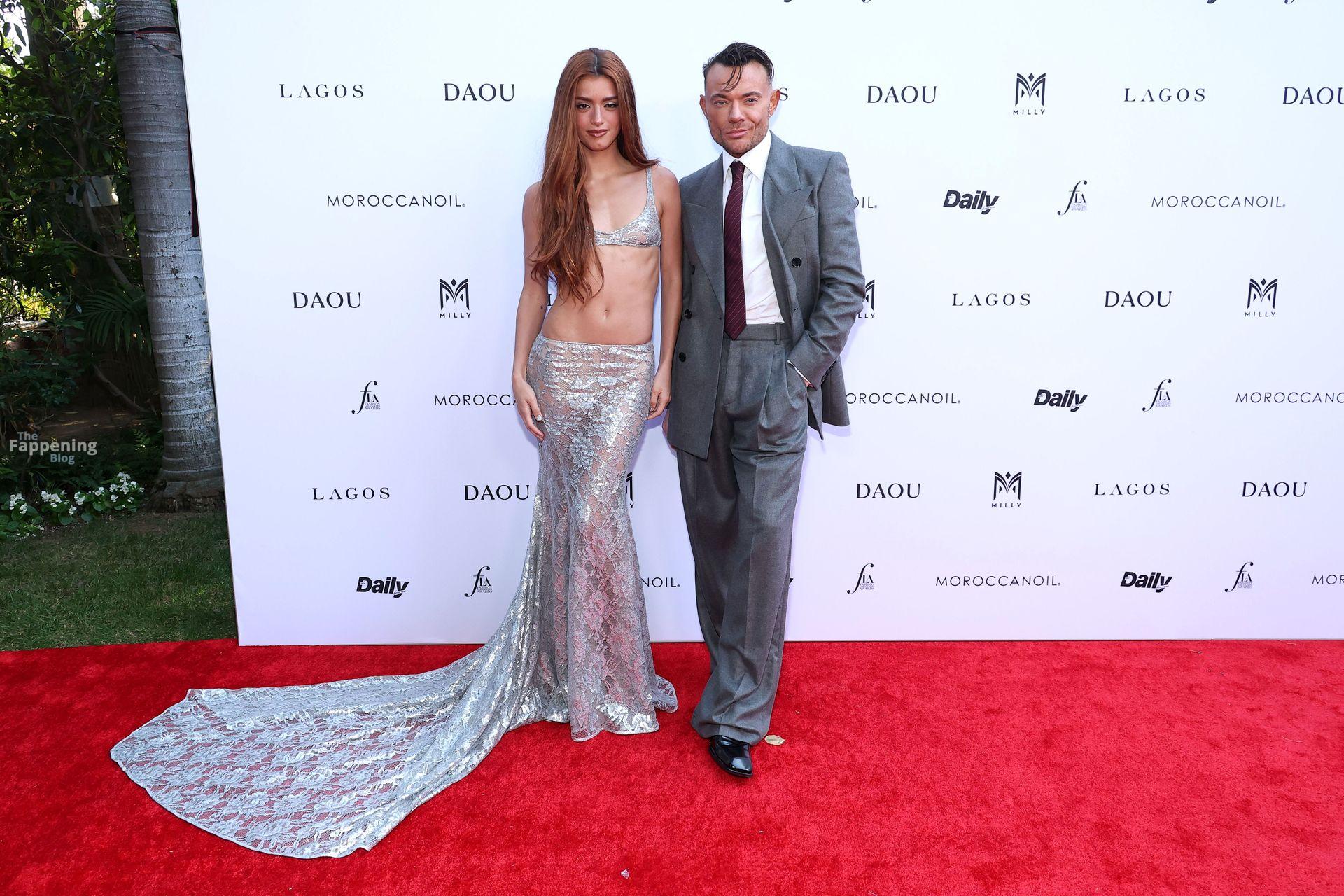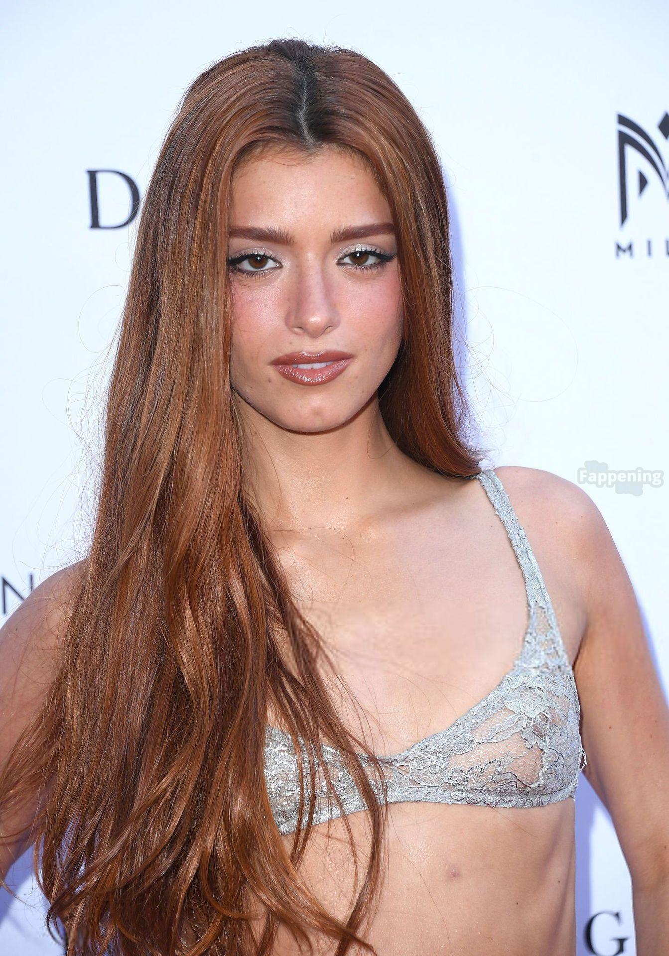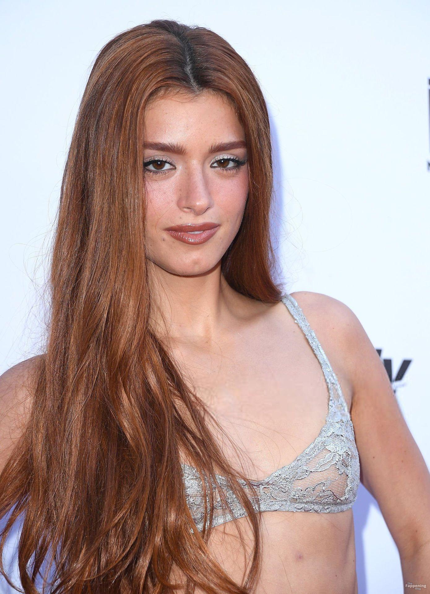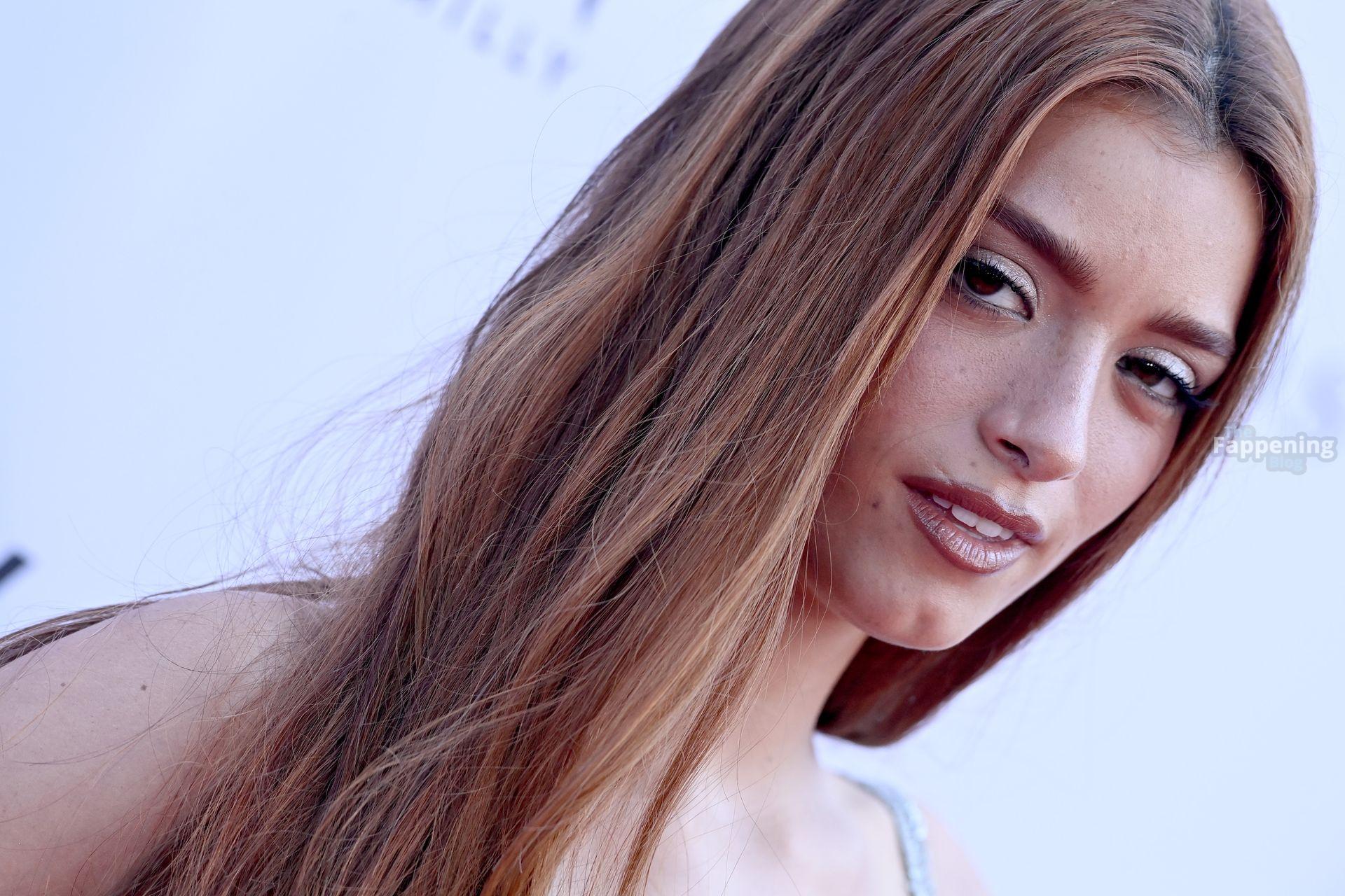 Dixie D’Amelio fue fotografiada en la alfombra roja de la Novena Entrega Anual de los Fashion Los Angeles Awards de The Daily Front Row en el Hotel Beverly Hills, luciendo un sujetador plateado transparente que dejaba ver sus pechos y pezones.