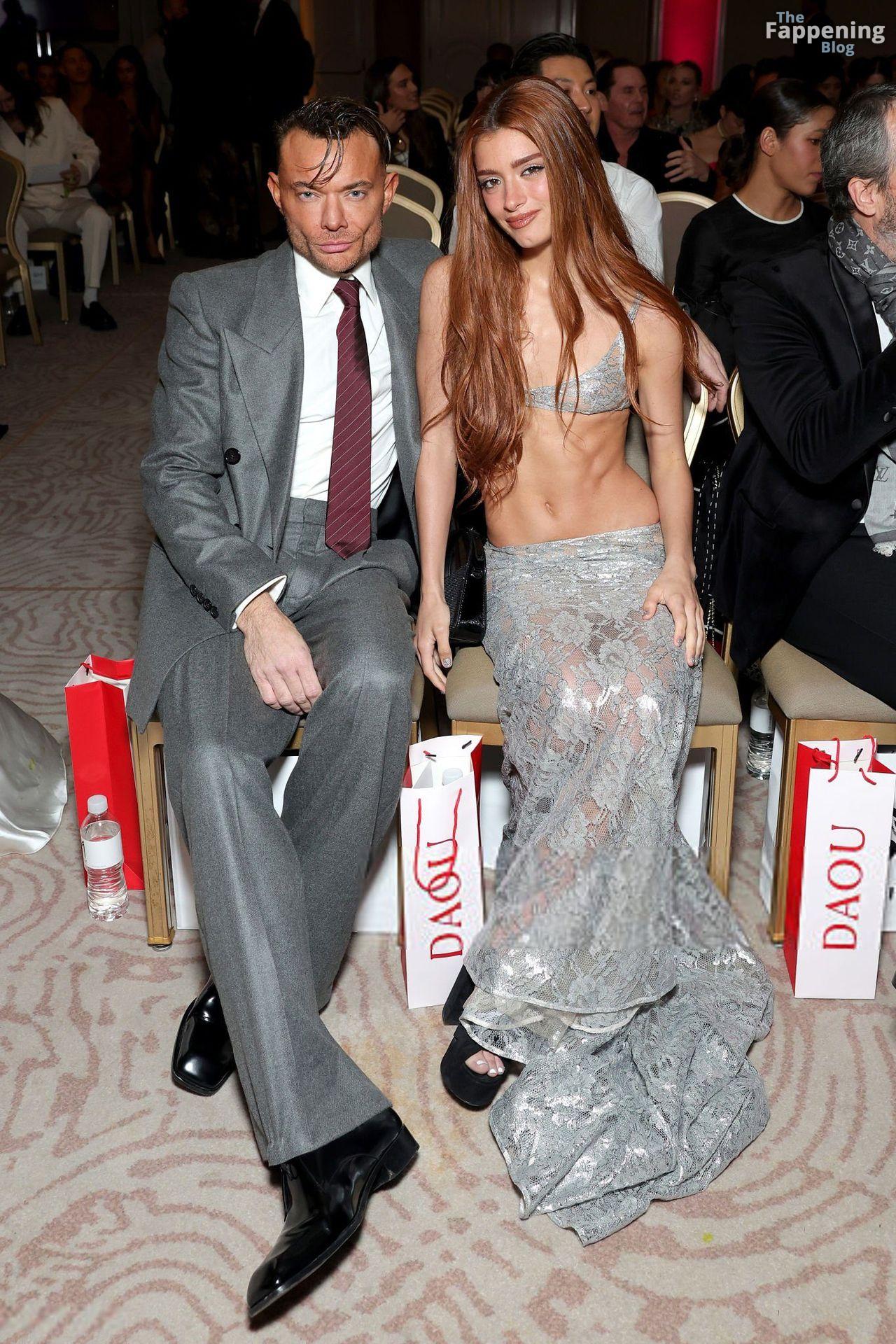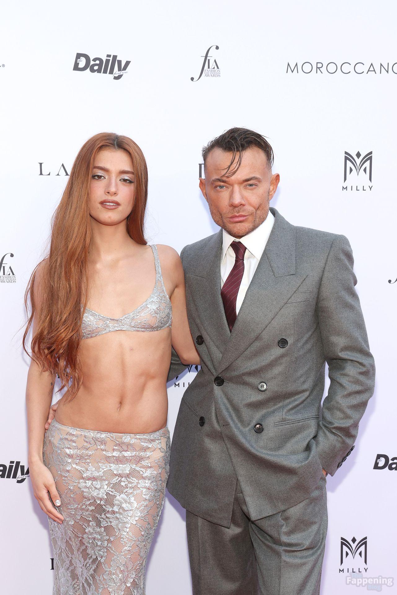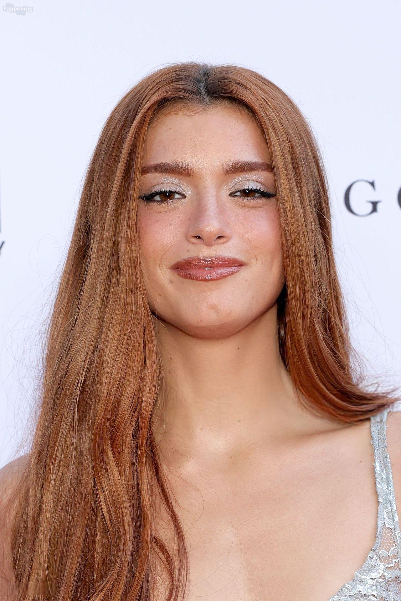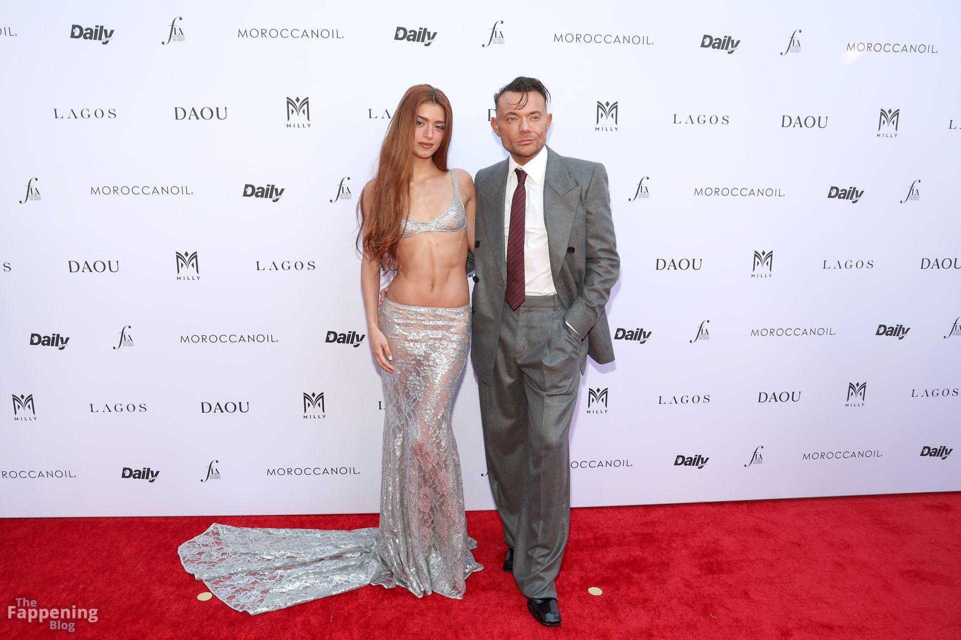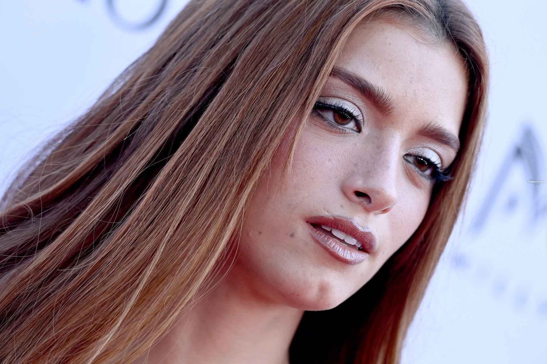 Dixie D’Amelio fue fotografiada en la alfombra roja de la Novena Entrega Anual de los Fashion Los Angeles Awards de The Daily Front Row en el Hotel Beverly Hills, luciendo un sujetador plateado transparente que dejaba ver sus pechos y pezones.