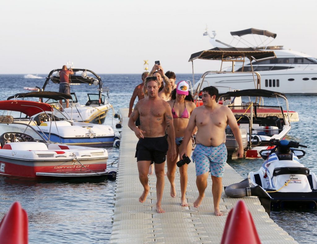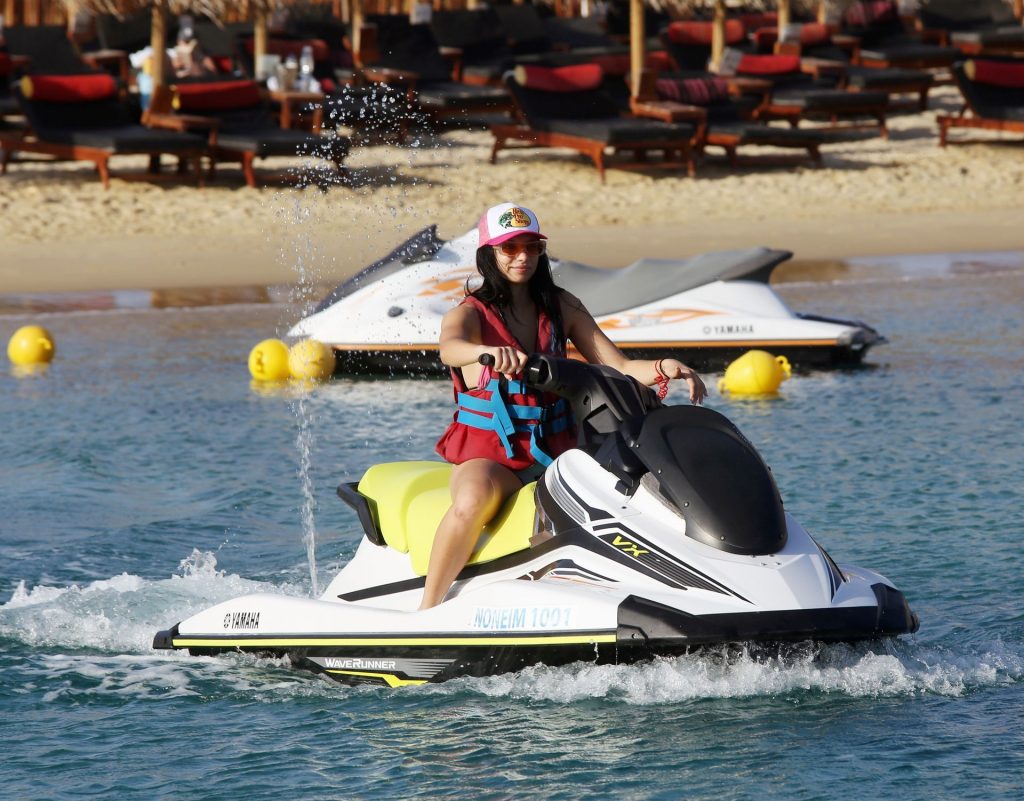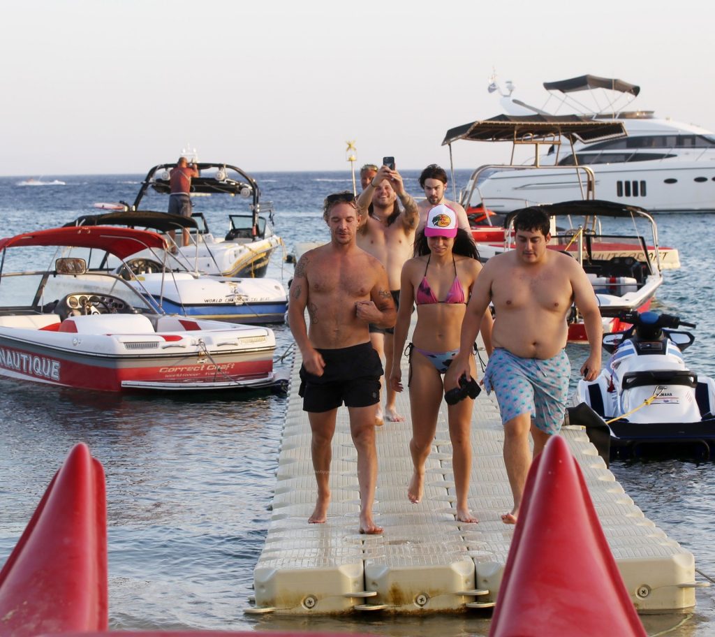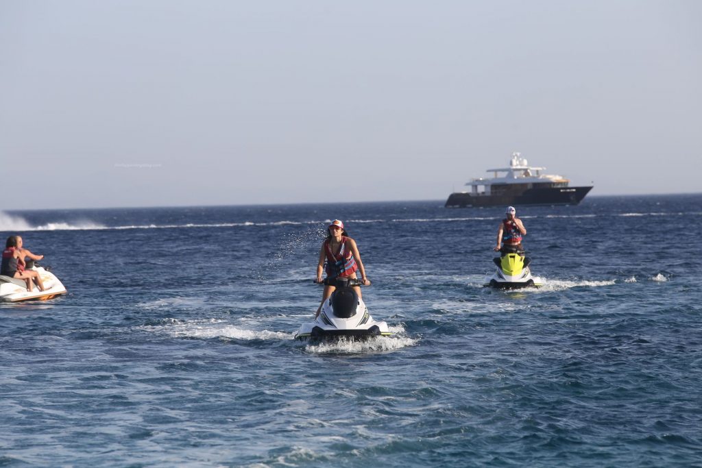 DJ Diplo fue visto visitando el Centro de Deportes Acuáticos Elia para practicar esquí acuático en Mykonos, Grecia, 08/04/2021. También se vio a Diplo con un grupo de amigos en bikini, incluyendo a Chantel Jeffries.