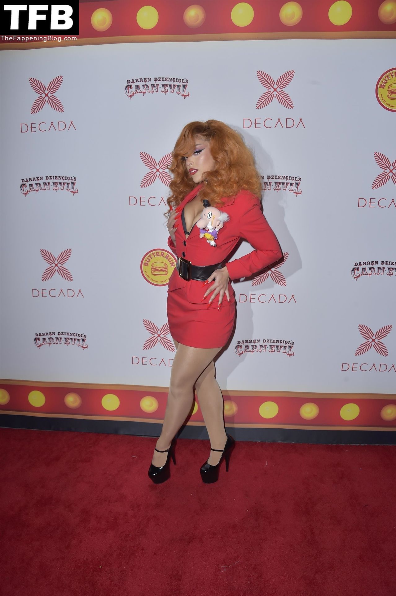 Doja Cat luce sexy en la Fiesta de Halloween CARN*EVIL de Darren Dzienciol Presentada por Decada y Organizada por Alessandra Ambrosio en una Residencia Privada en Bel Air, 30/10/2021.