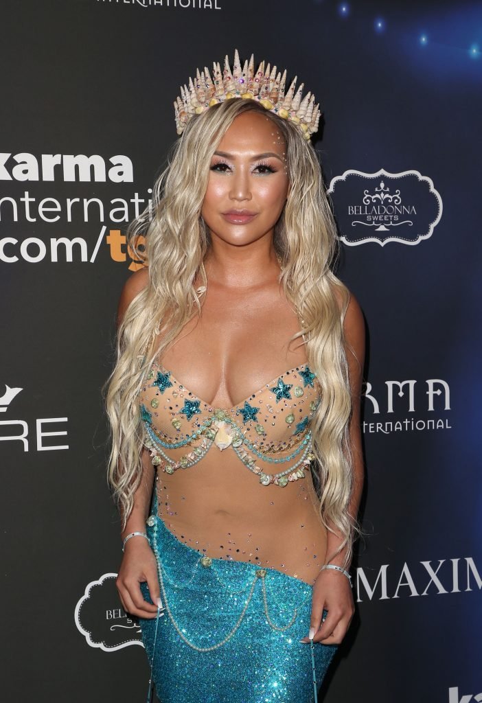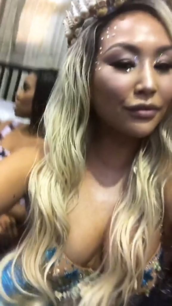Esa figura cuadrada es porque ella es un hombre. Las mujeres generalmente tienen una figura de reloj de arena. El hecho de que su ombligo esté MUY POR ENCIMA de sus caderas es otra señal de que en realidad es un hombre; las mujeres tienen el ombligo por debajo o alineado con sus caderas. Además, sus hombros son más anchos que sus caderas (no en estas fotos porque ese disfraz tiene relleno en las caderas). Si buscas imágenes de ella en la playa, puedes ver a qué me refiero. Y tiene una cresta de ceja muy prominente que sobresale más allá de su frente. Lo que significa que la probabilidad de que sea una mujer real es casi inexistente. Tienes buen ojo para detectar lo que NO es femenino. La "figura como una caja" fue una gran observación.