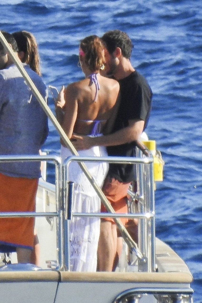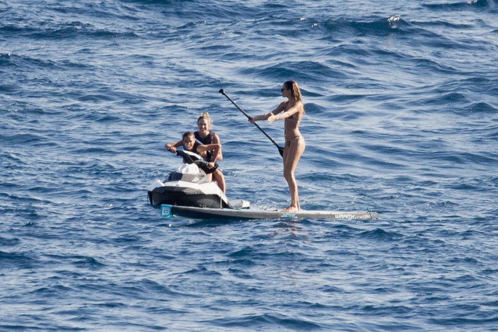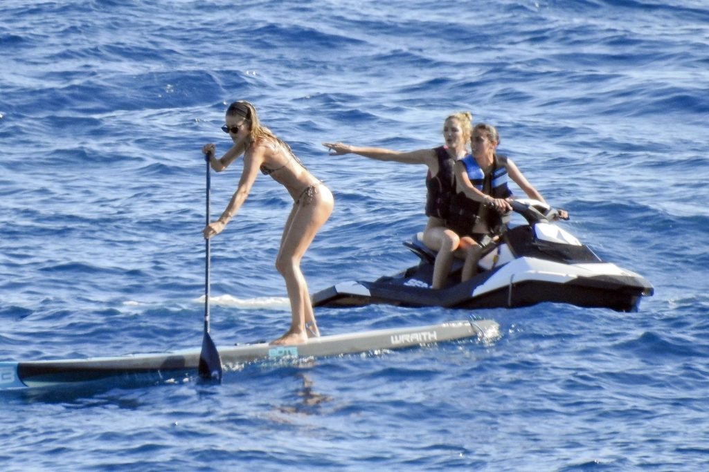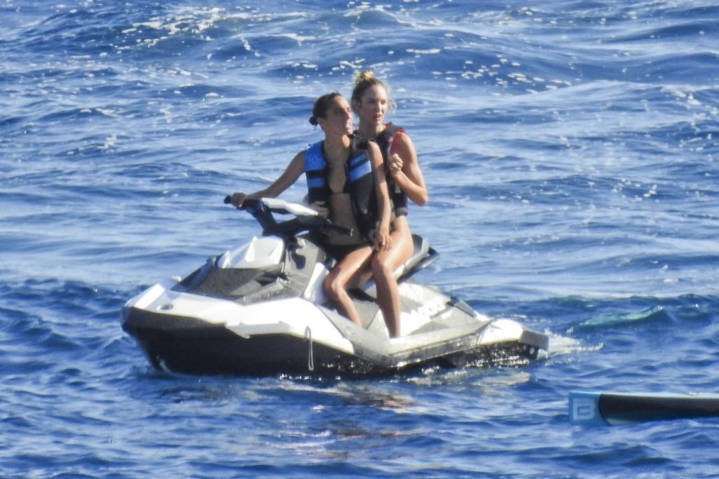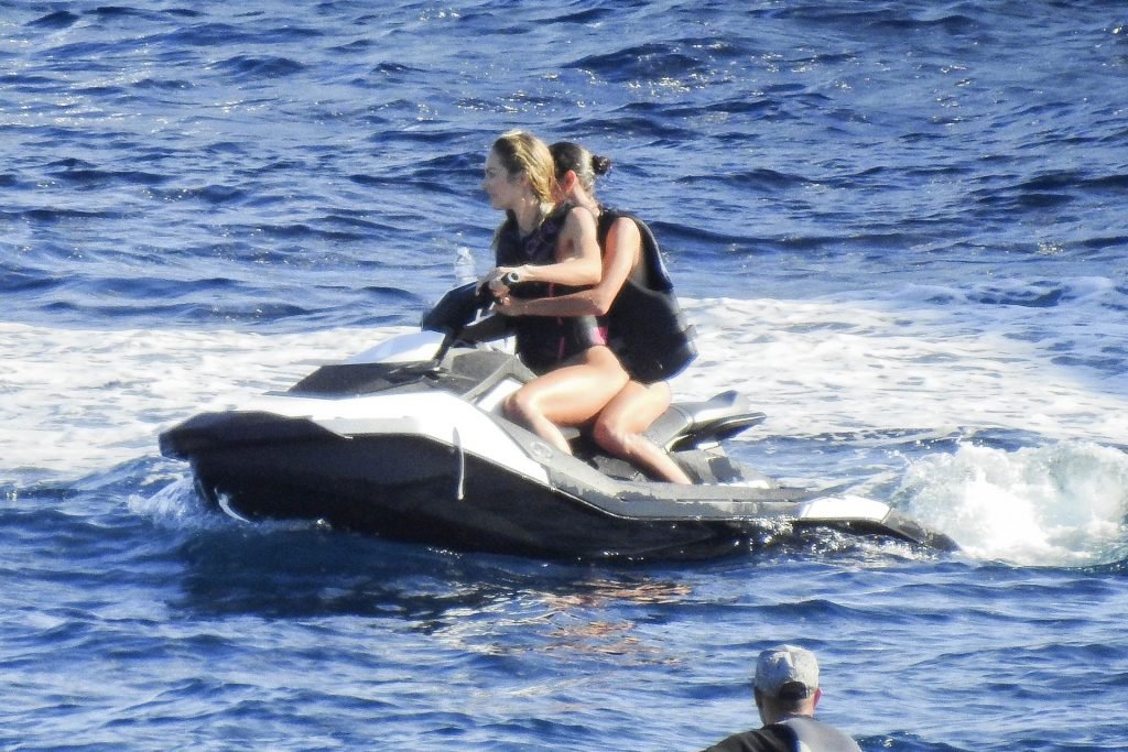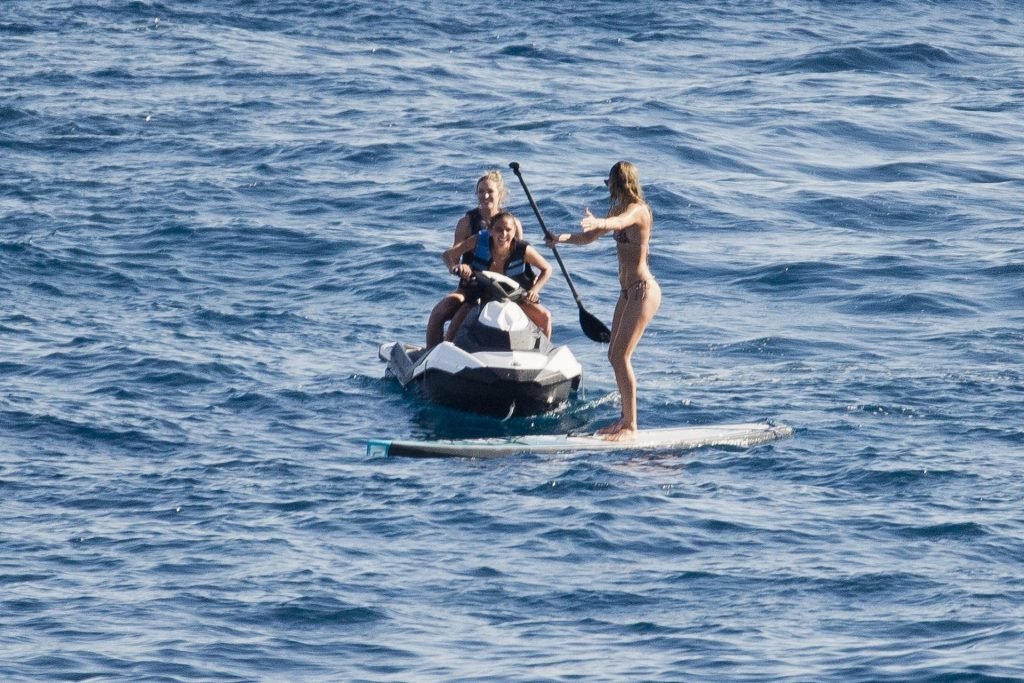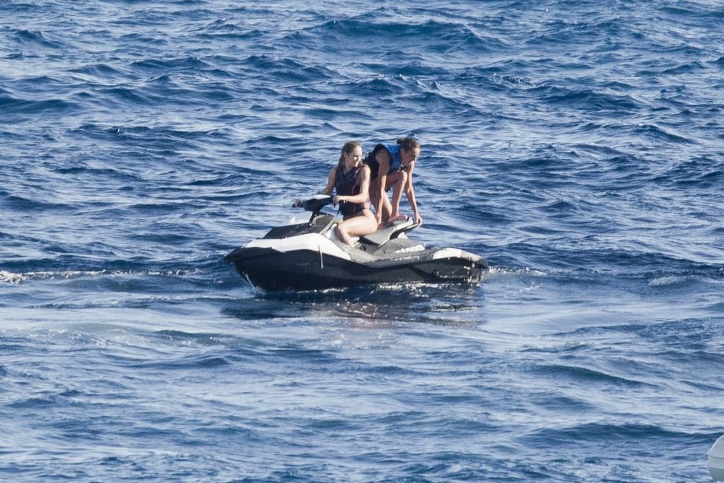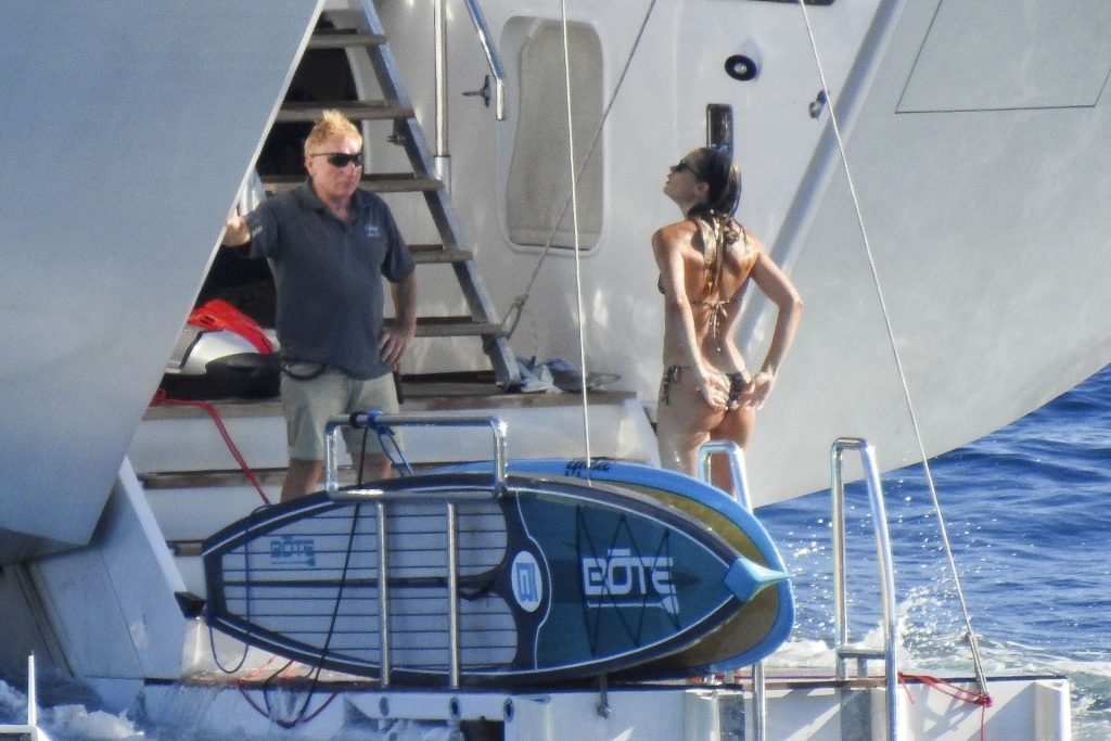 DJs Sunnery James y Ryan Marciano, el actor Glenn Powell y las supermodelos Doutzen Kroes, Candice Swanepoel, Joan Smalls comienzan la fiesta a bordo de una embarcación de lujo en Ibiza, 14/08/2019. También a bordo están el productor de cine Mohamed al Turki y el socialité Richie Akiva.
