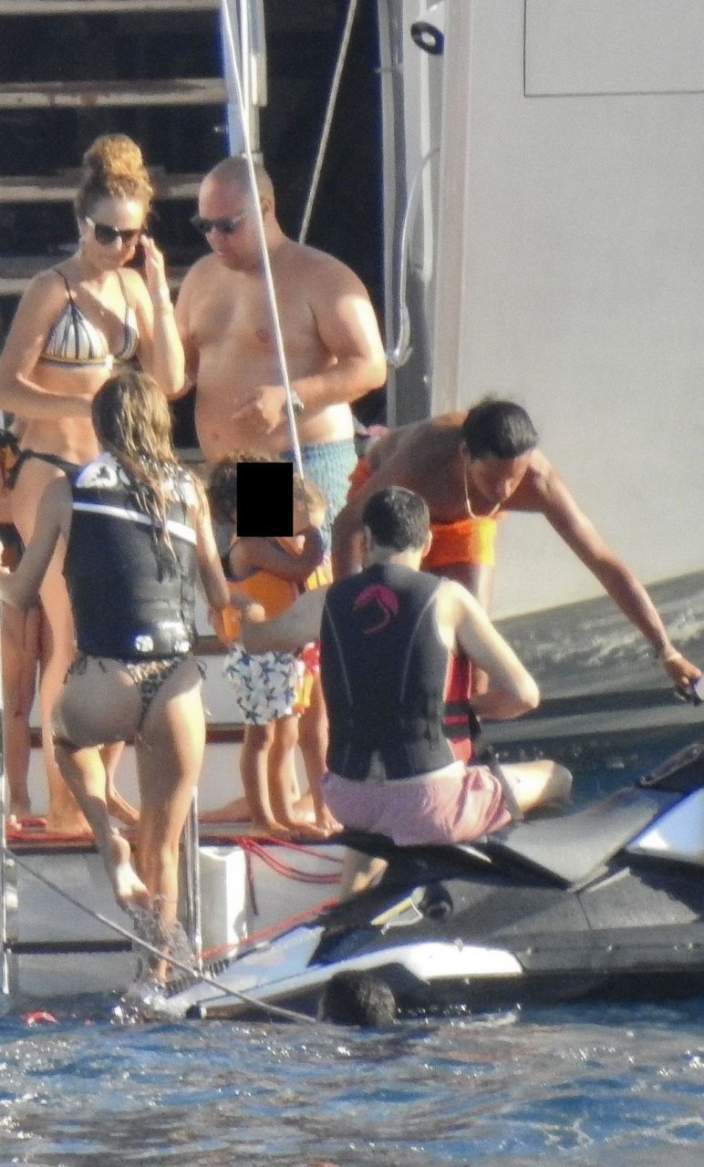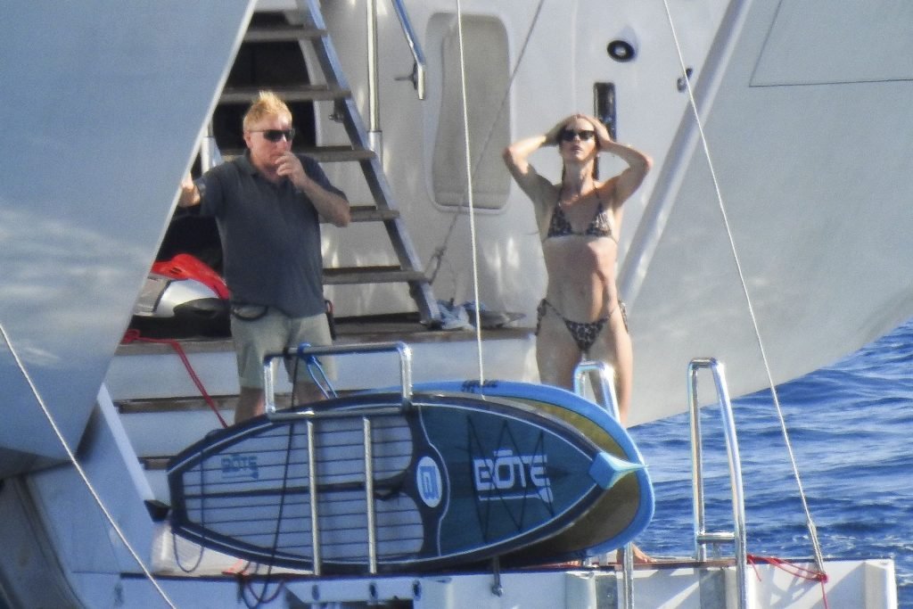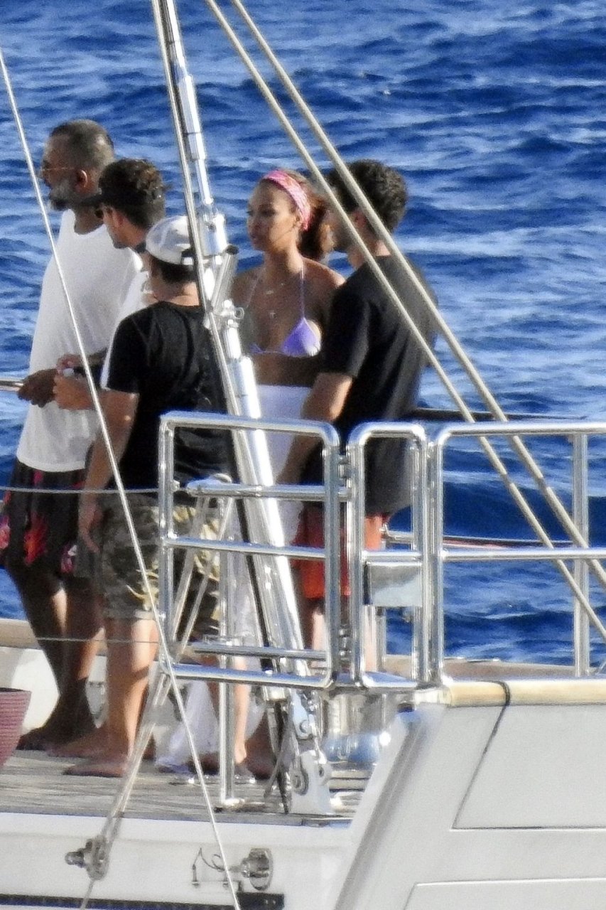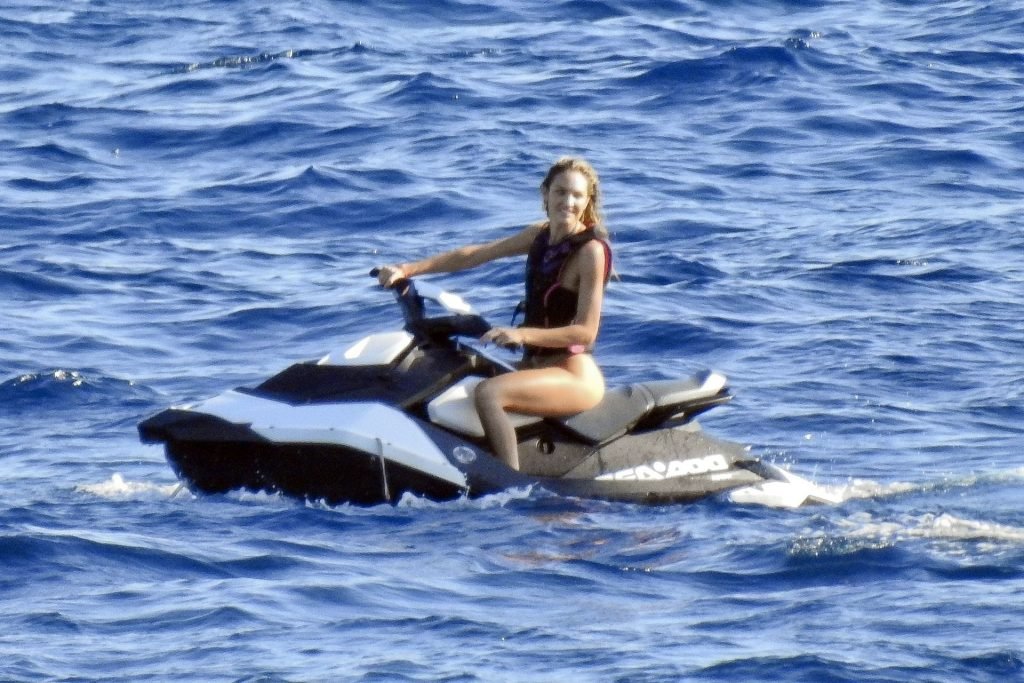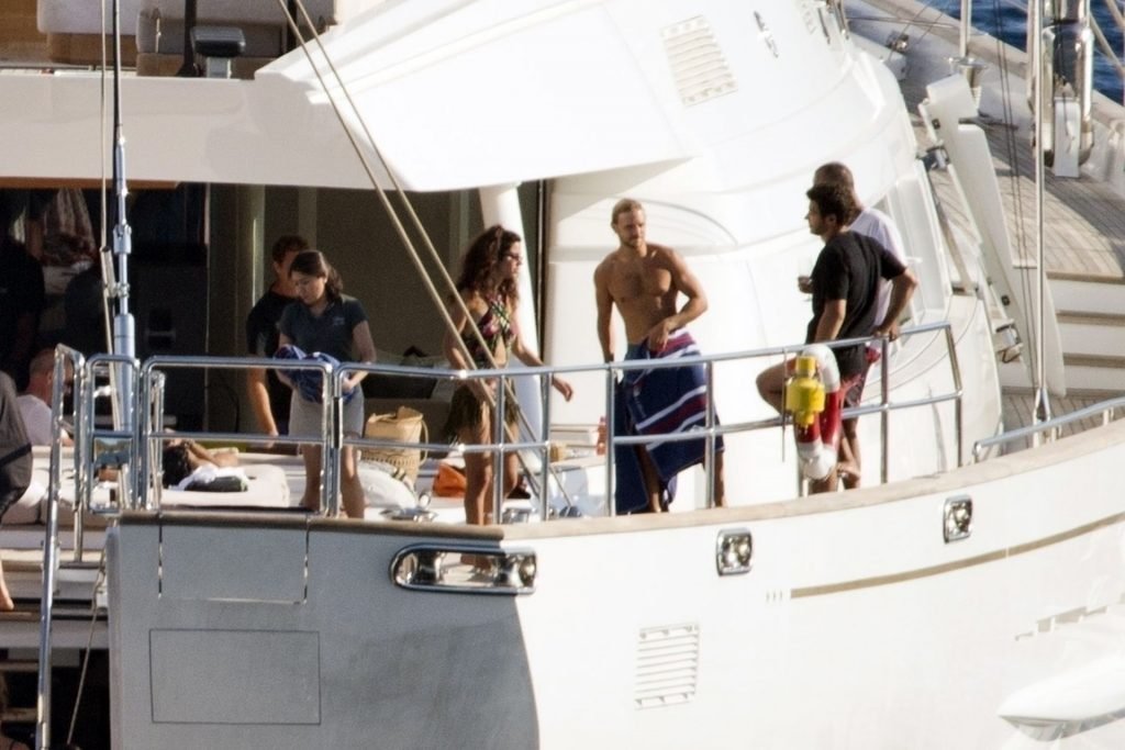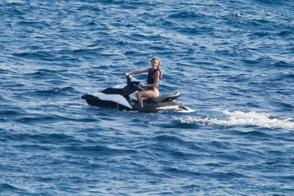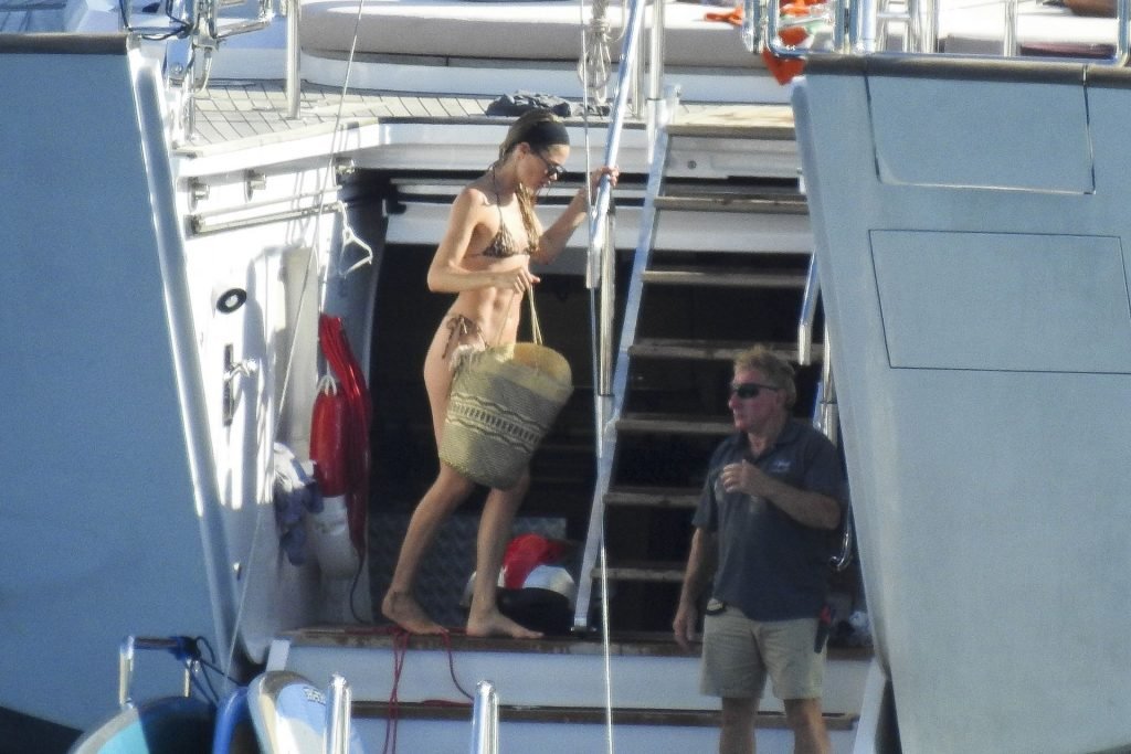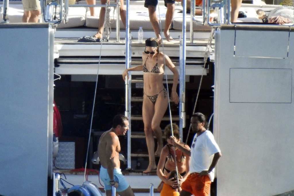 DJs Sunnery James y Ryan Marciano, el actor Glenn Powell y las supermodelos Doutzen Kroes, Candice Swanepoel, Joan Smalls comienzan la fiesta a bordo de una embarcación de lujo en Ibiza, 14/08/2019. También a bordo están el productor de cine Mohamed al Turki y el socialité Richie Akiva.