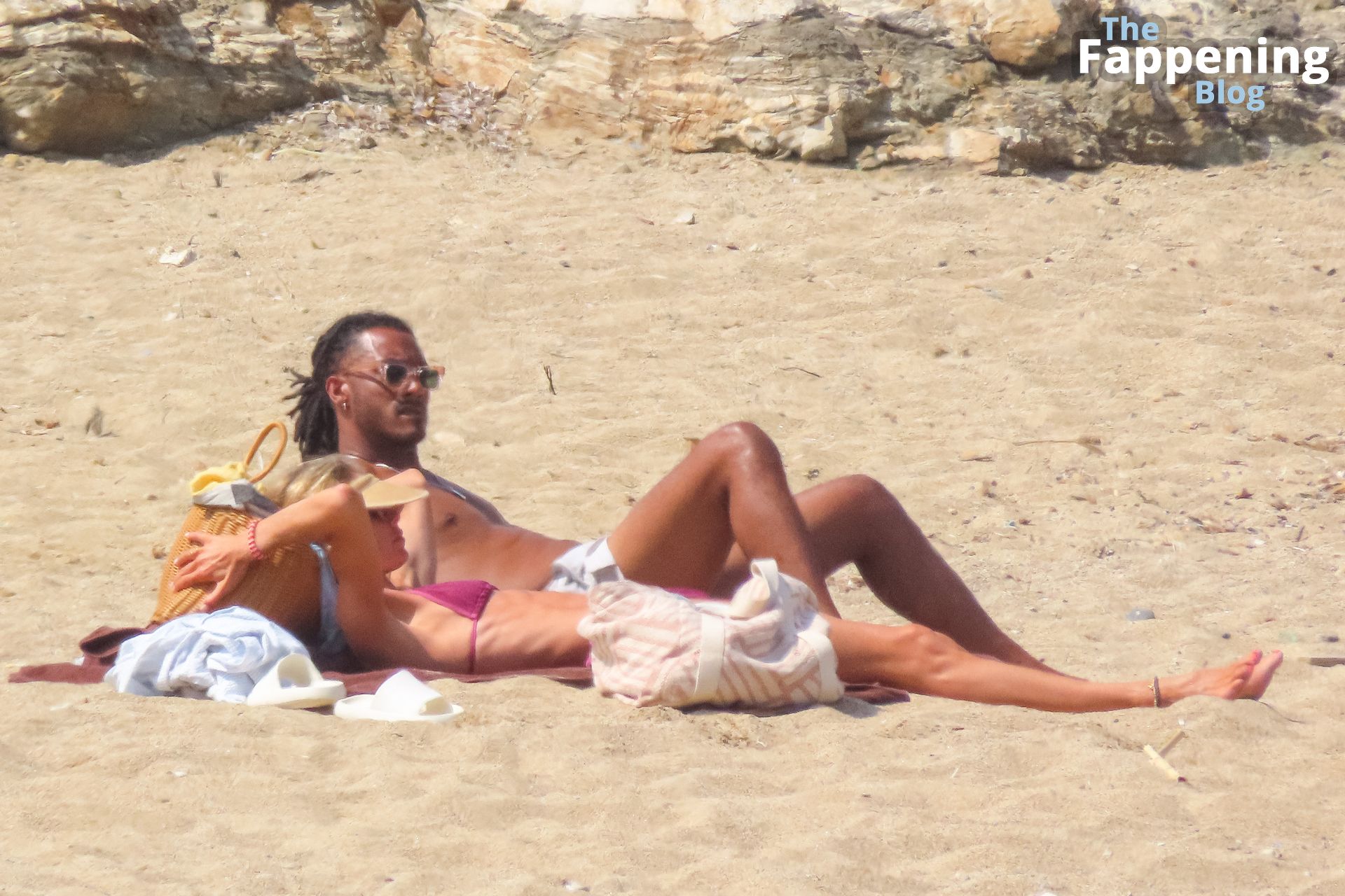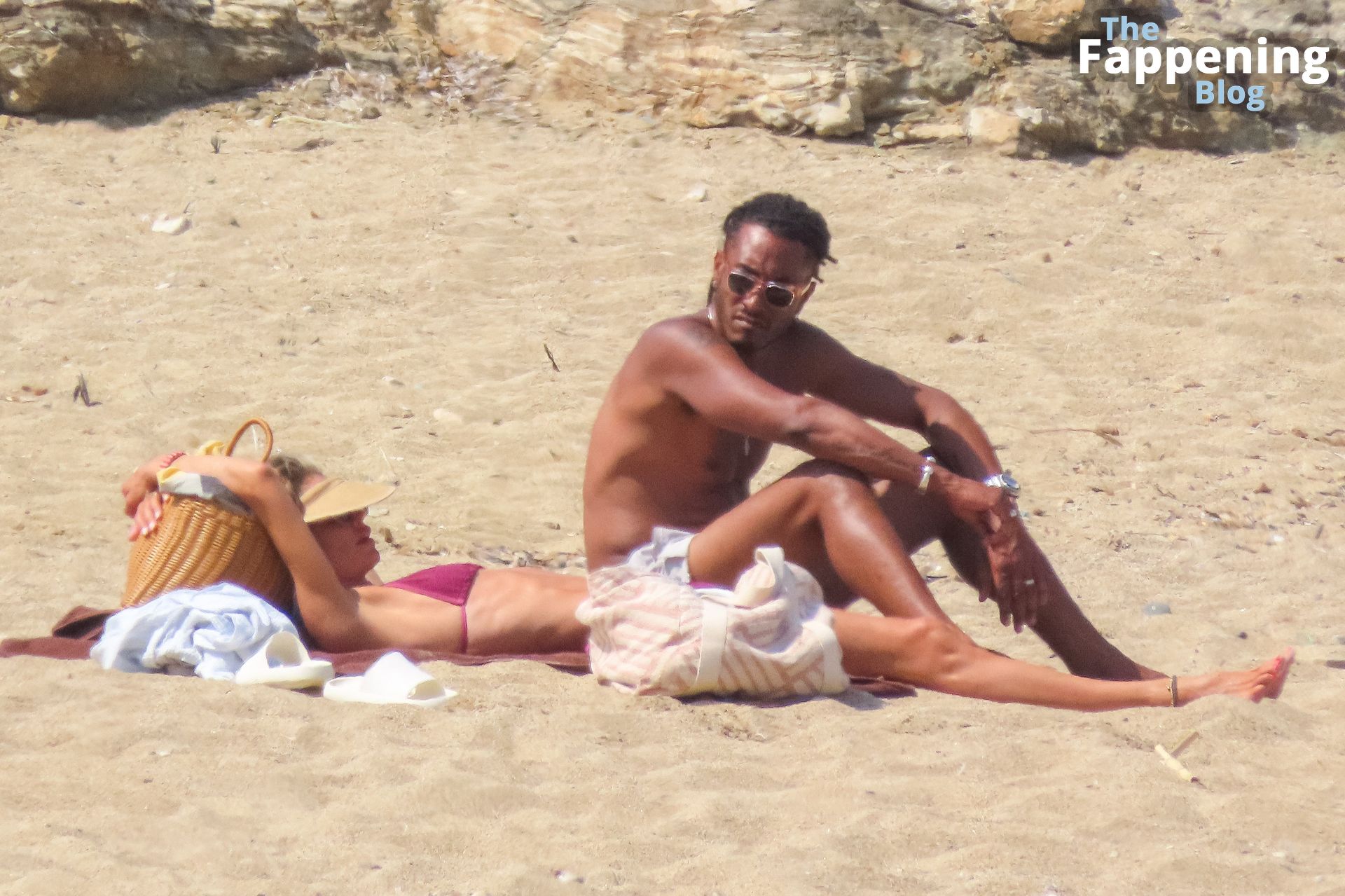 Doutzen Kroes, de 42 años, junto a su esposo e hijos, se les ve de vacaciones en la isla griega de Mykonos, 22/08/2023. Ella muestra su increíble cuerpo con un diminuto bikini color ciruela.