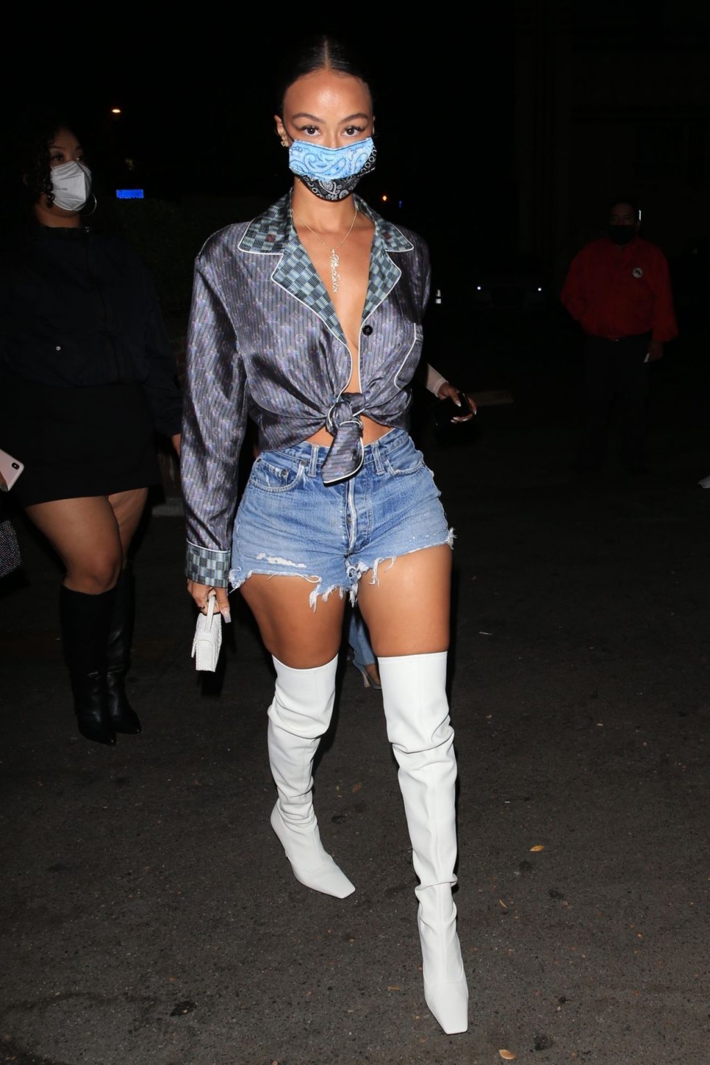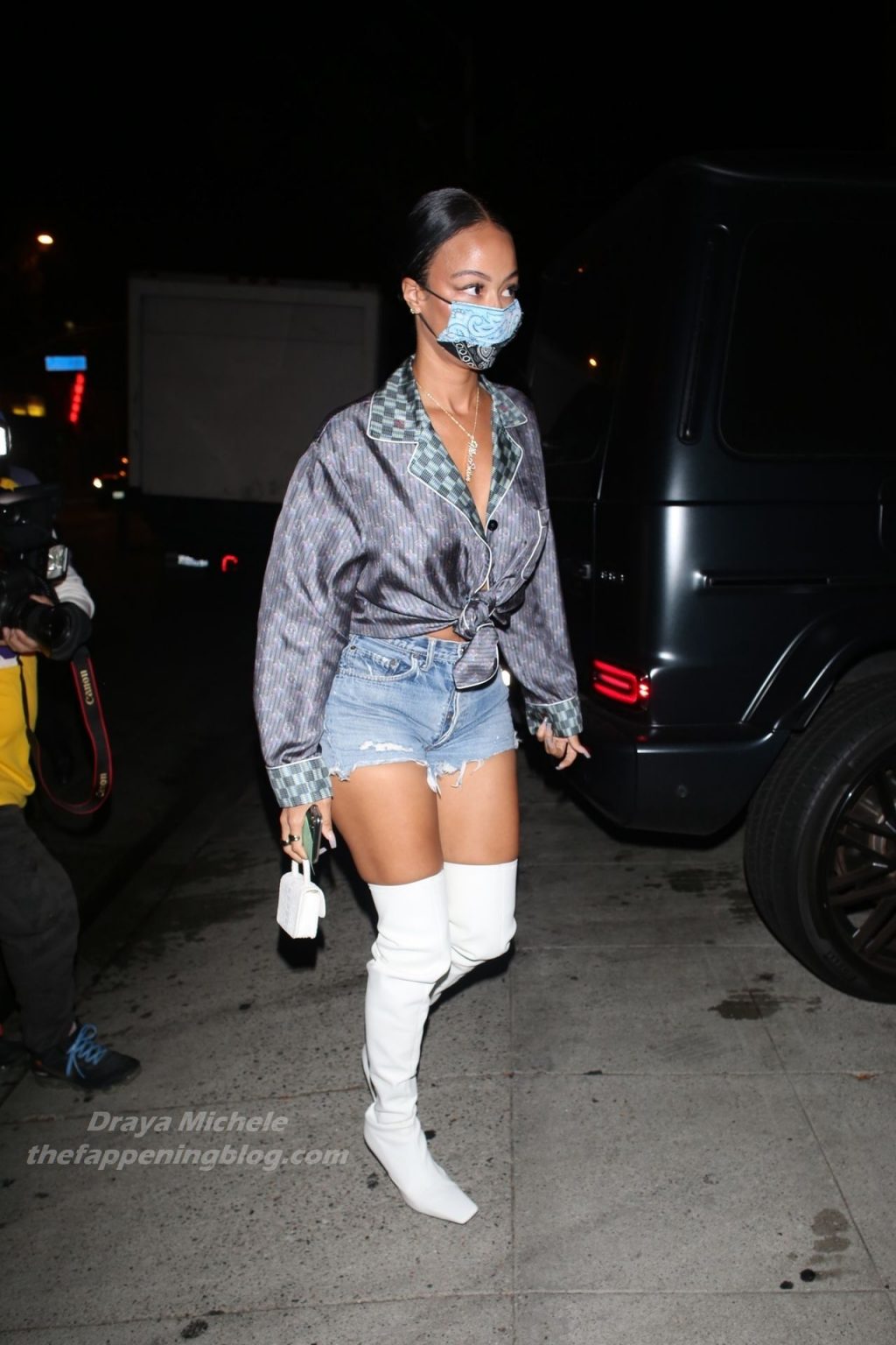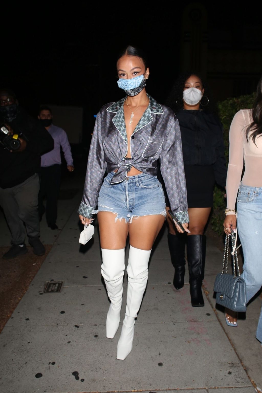 Draya Michele muestra sus piernas tonificadas mientras es vista llegando a la fiesta del campeonato de los LA Lakers en West Hollywood, 20/10/2020.