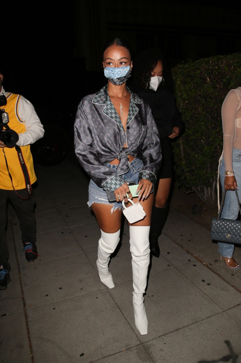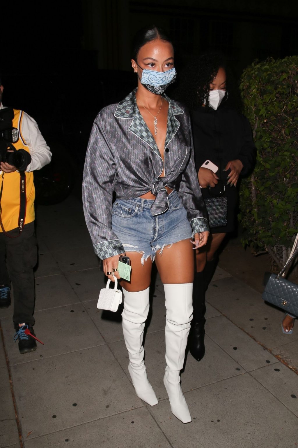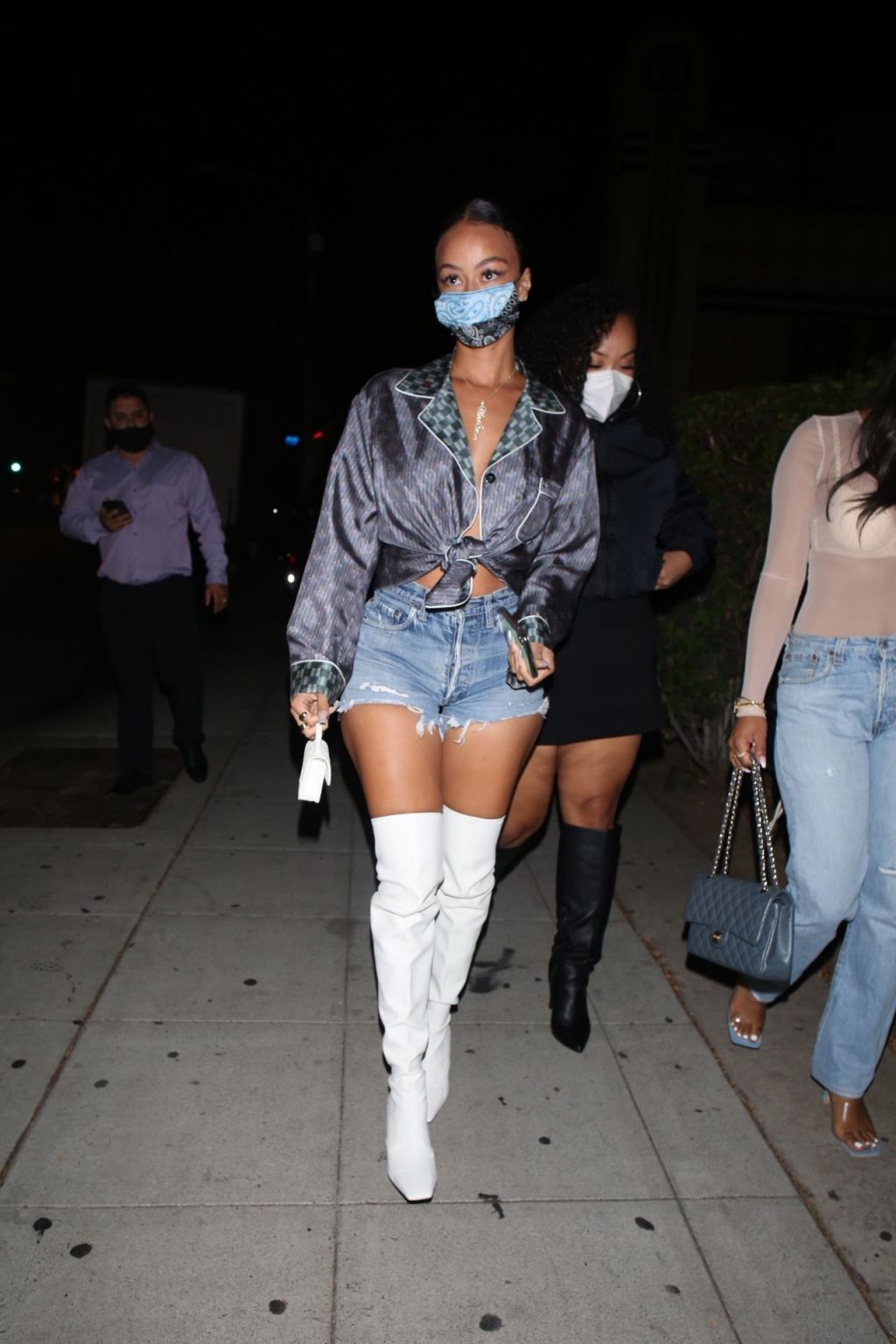 Draya Michele muestra sus piernas tonificadas mientras es vista llegando a la fiesta del campeonato de los LA Lakers en West Hollywood, 20/10/2020.