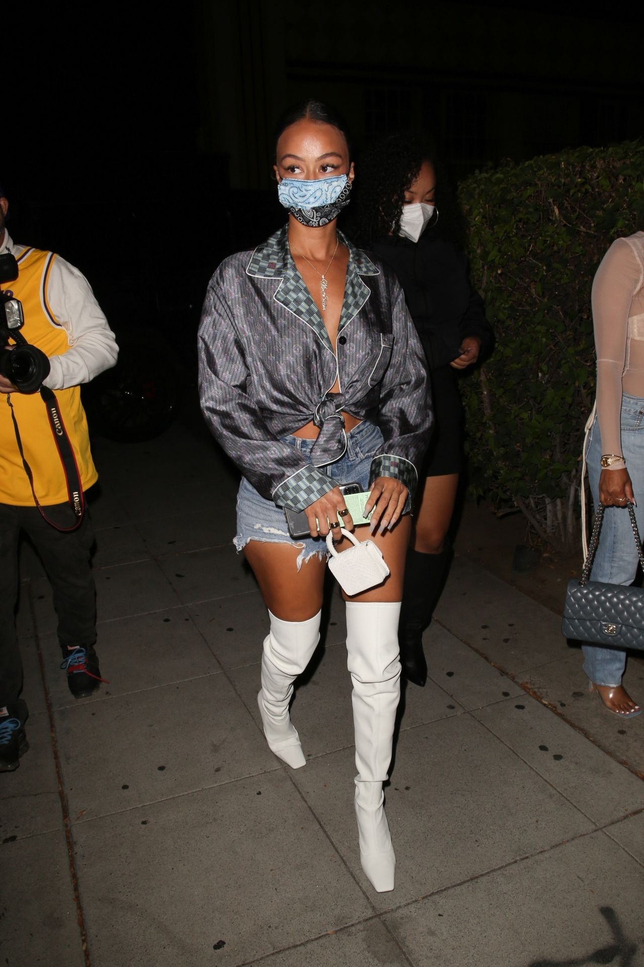 Draya Michele muestra sus piernas tonificadas mientras es vista llegando a la fiesta del campeonato de los LA Lakers en West Hollywood, 20/10/2020.