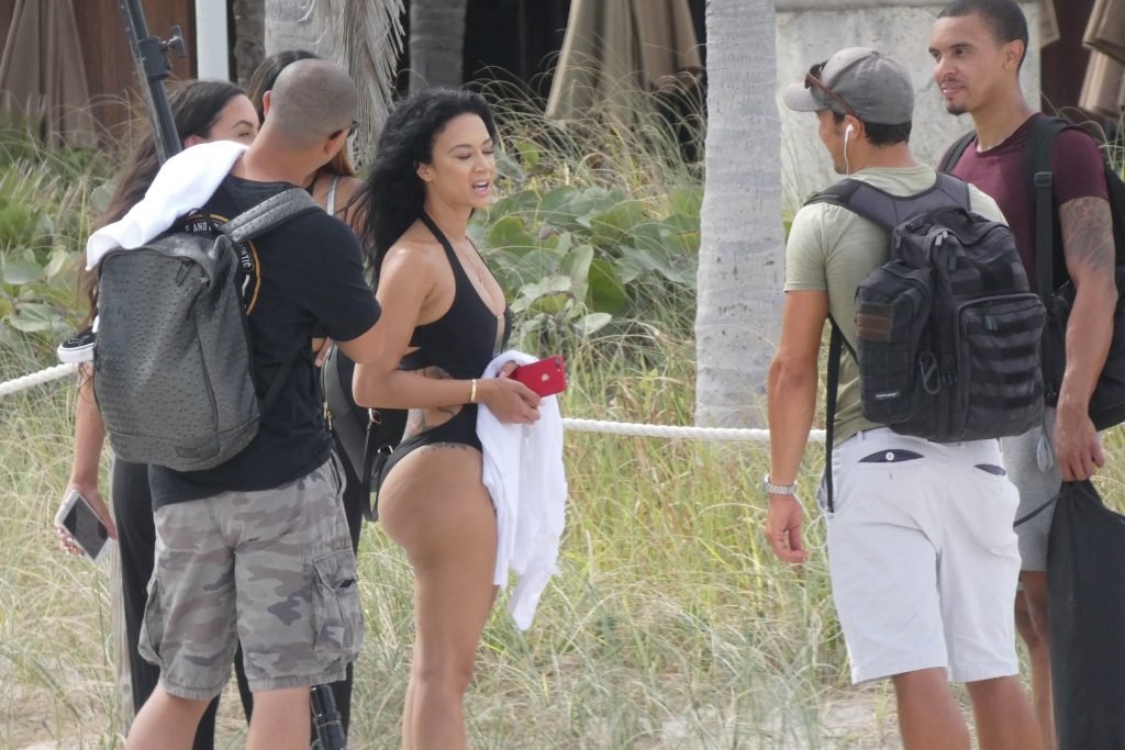 La modelo y actriz estadounidense Draya Michele, de 33 años, fue fotografiada con un sexy traje de baño negro mientras realizaba una sesión de fotos en la playa de Miami Beach. La joven de 33 años lucía espectacular mostrando su cuerpo muy curvilíneo.