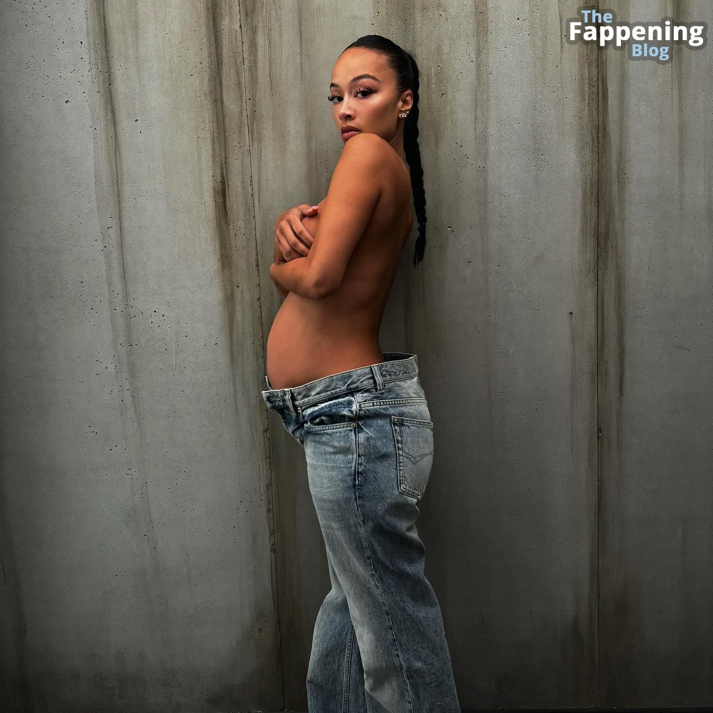 La reconocida modelo y estrella de las redes sociales Draya Michele está esperando un bebé a los 39 años. A pesar de su edad, sigue luciendo delgada y sexy incluso durante el embarazo. Para presumir su figura en este momento especial, Draya Michele compartió una serie de fotos semidesnuda, cubriéndose los pechos con las manos.