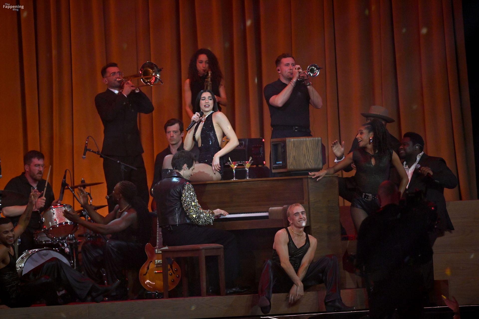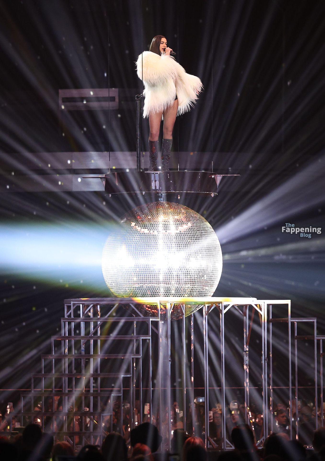 Dua Lipa actúa durante el espectáculo en vivo de los BRIT Awards 2026 en la Co-op Live Arena, Manchester. Los premios anuales de música pop son presentados por la Industria Fonográfica Británica (BPI).
