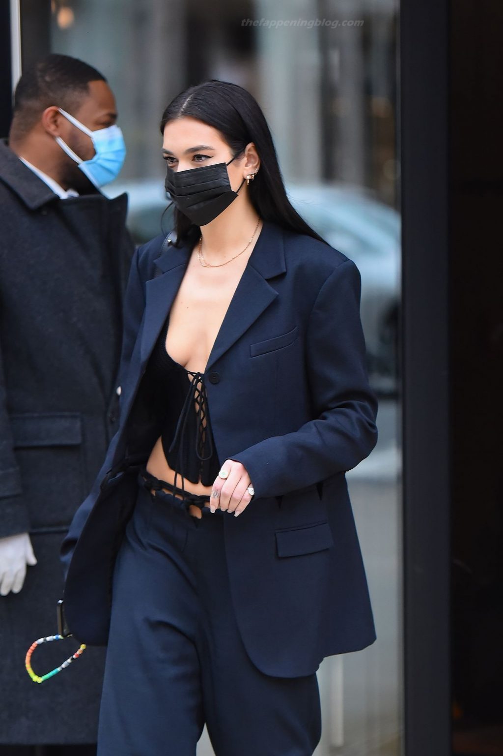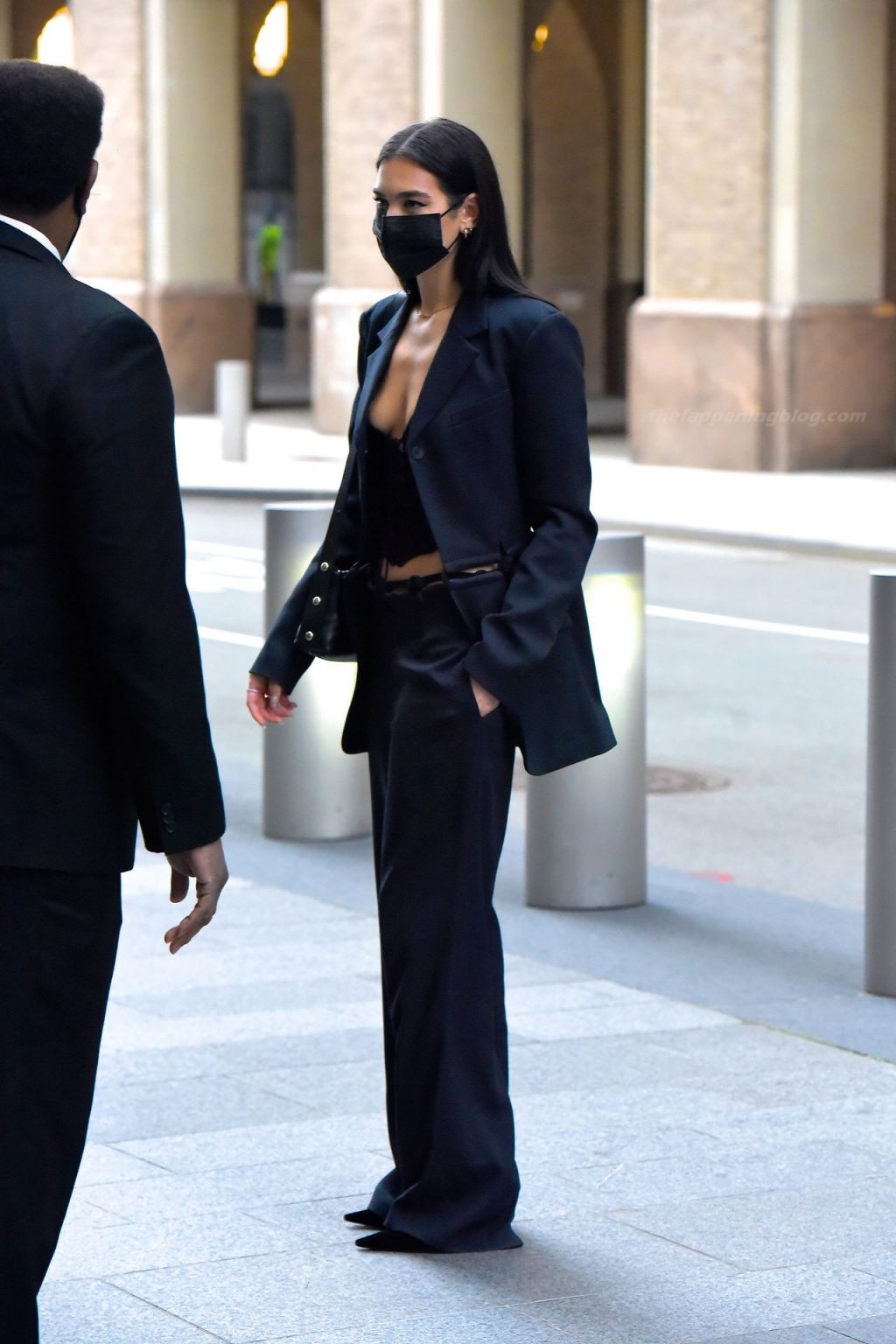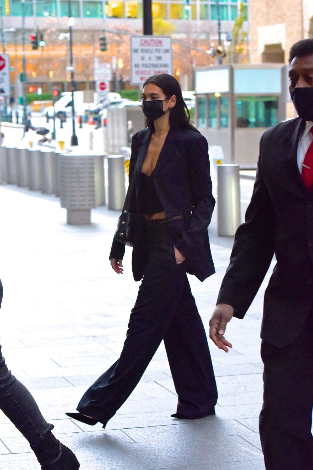 Dua Lipa se viste en Manhattan, NYC, 12/09/2020. La cantante británica lució elegante con un conjunto negro a medida mientras salía en Manhattan, mostrando su escote con un top de punto.