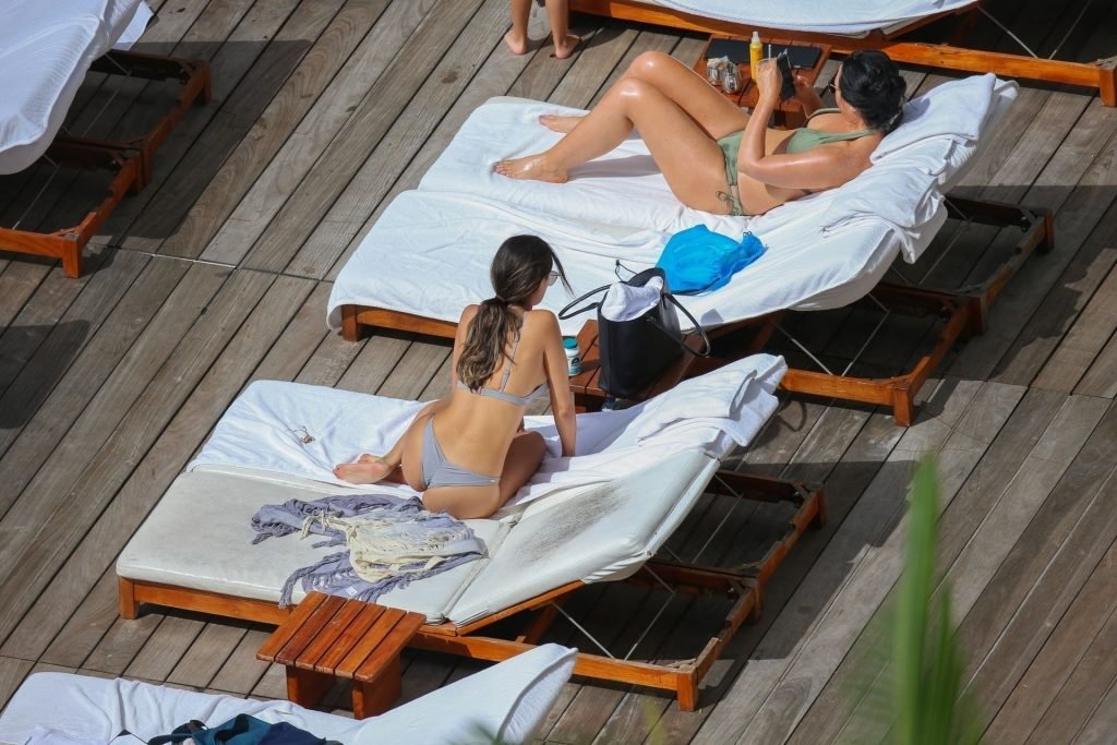 Bombshell Eiza Gonzalez disfruta de un día en bikini en la piscina mientras está de vacaciones en Hawái, 11/12/2018.