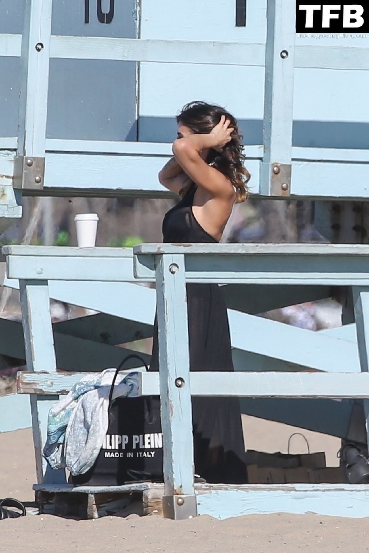Modelo/actriz Elisabetta Canalis realiza una sesión de fotos en la playa de Santa Mónica y la estrella se desnuda entre toma y toma, 02/10/2022.