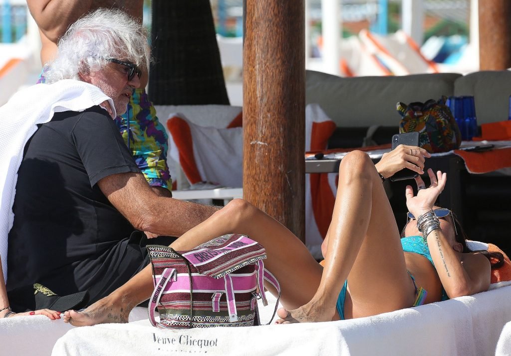 Elisabetta Gregoraci, Flavio Briatore y su hijo Nathan Falco fueron vistos en el Twiga Beach Club Versilia, Marina de Pietrasanta, Italia, 07/12/2019.