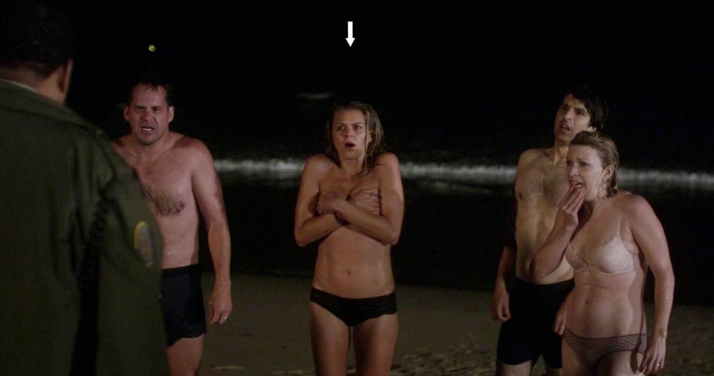 Eliza is bouncing topless in a guy’s lap as they have wild sex, her nipples digitally blurred out so they are never seen.