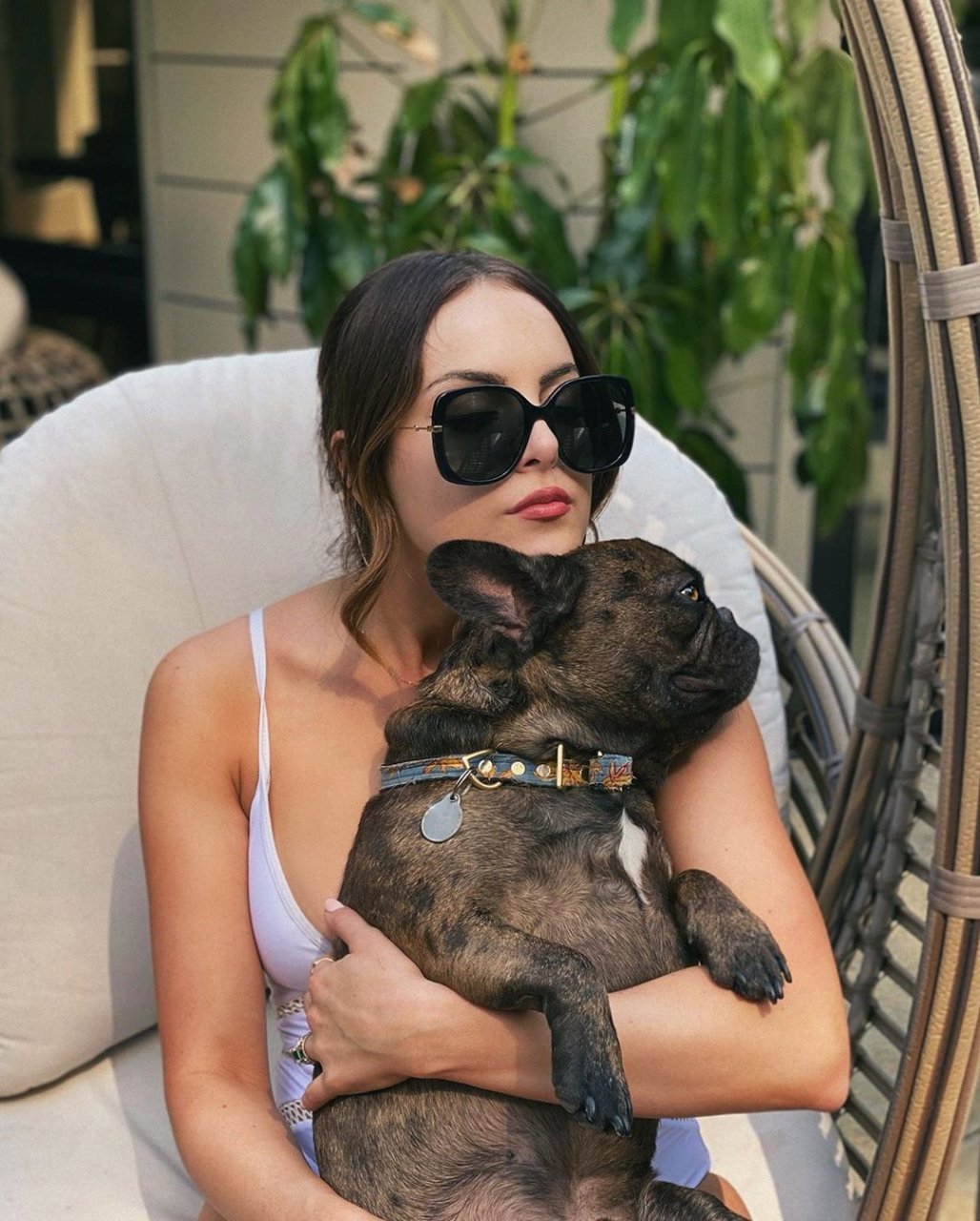 La actriz/cantante estadounidense Elizabeth Gillies muestra su profundo escote y a su perro Otis en Instagram, 29/09/2019.