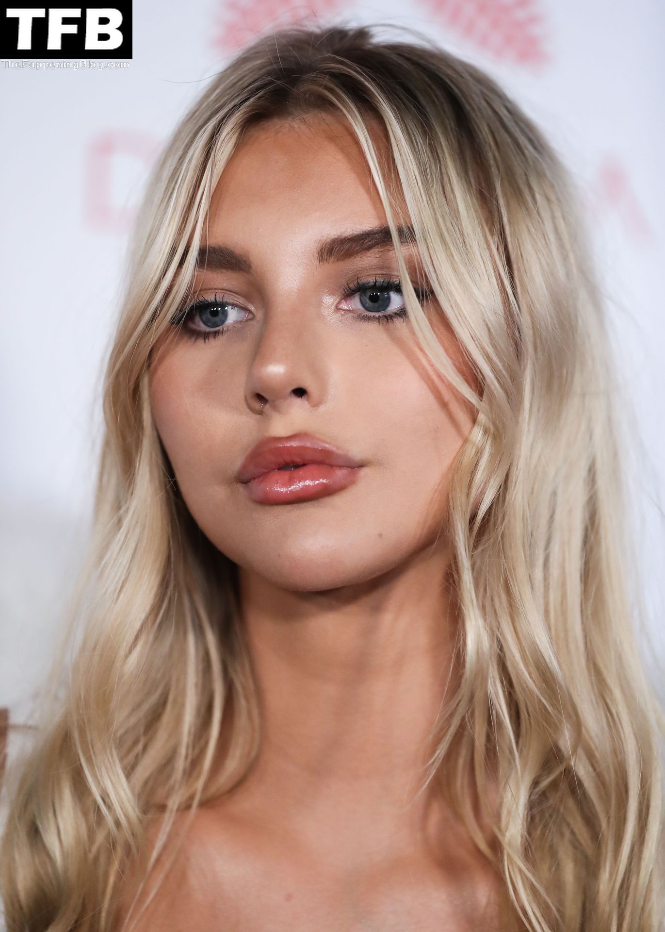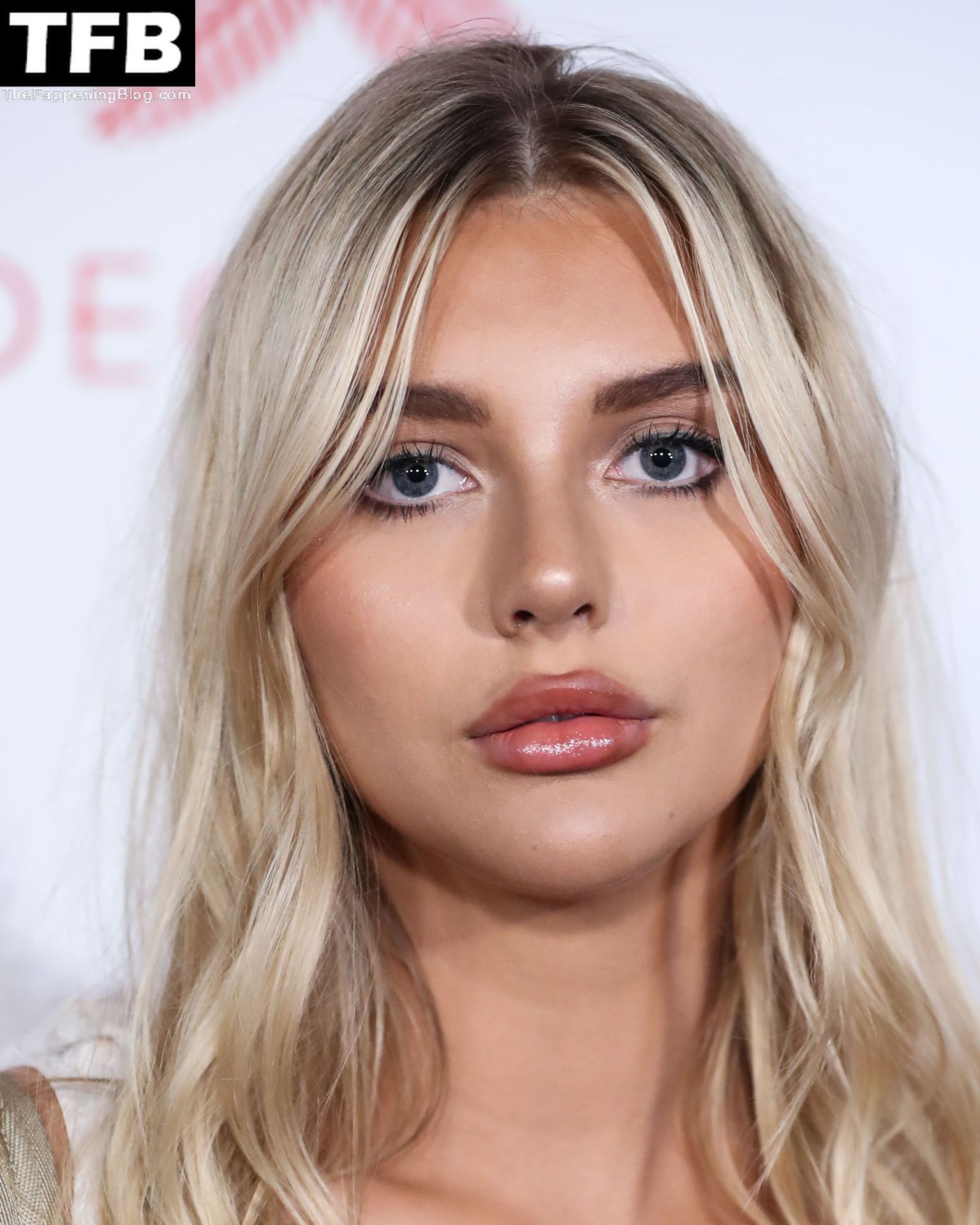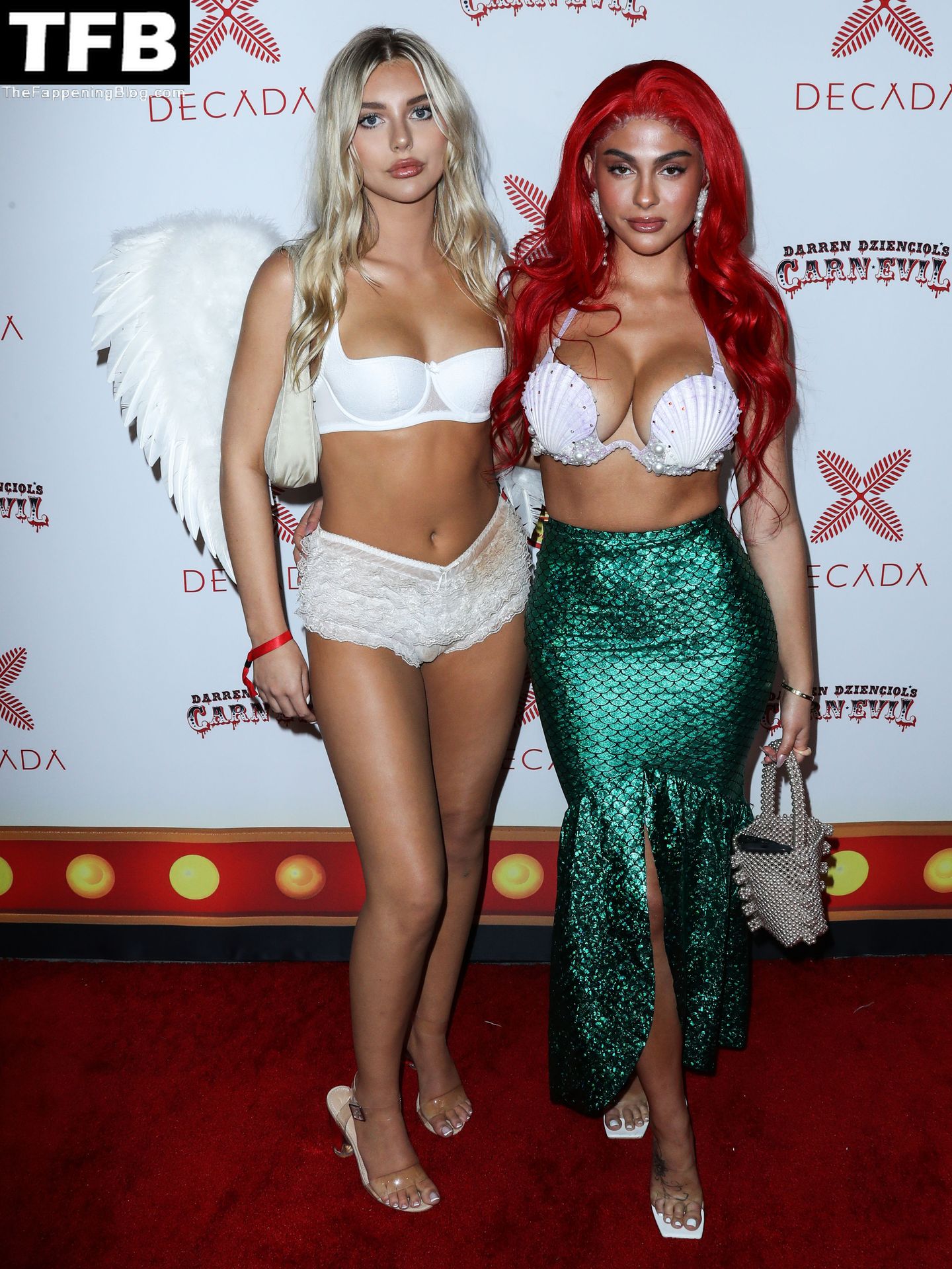 Elizabeth Grace Lindley pisa la alfombra roja vestida de Ángel en la fiesta de Halloween CARN*EVIL en Bel Air, 30/10/2021.