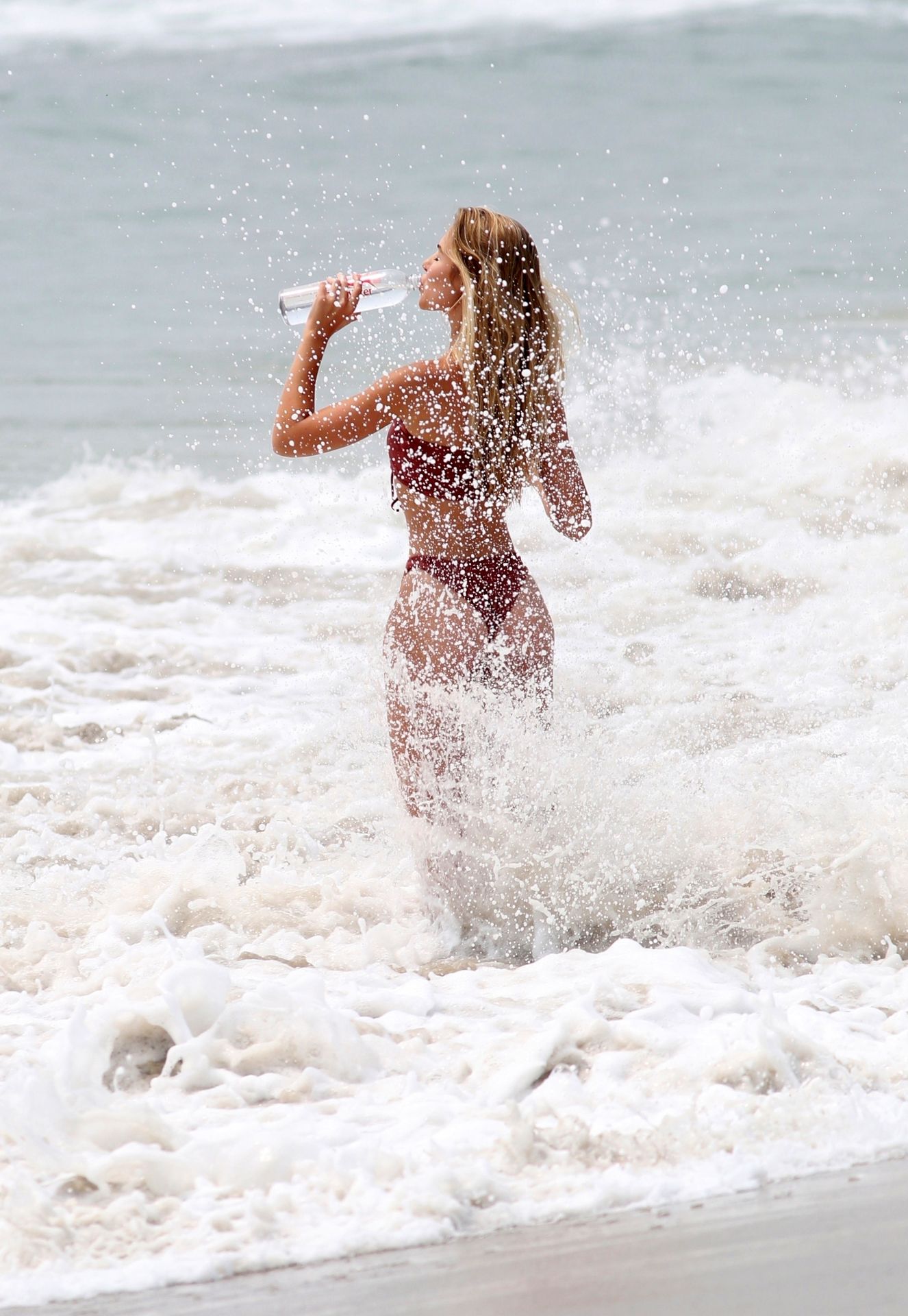 Sexy modelo de moda Elizabeth Montgomery aparece en bikini en el set de una sesión de fotos en Malibu, 10/09/2020.