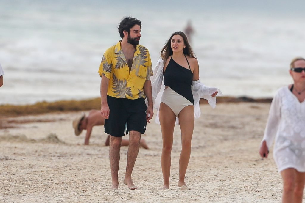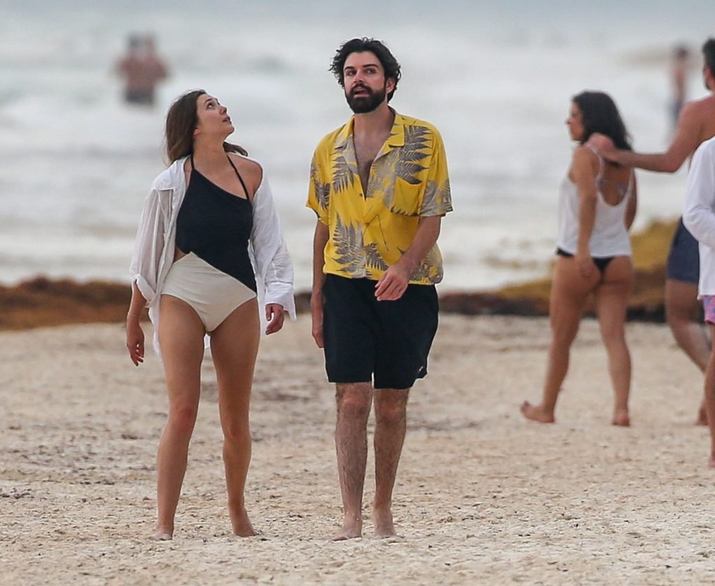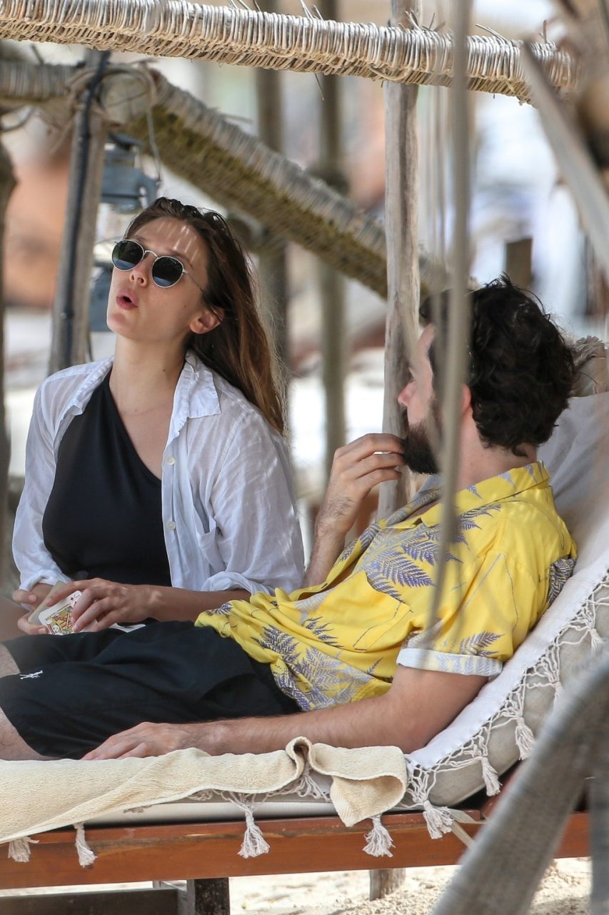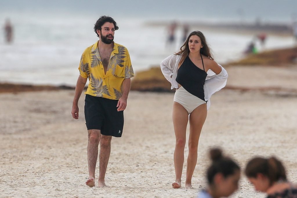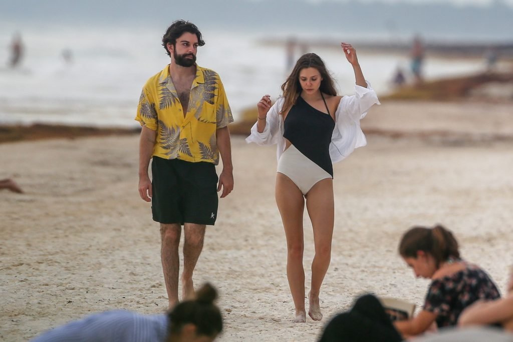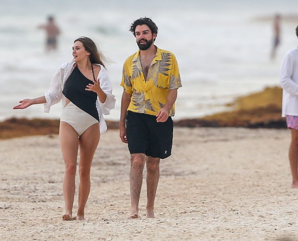La actriz estadounidense Elizabeth Olsen (29) fue vista usando un traje de baño blanco y negro con su novio Robbie Arnett en la playa en México, 28/07/2018.