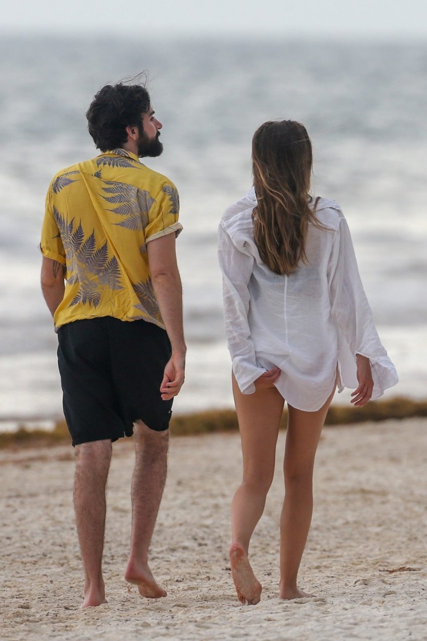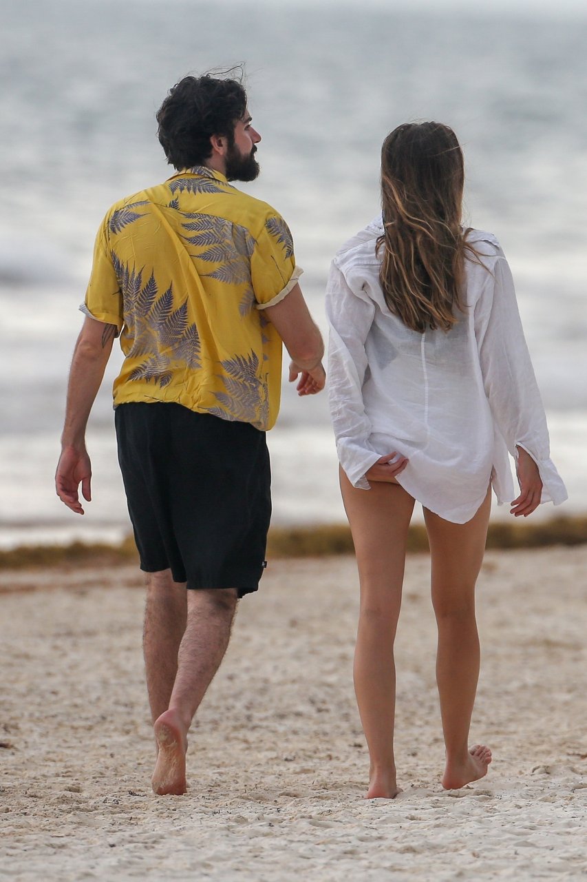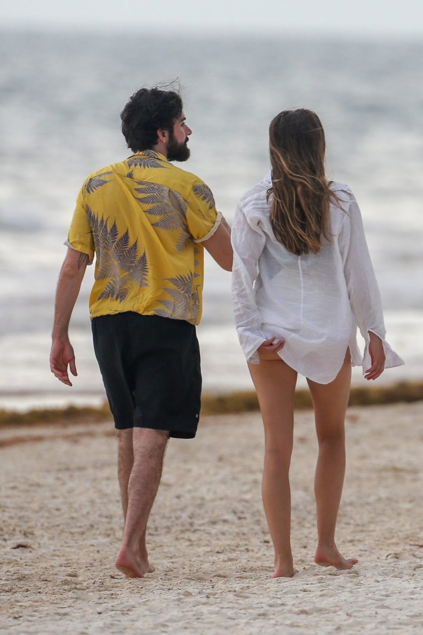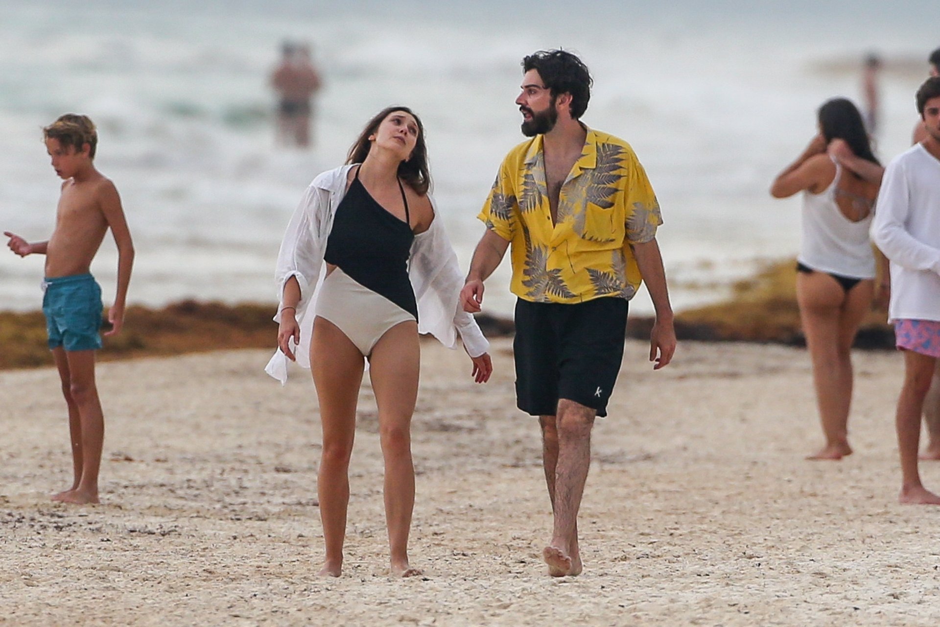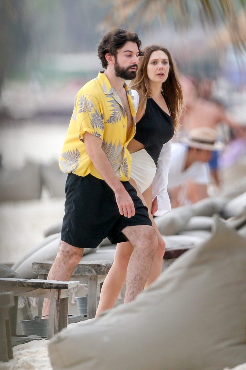 La actriz estadounidense Elizabeth Olsen (29) fue vista usando un traje de baño blanco y negro con su novio Robbie Arnett en la playa en México, 28/07/2018.
