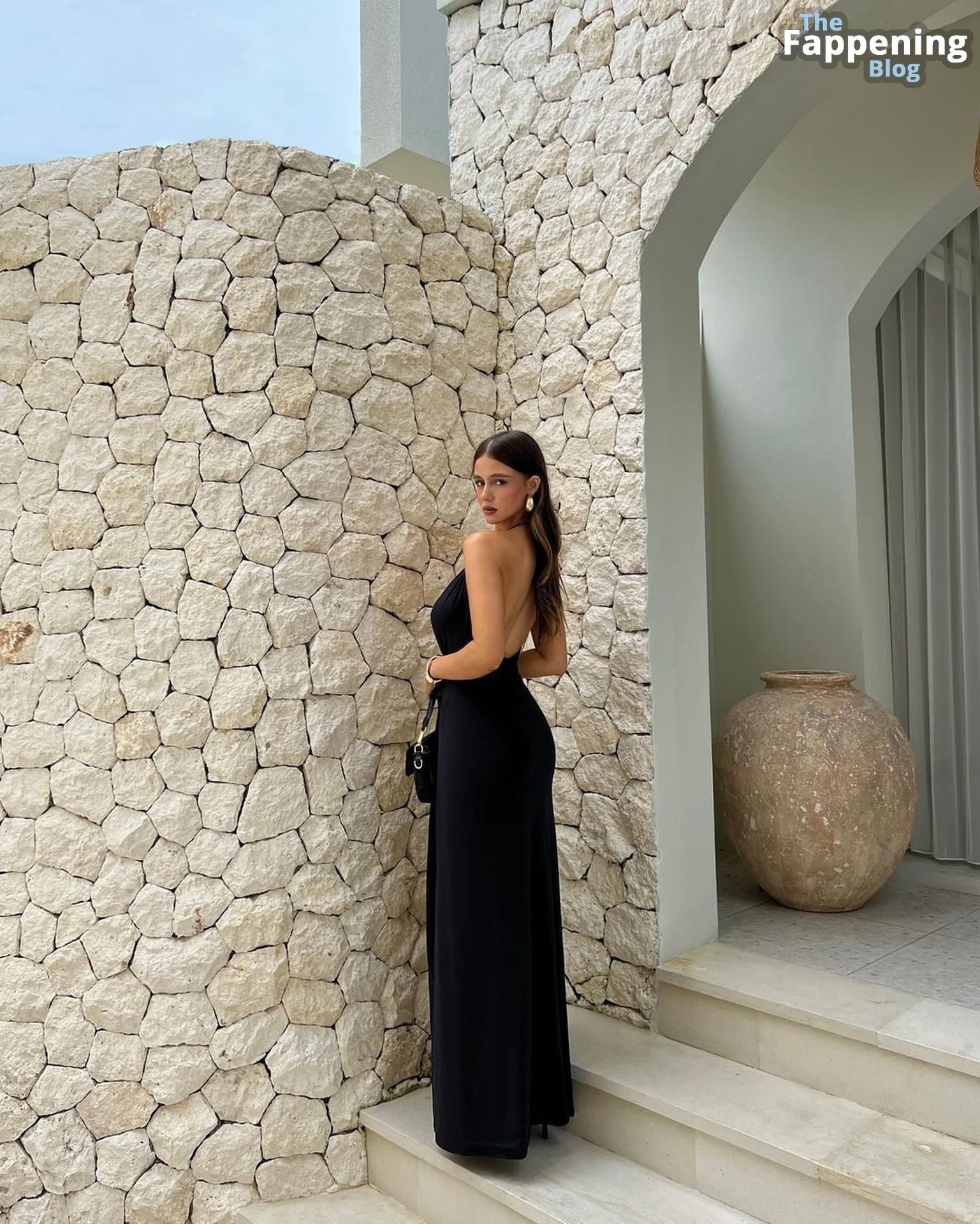 Mira el look sin sujetador de Ella Cervetto mientras presume sus increíbles pechos en un atrevido vestido en blanco y negro.