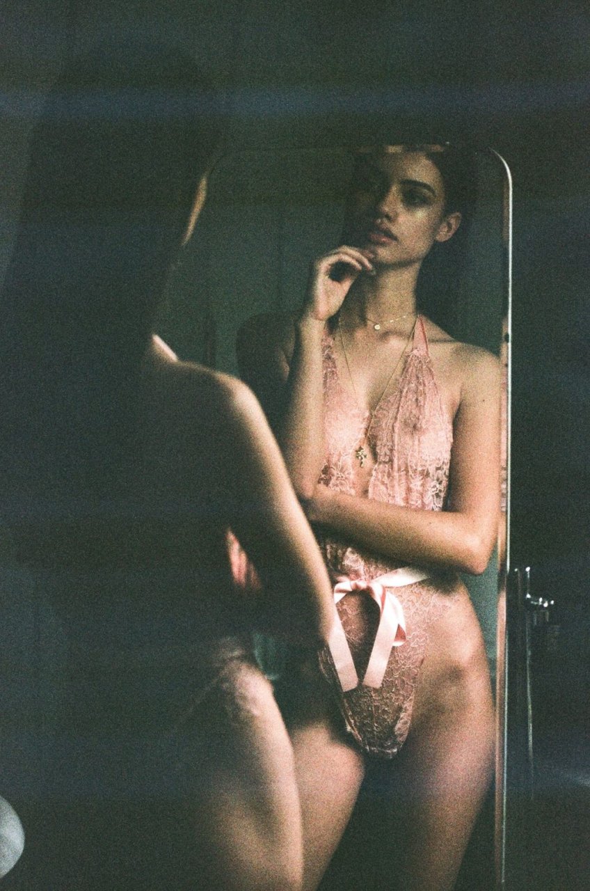 Las fotos desnudas y sexys de Elle Trowbridge de dos sesiones fotográficas: por Innis McAllister y Jessie Andrews para la colección de lencería Oh So Lovely.