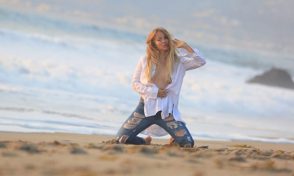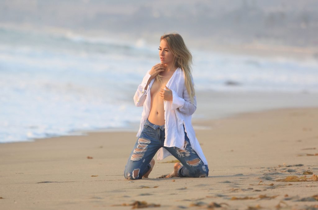 Ellen Alexander se desnuda de pecho durante una nueva sesión editorial para GQ Rusia, vistiendo una chaqueta de mezclilla y jeans retro en la playa de Malibu, 01/03/2018. Ellen Alexander (también conocida como Elena Bugaeva) es una modelo, actriz y productora de Rusia que actualmente reside en Los Ángeles.