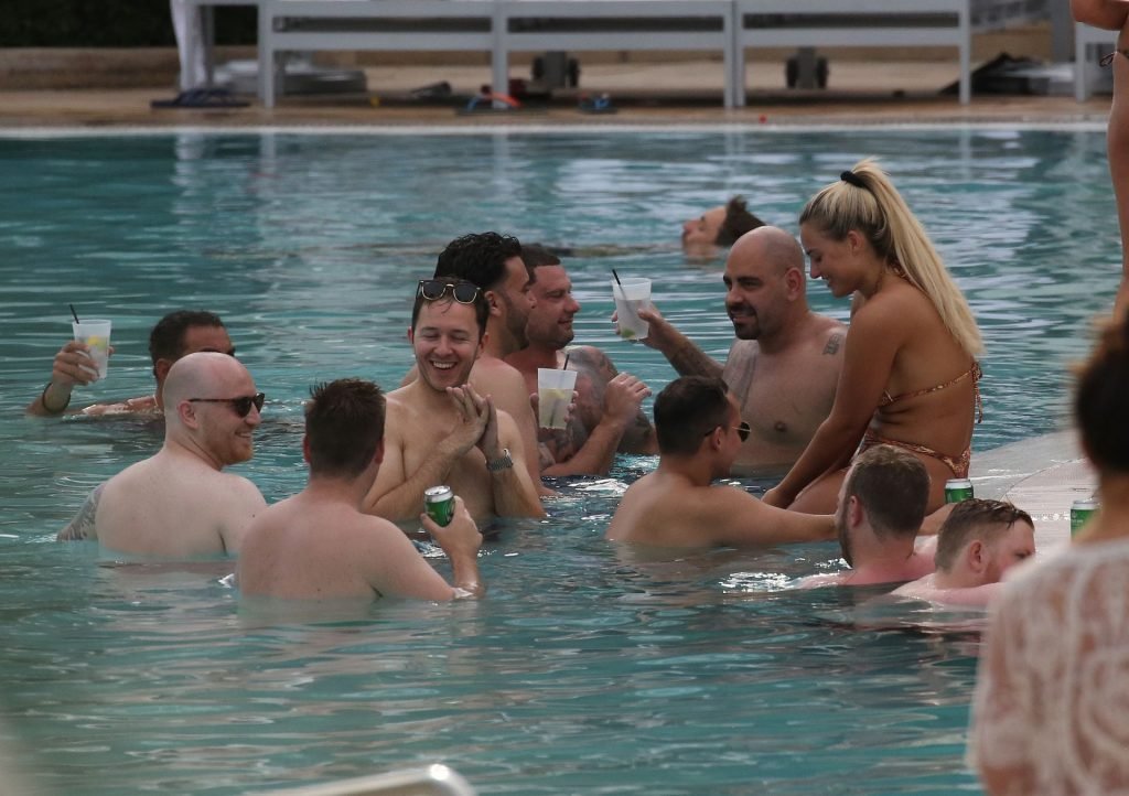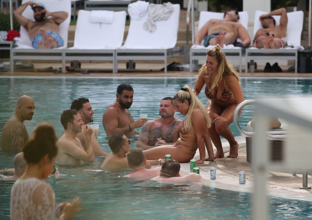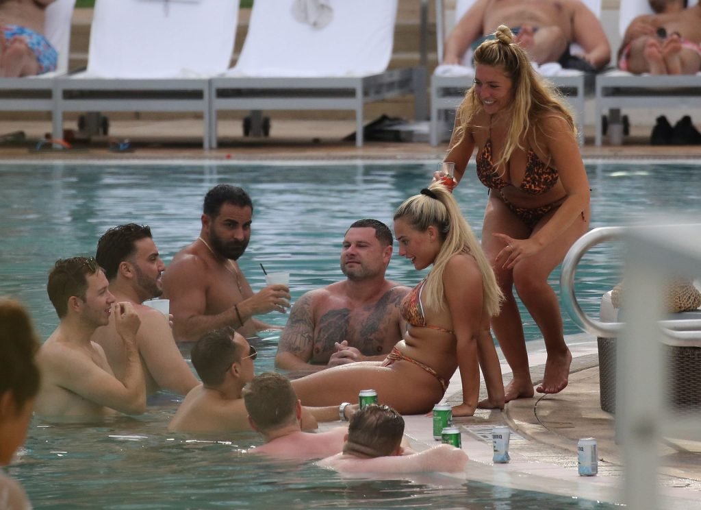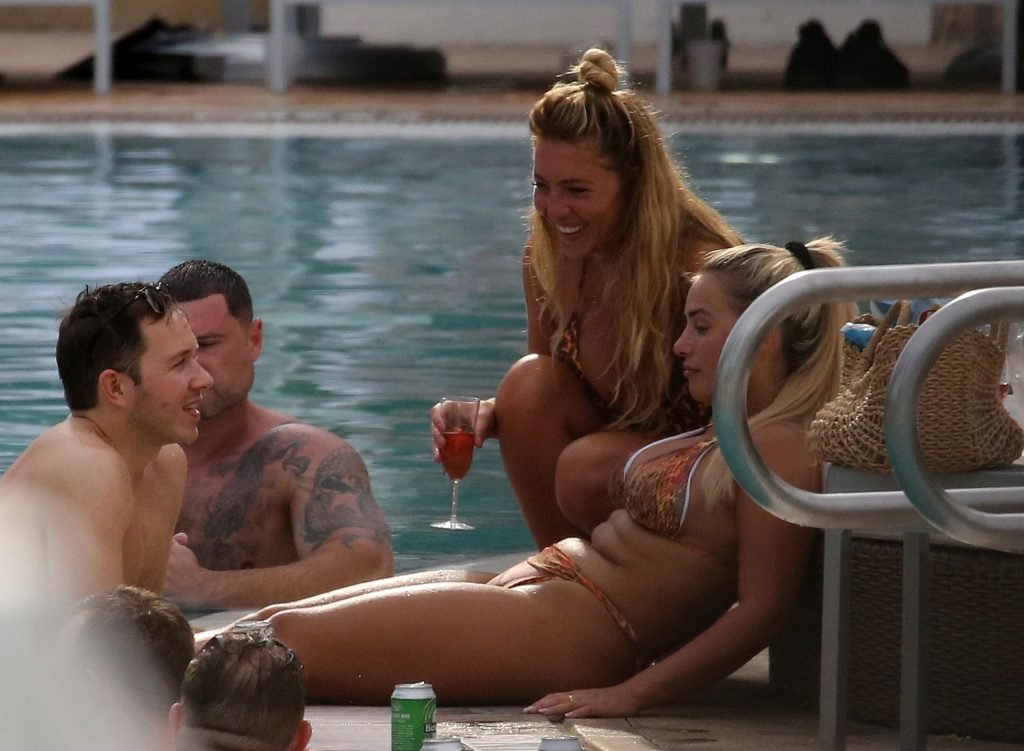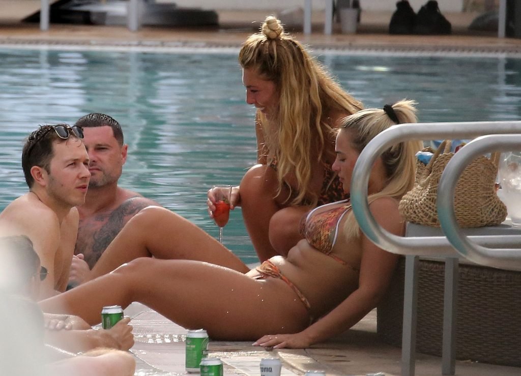 La estrella inglesa de la televisión reality Ellie Brown (21) lleva un bikini diminuto y atrae mucha atención junto a la piscina en Miami, 13/06/2019.