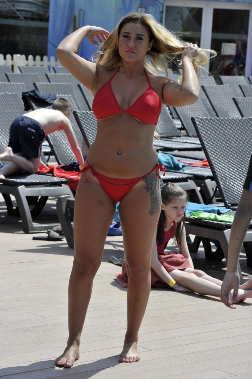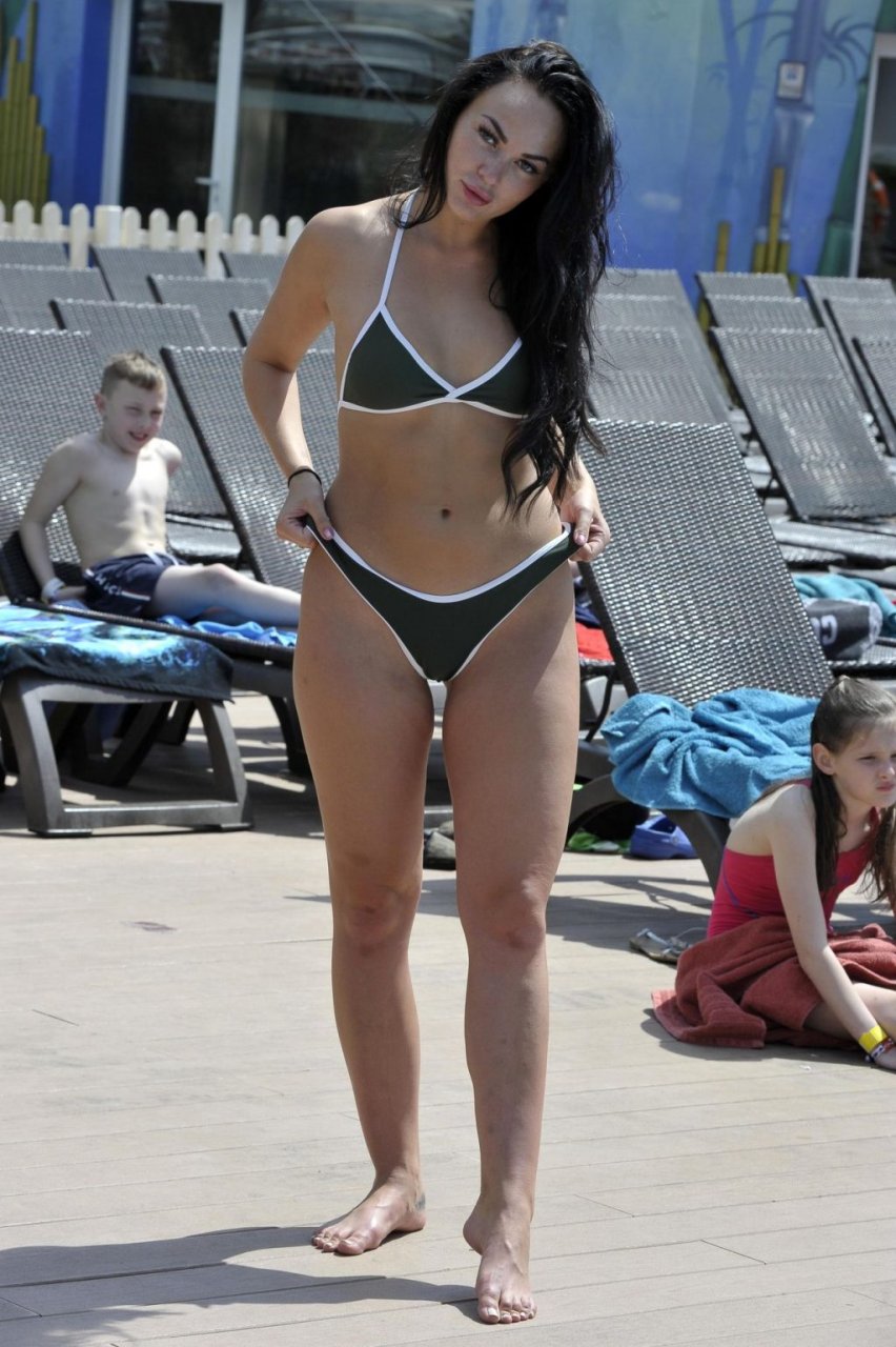 Big Brother’s Ellie Young y Hayley Fanshaw de Ibiza Weekender disfrutan del sol en España, mientras se toman selfies junto a la piscina (2018).