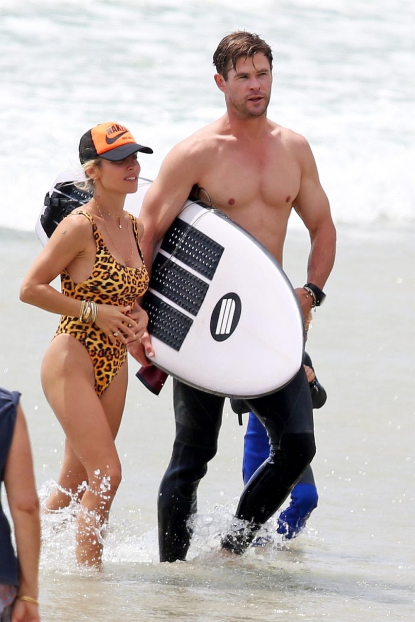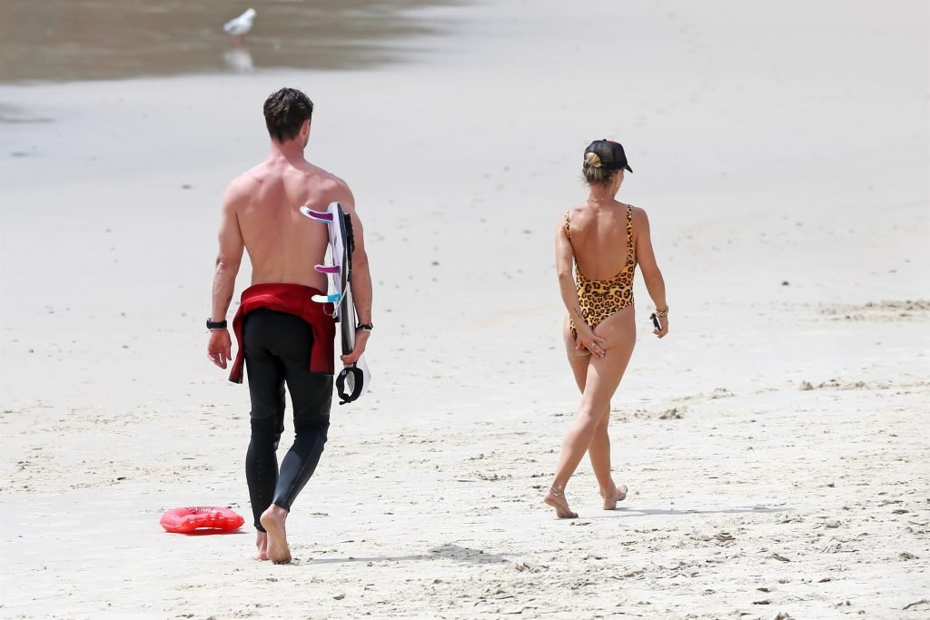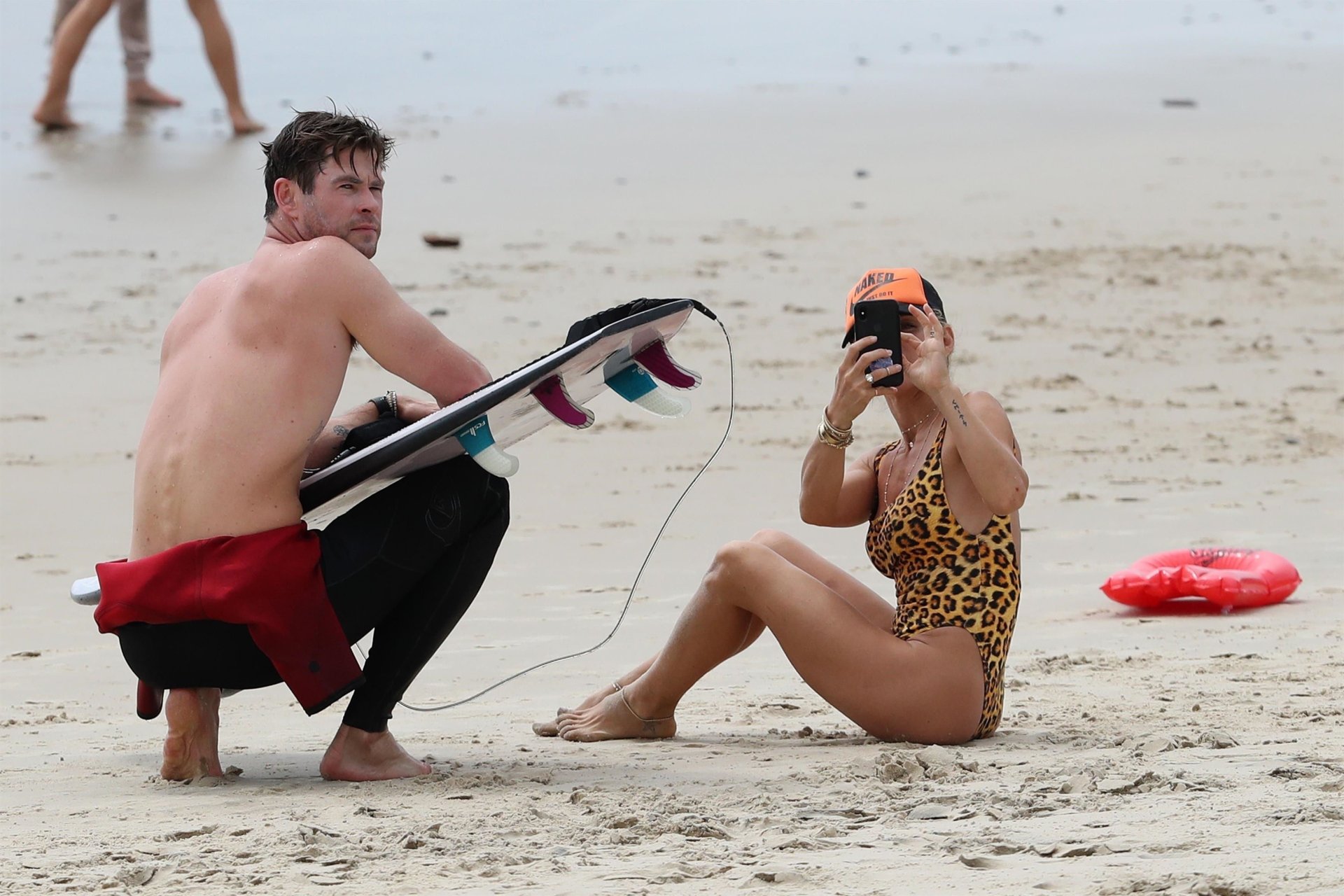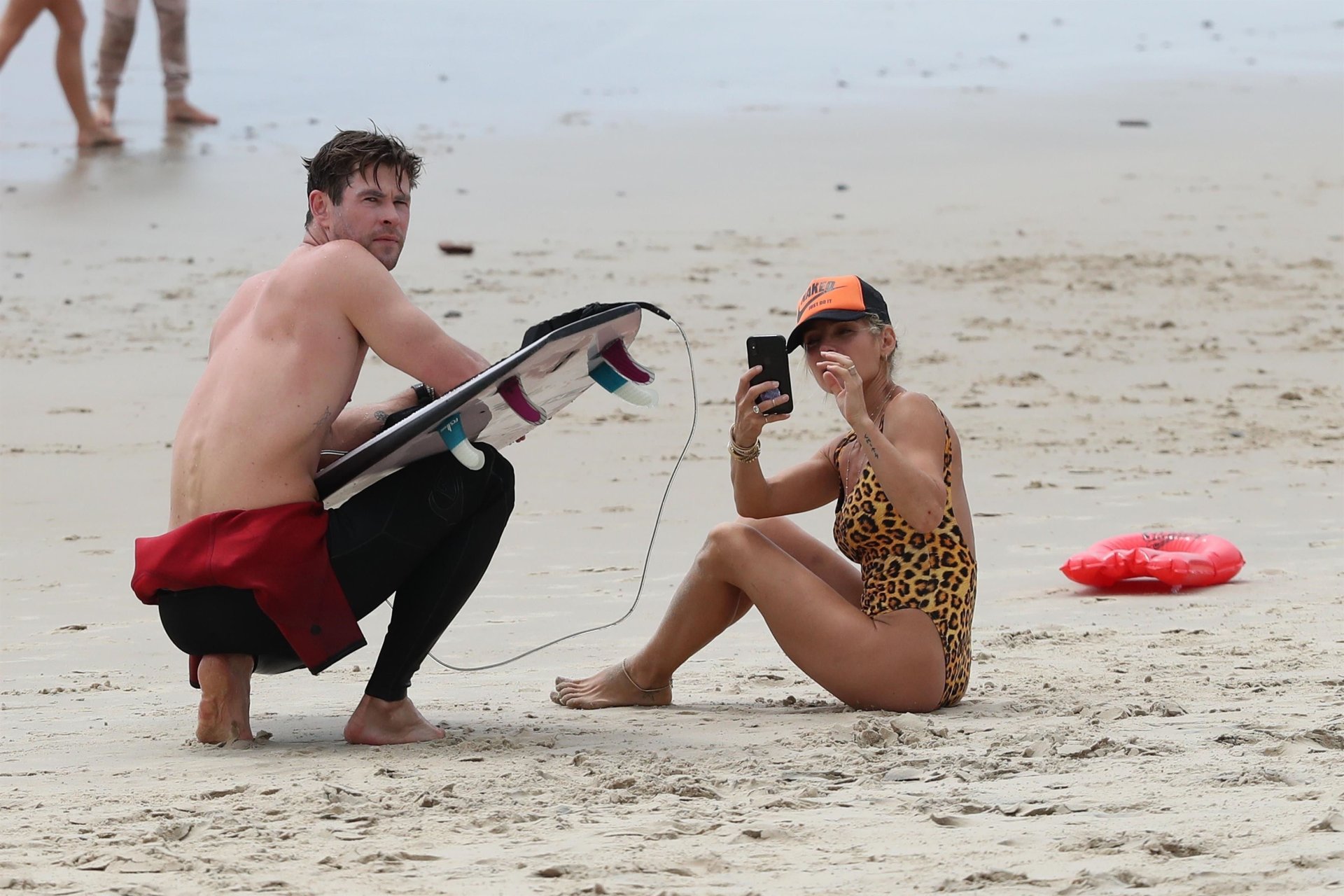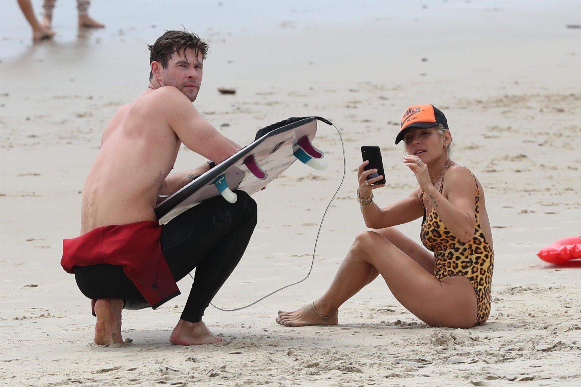 Superpareja de estrellas Chris Hemsworth y Elsa Pataky fueron vistos disfrutando del sol con un viaje a la playa con sus hijos en Byron Bay, Australia, 21/10/2018.